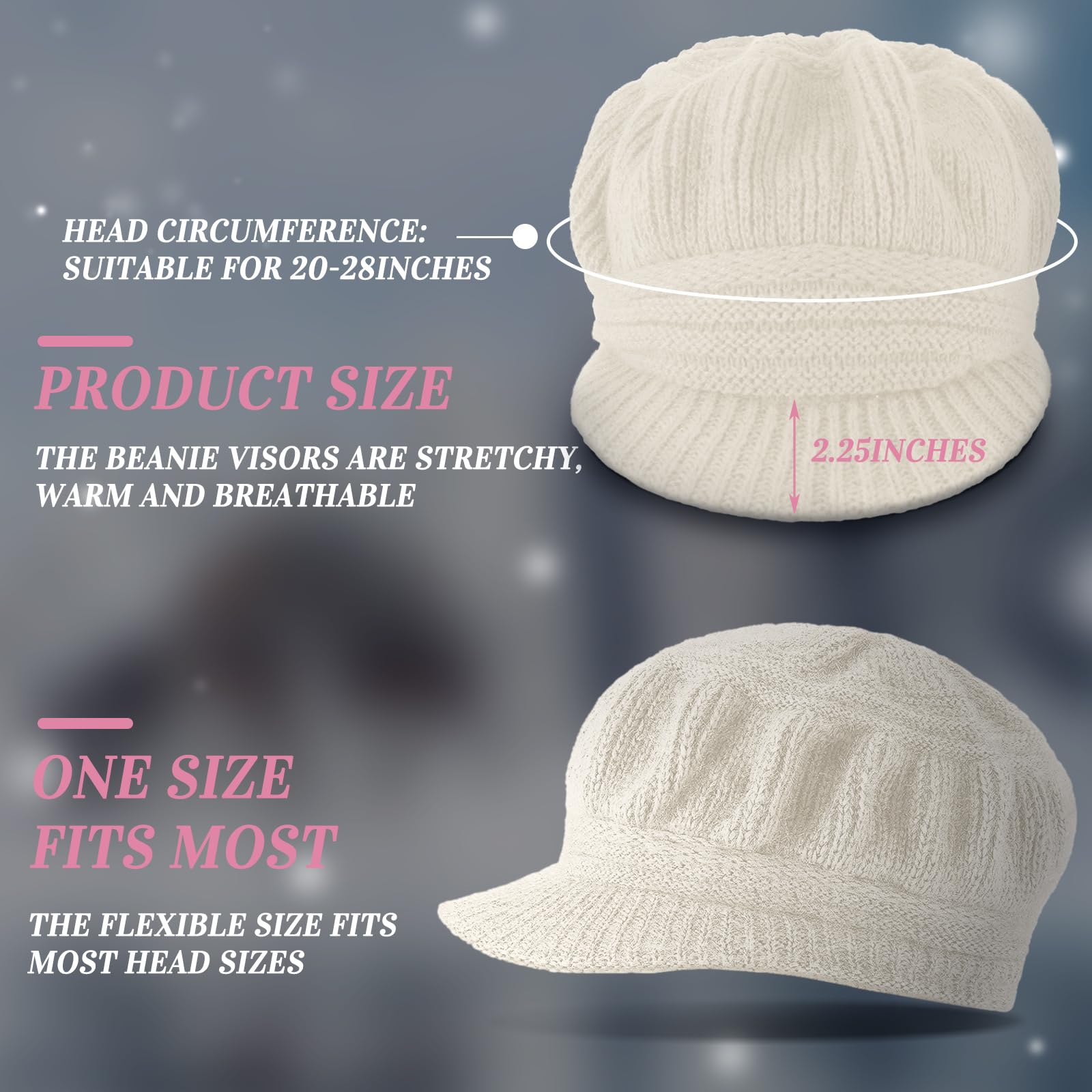 3-piece women's winter warm hat, casual brimless hat with brim and earflap, knitted newsboy hat, women's ski snow cap