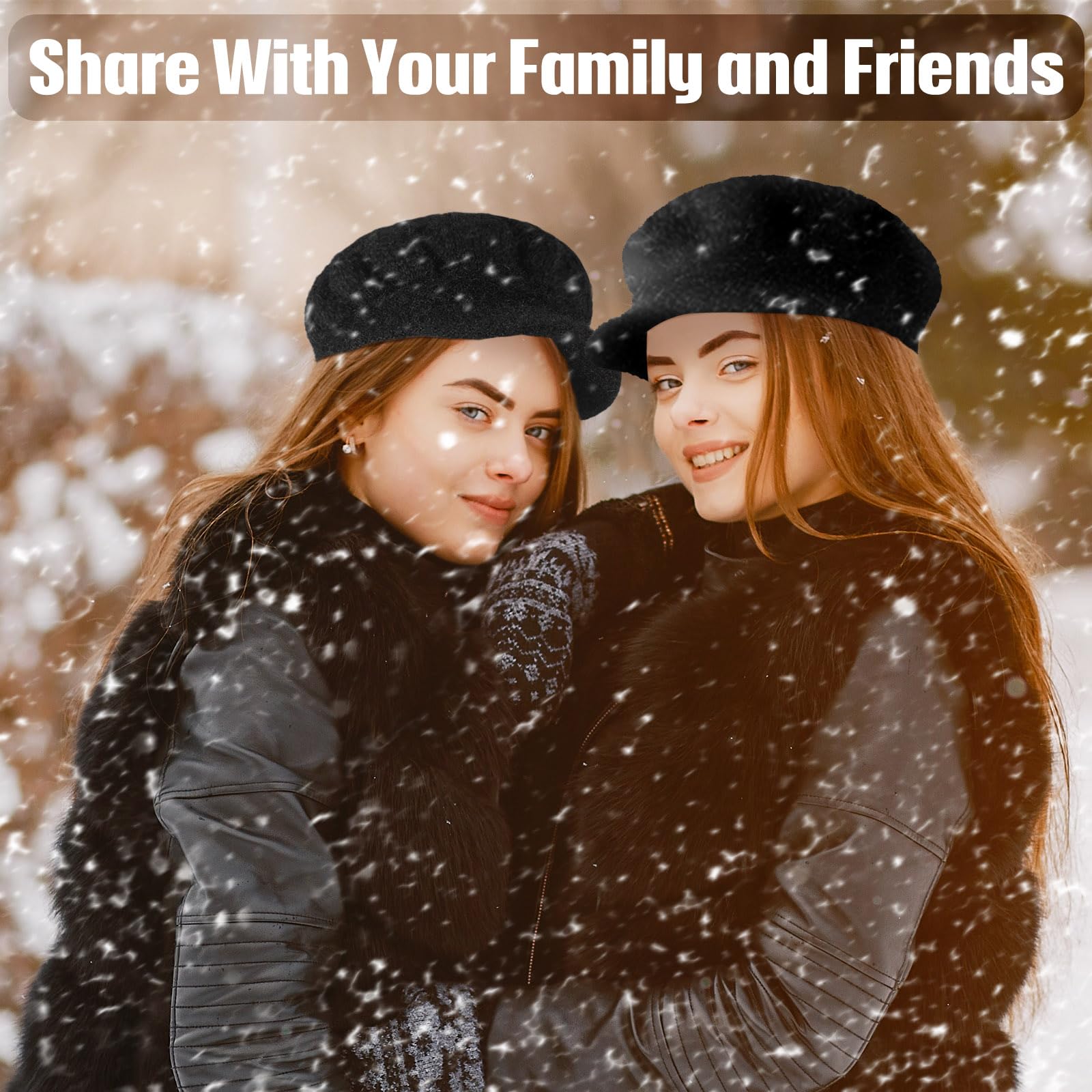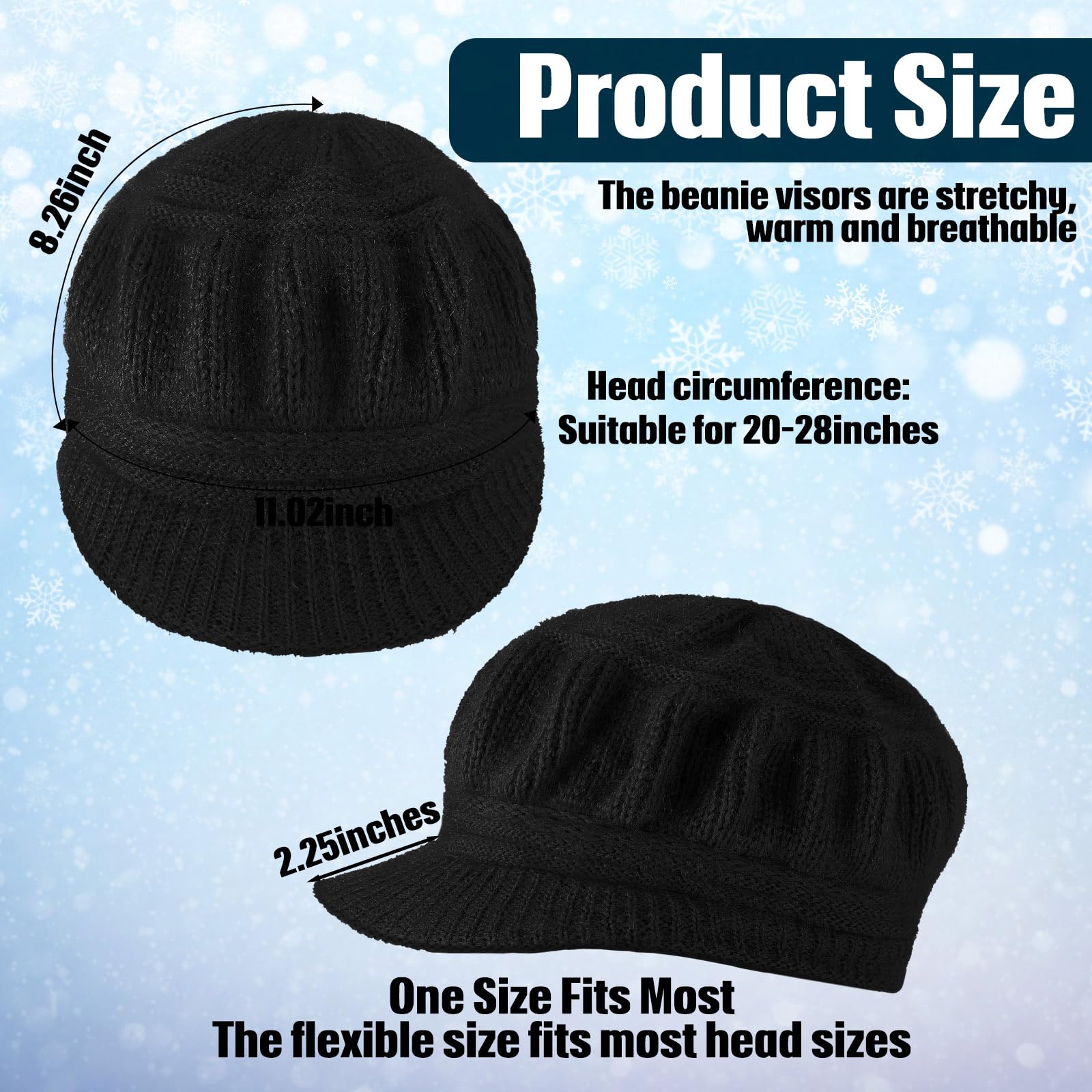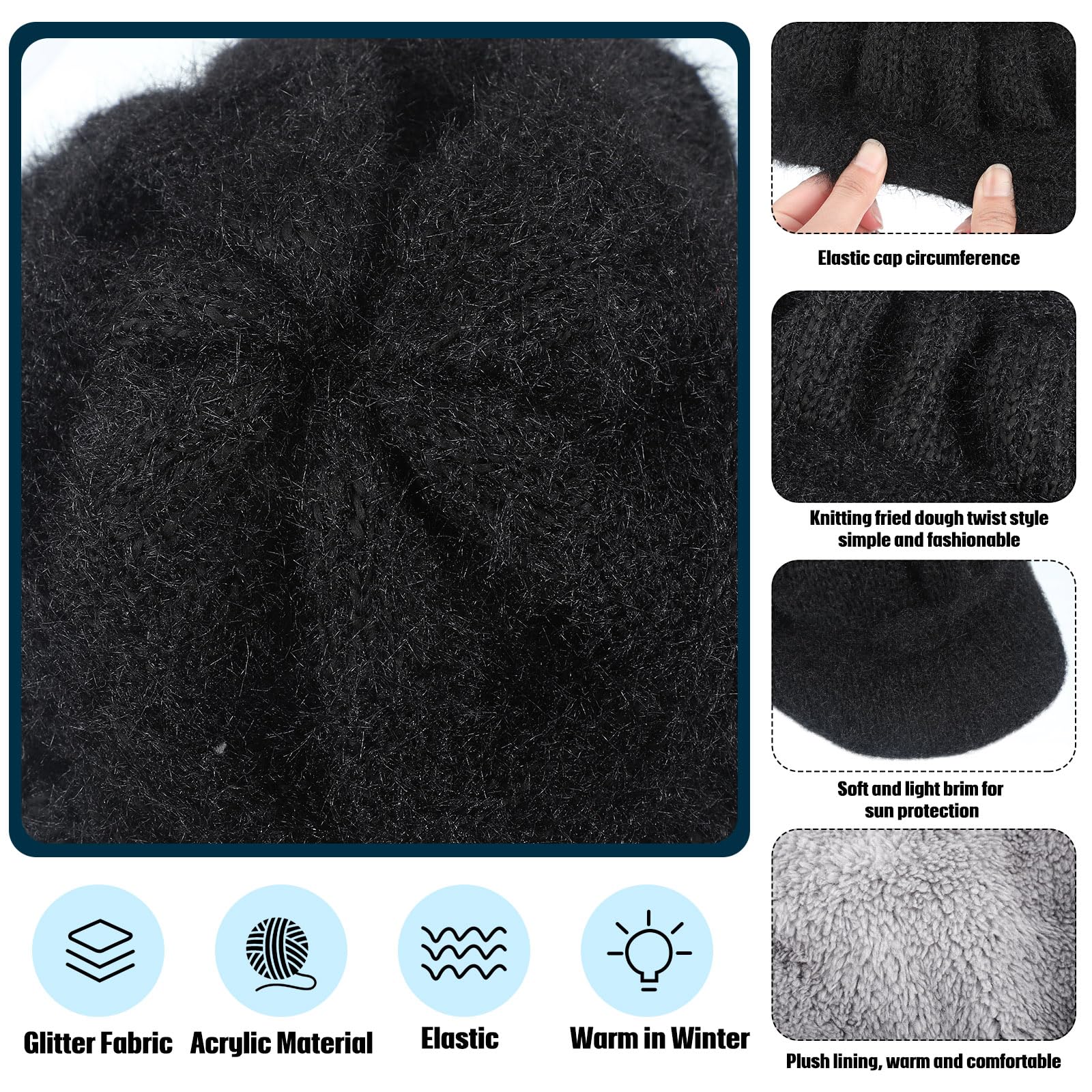 3-piece women's winter warm hat, casual brimless hat with brim and earflap, knitted newsboy hat, women's ski snow cap