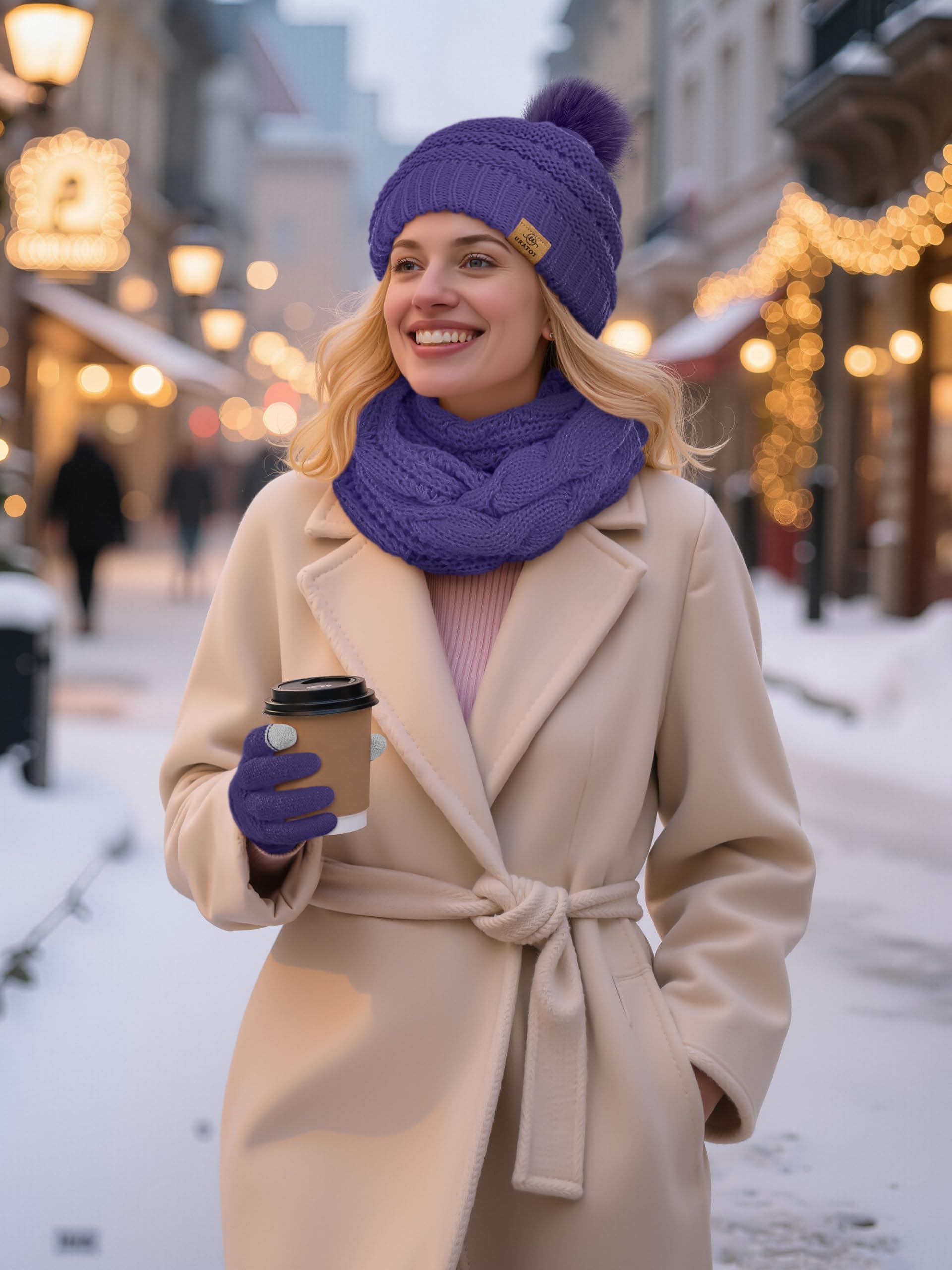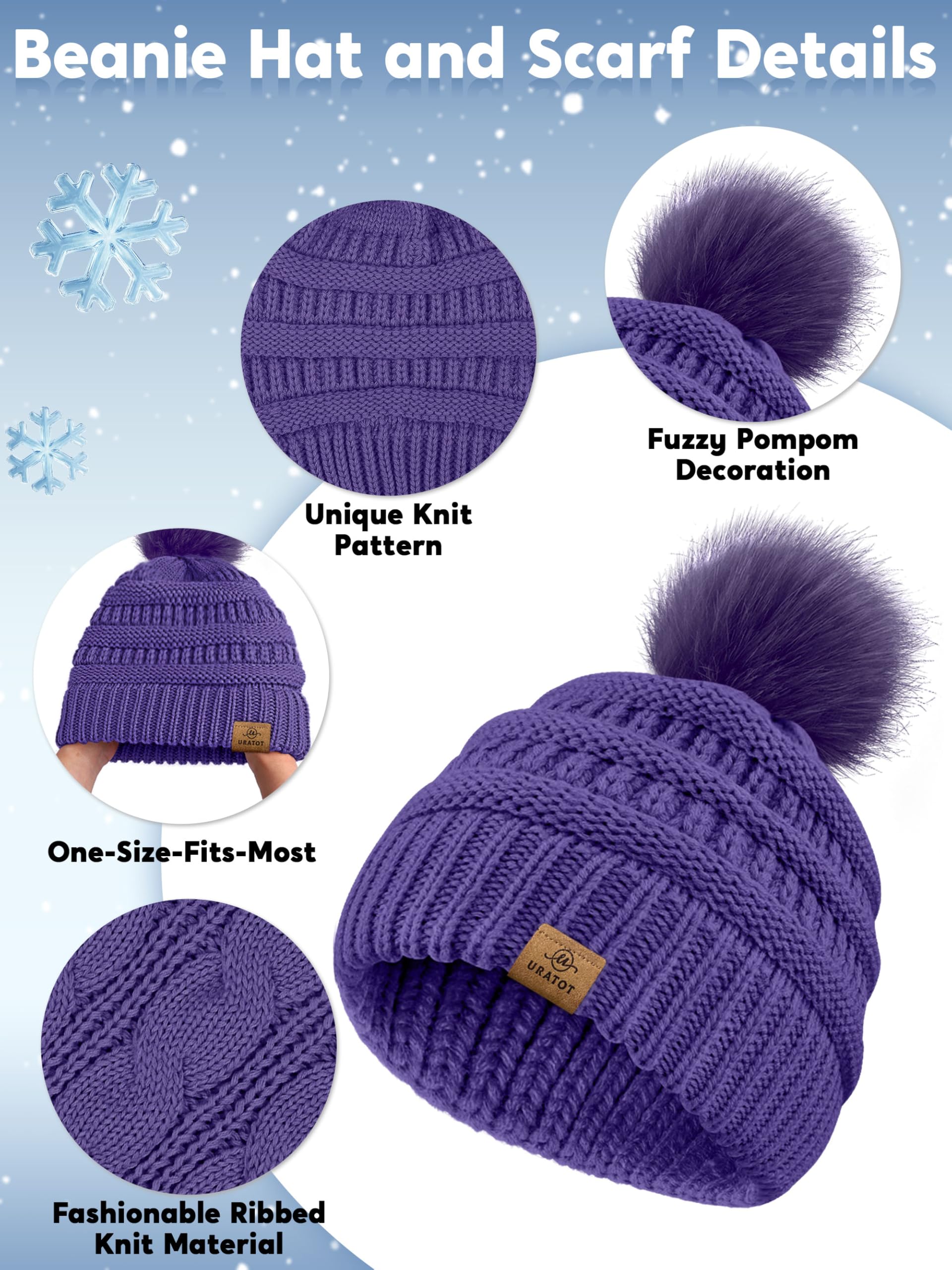 4-In-1 Winter Warm Sets Knitted Scarf Touch Screen Gloves Beanie Pompom Hat and Winter Ear Wa