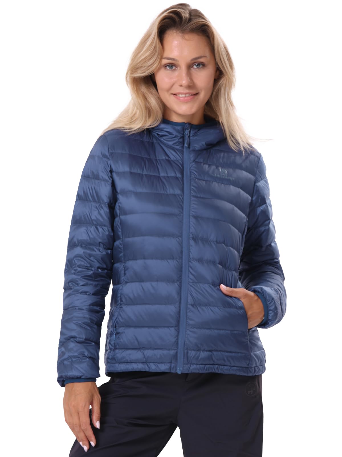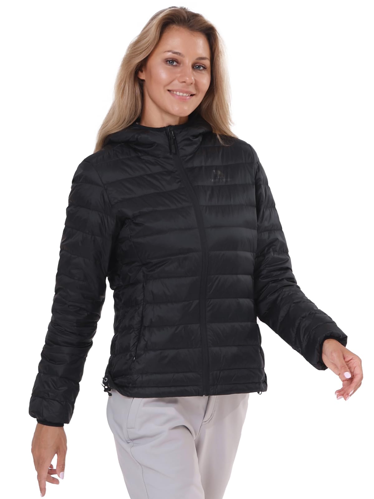 سترة نسائية بغطاء رأس وقابلة للتعبئة، معطف منتفخ معزول وخفيف للغاية ومقاوم للماء