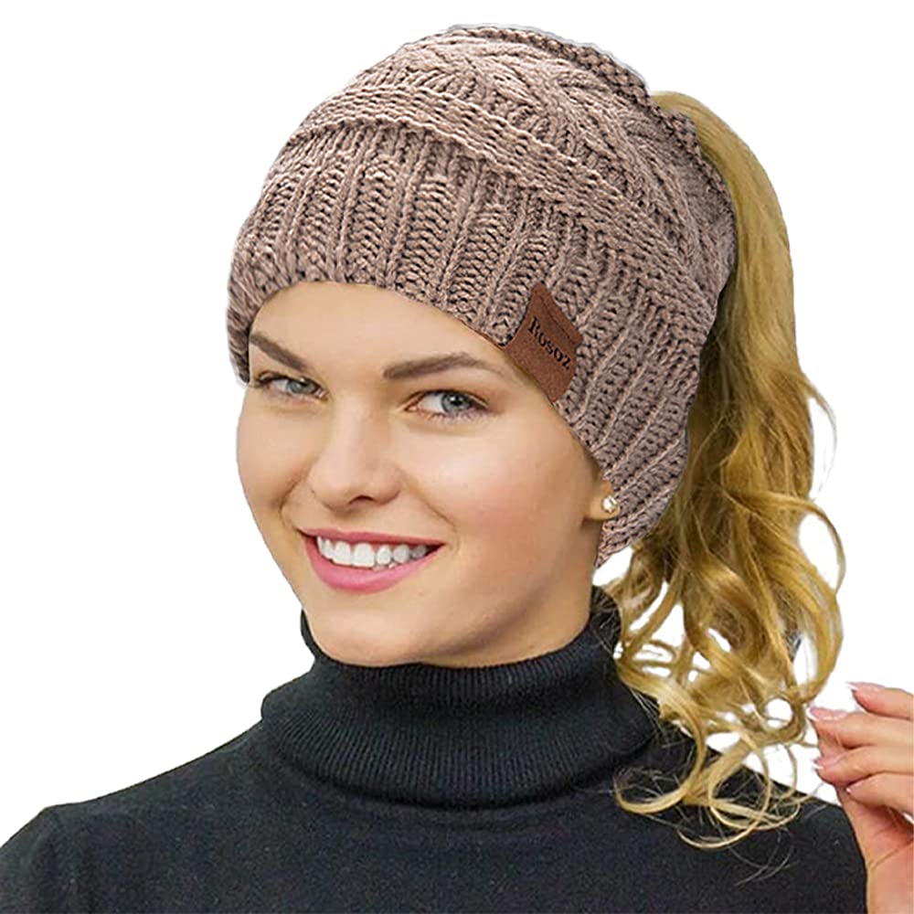 قبعة صغيرة على شكل ذيل حصان بدون حافة، قبعة شتوية دافئة مع قبعة محبوكة ناعمة ومرنة على شكل كعكة عالية