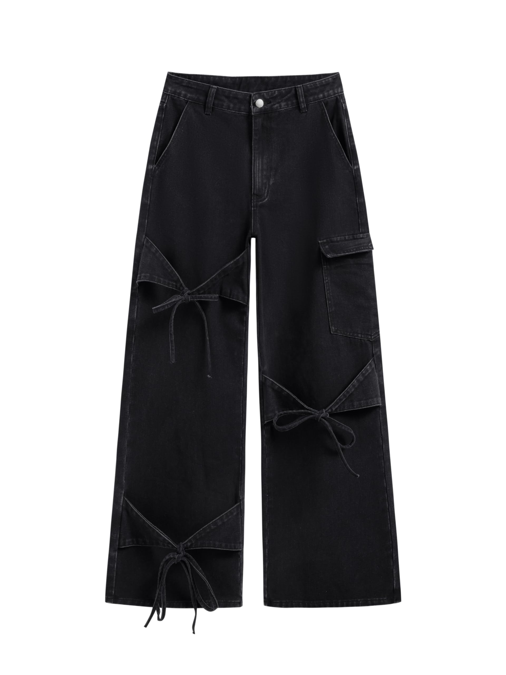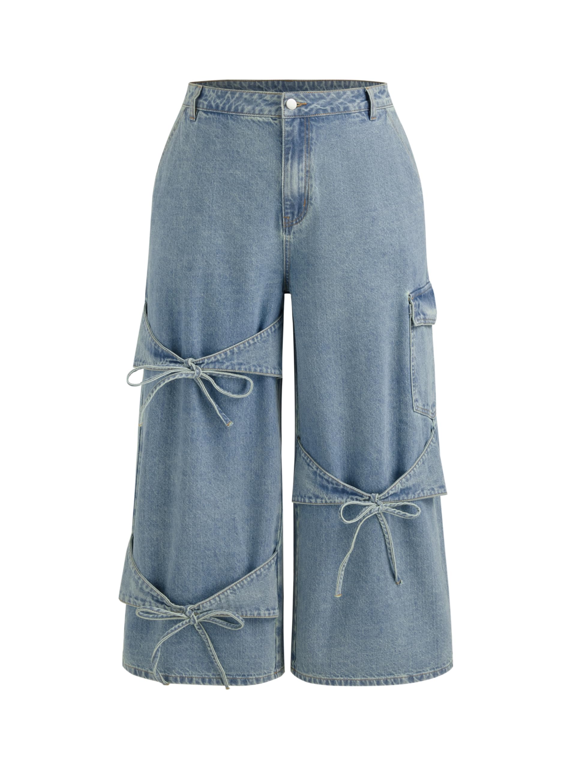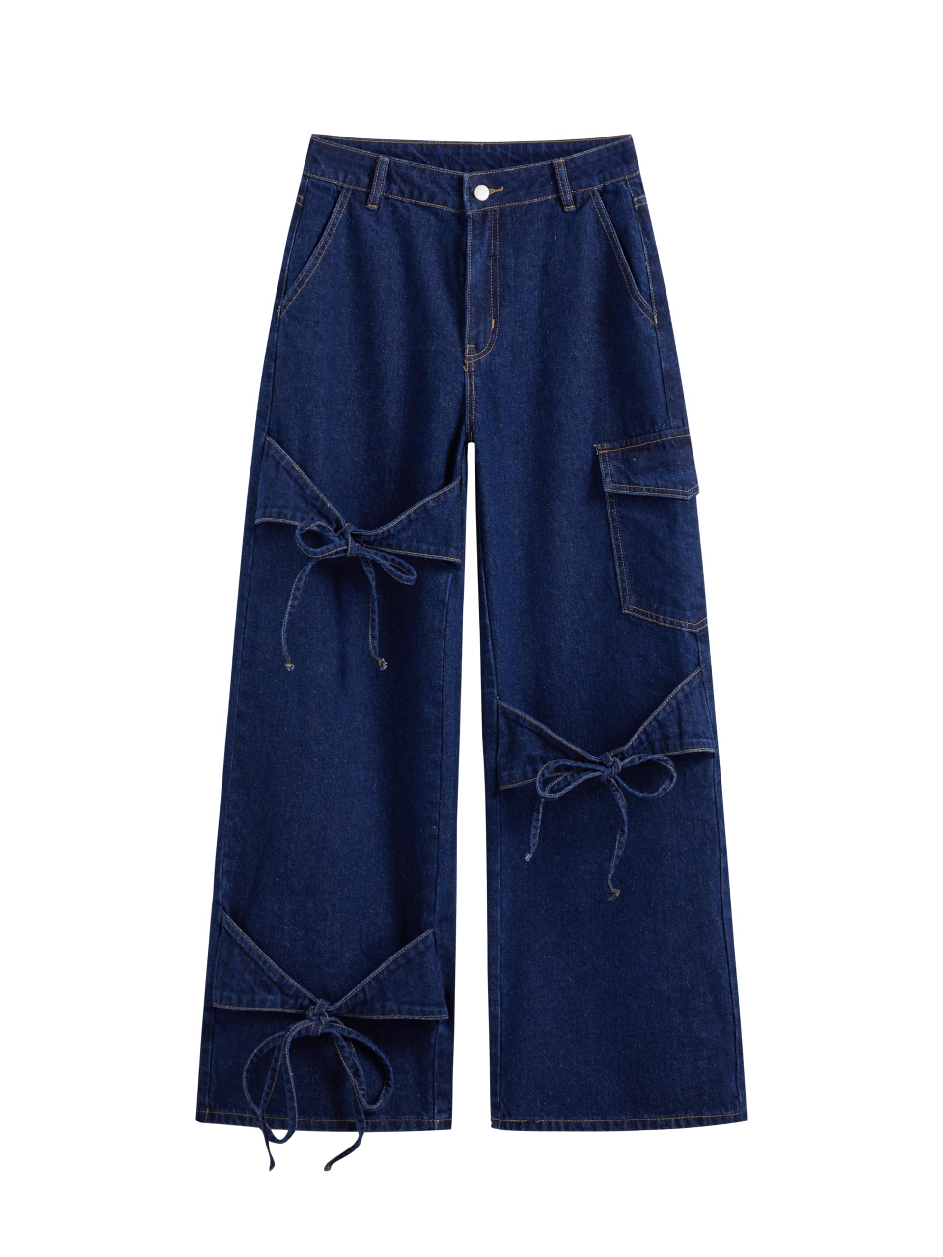 Baggy Jeans for Women Low Waisted Wide Straight Leg Bow Jeans Denim Pants
