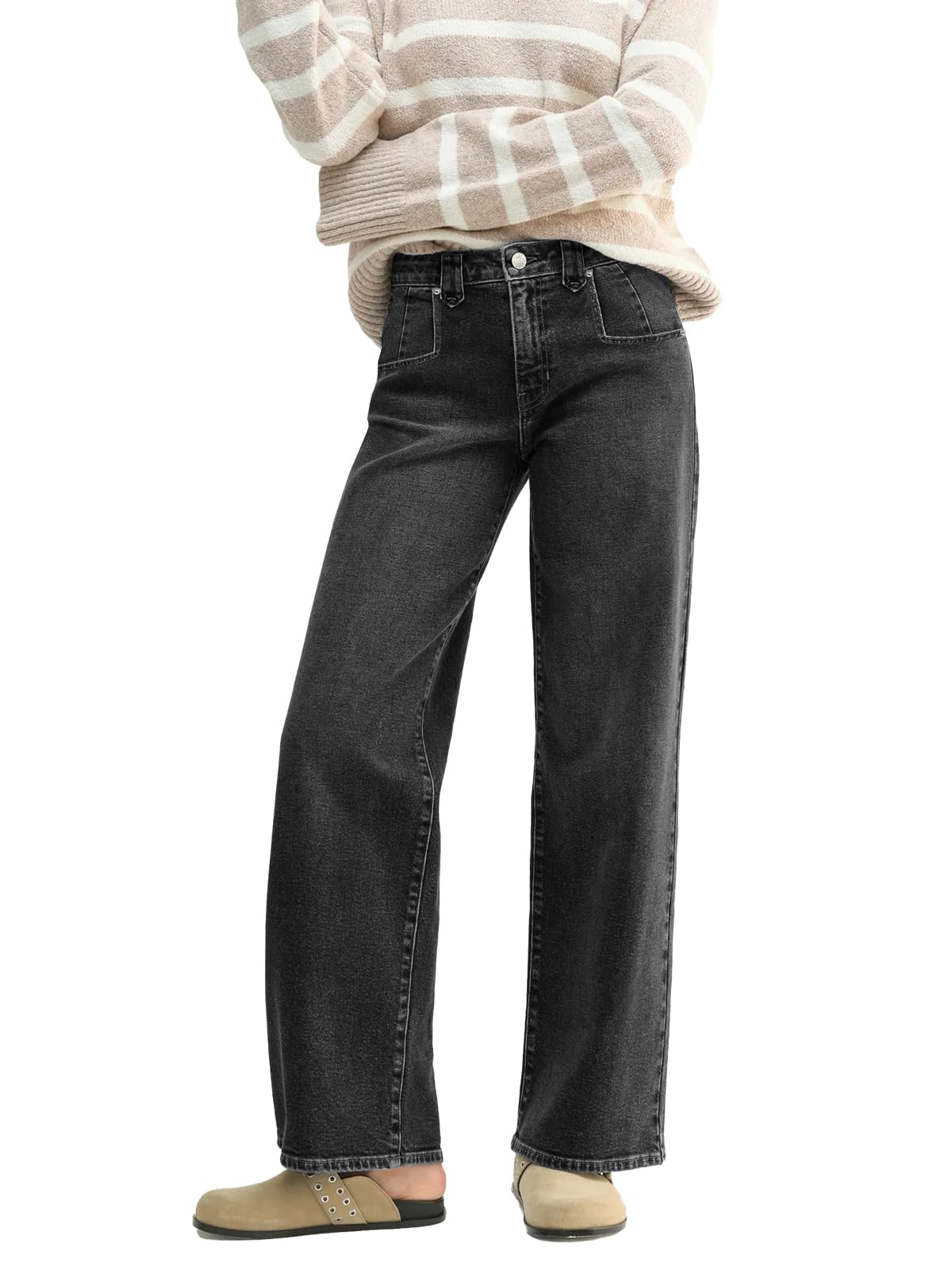 Baggy Jeans Women Straight Leg Mid Rise Cute Trendy Y2K Boyfriend Loose Fit Denim Pants Wide Leg High Waisted Stretchy