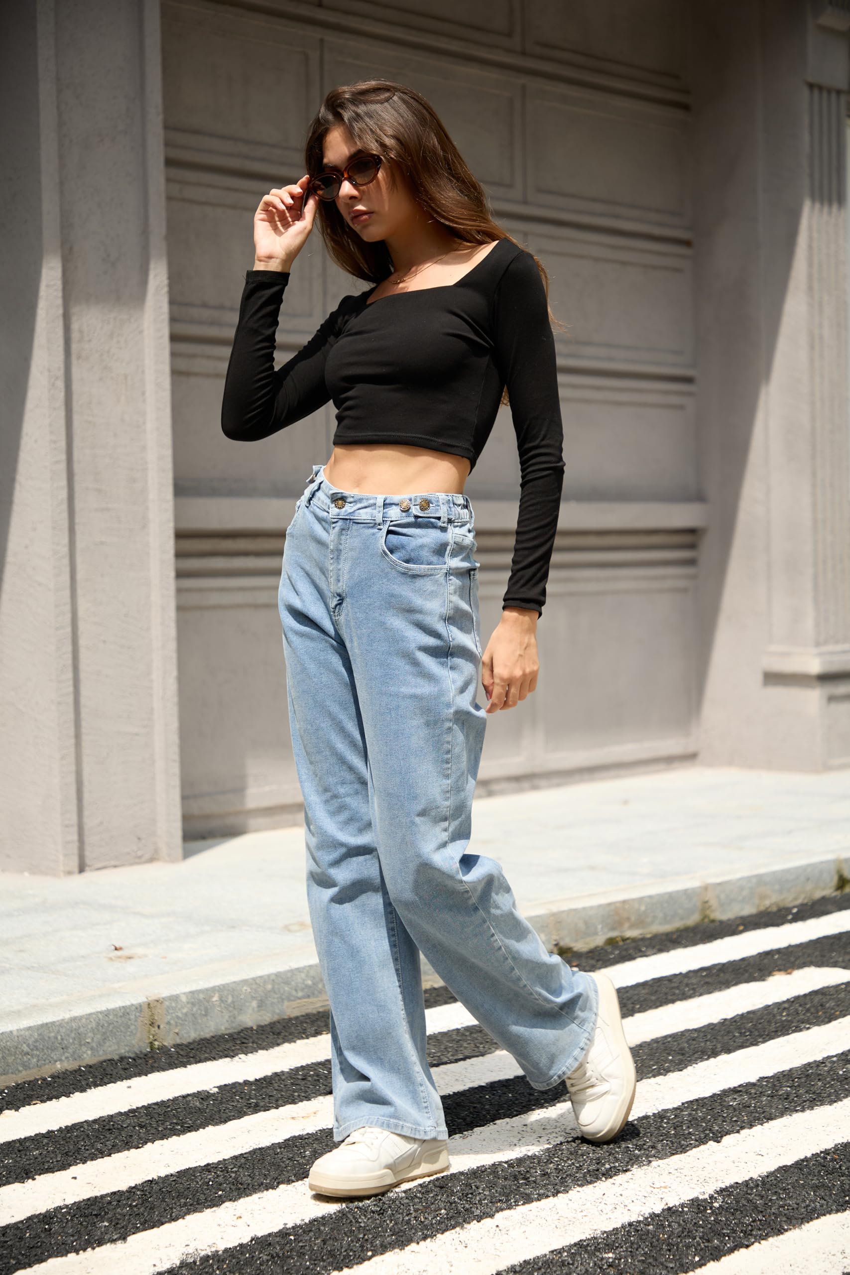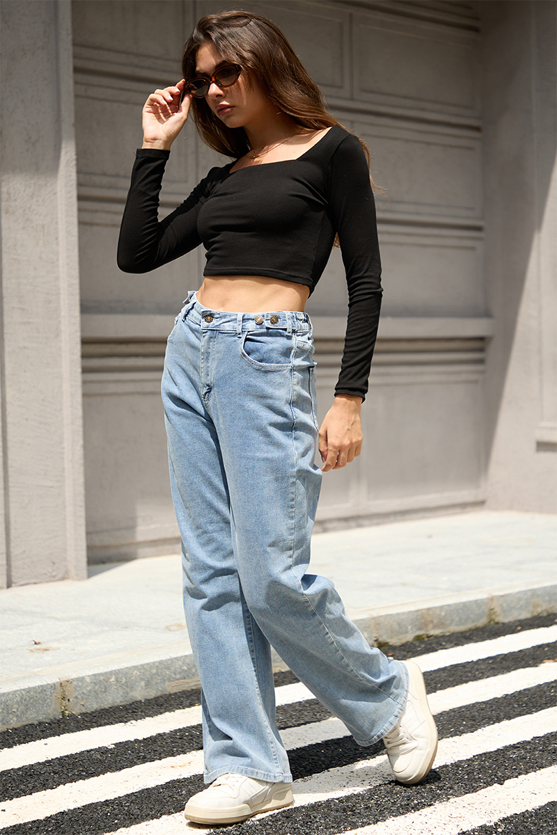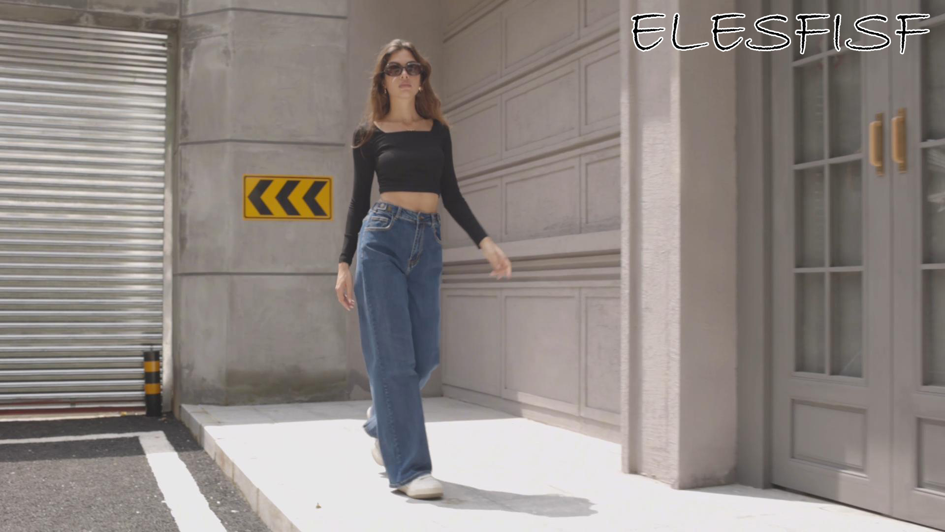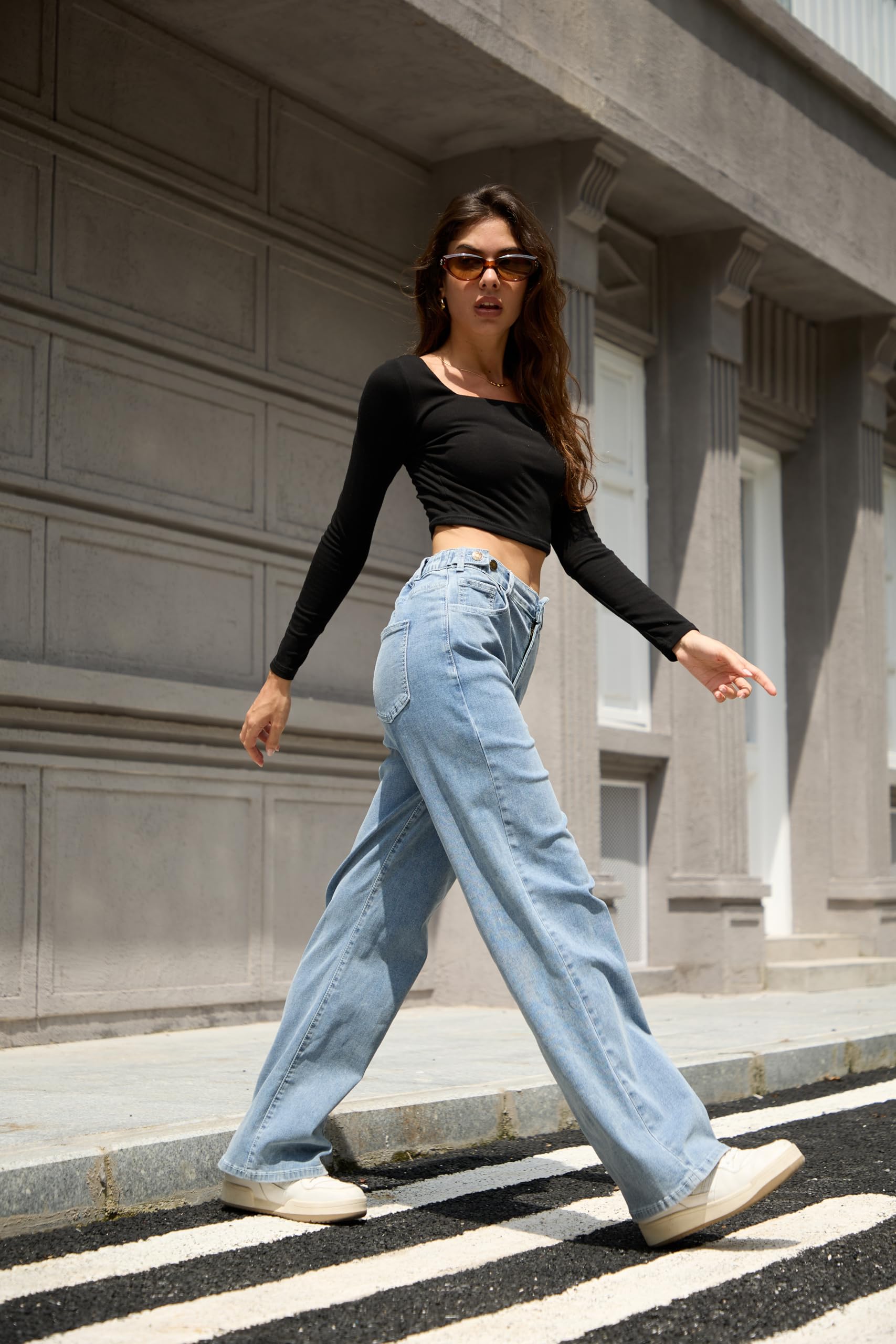 Baggy Wide Leg Jeans for Women - Elastic High Waisted Stretchy Tummy Control Boyfriend Denim Pants Trouser Trendy