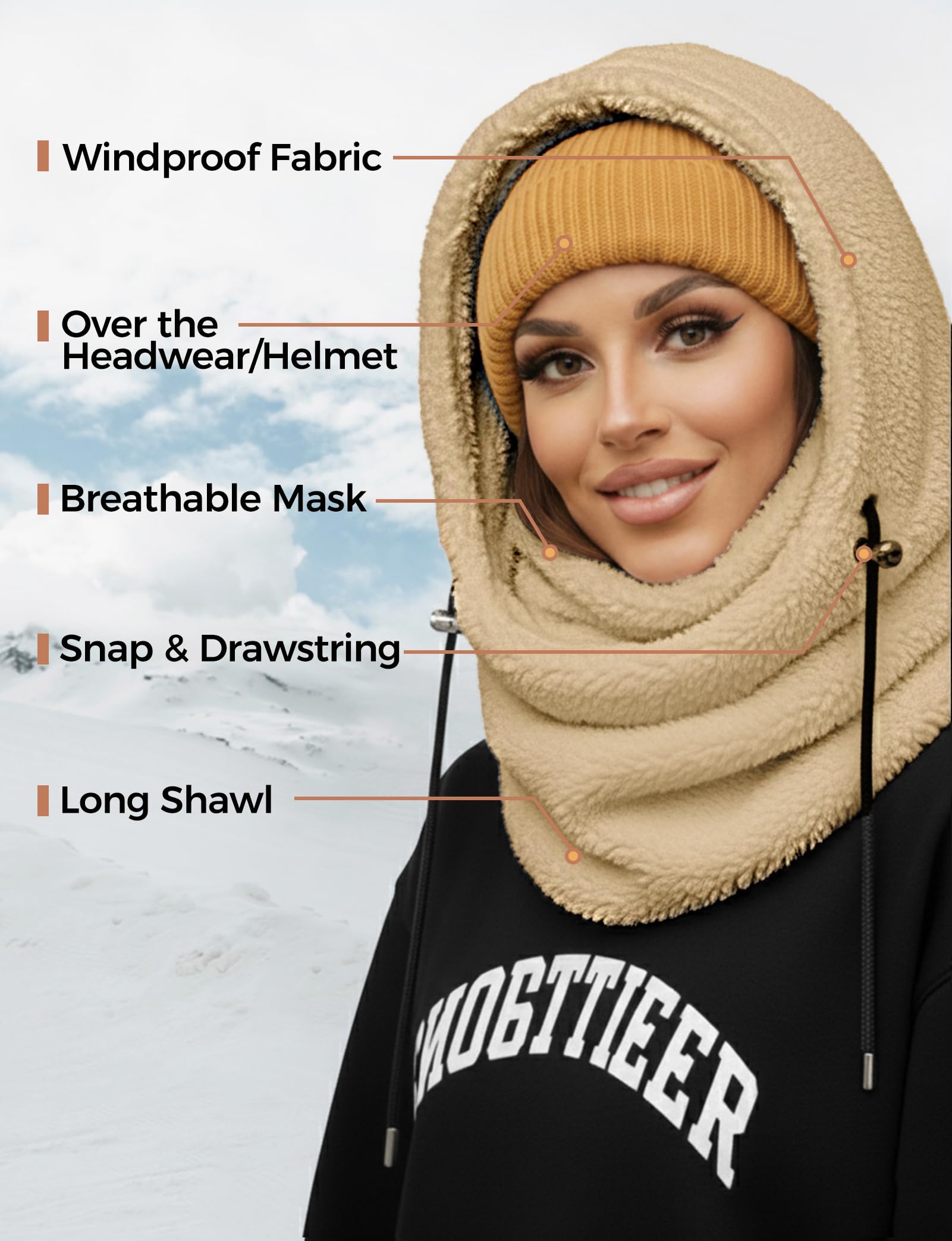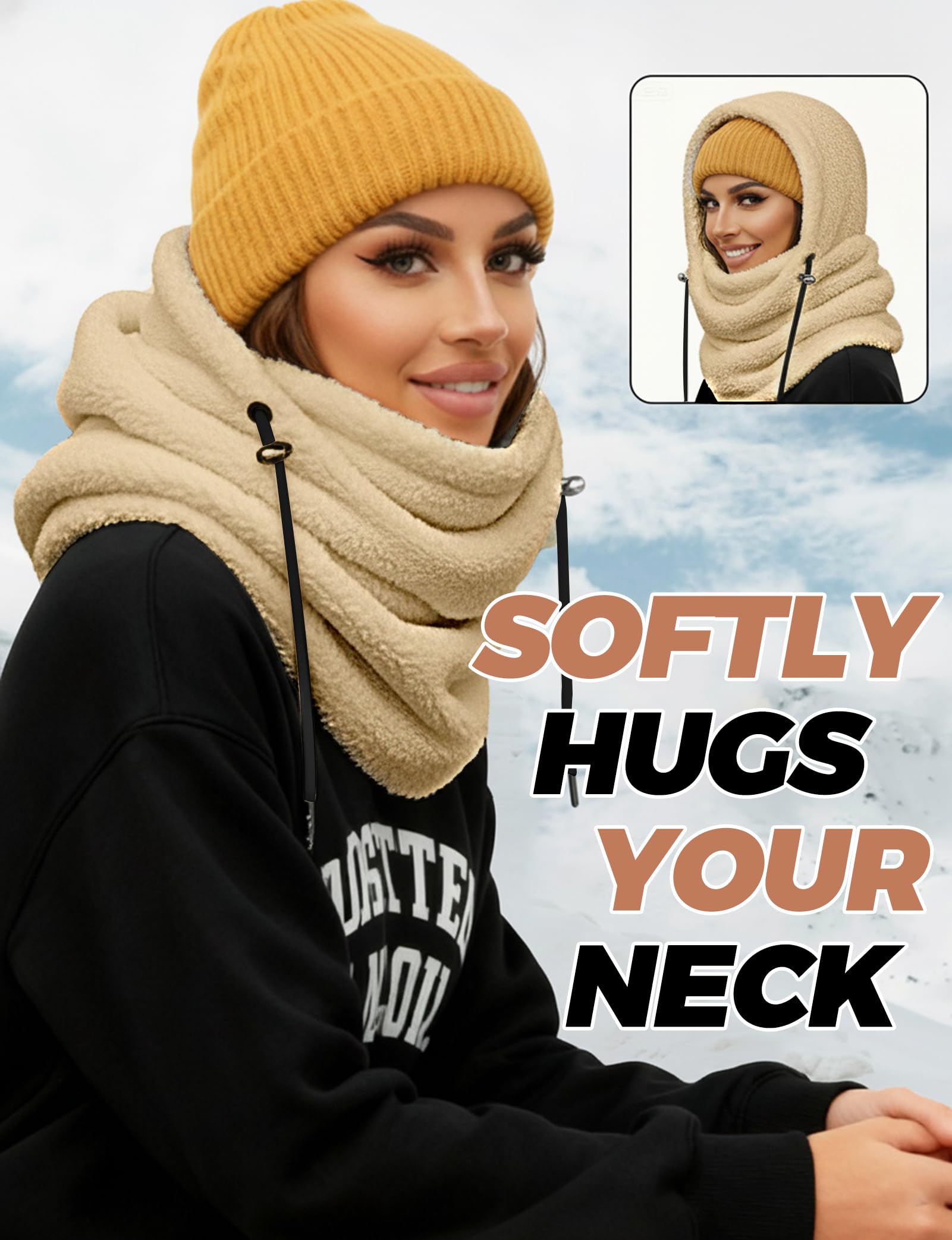 Balaclava for men and women, winter hat, neck windproof, wool ski mask, warm mask, scarf