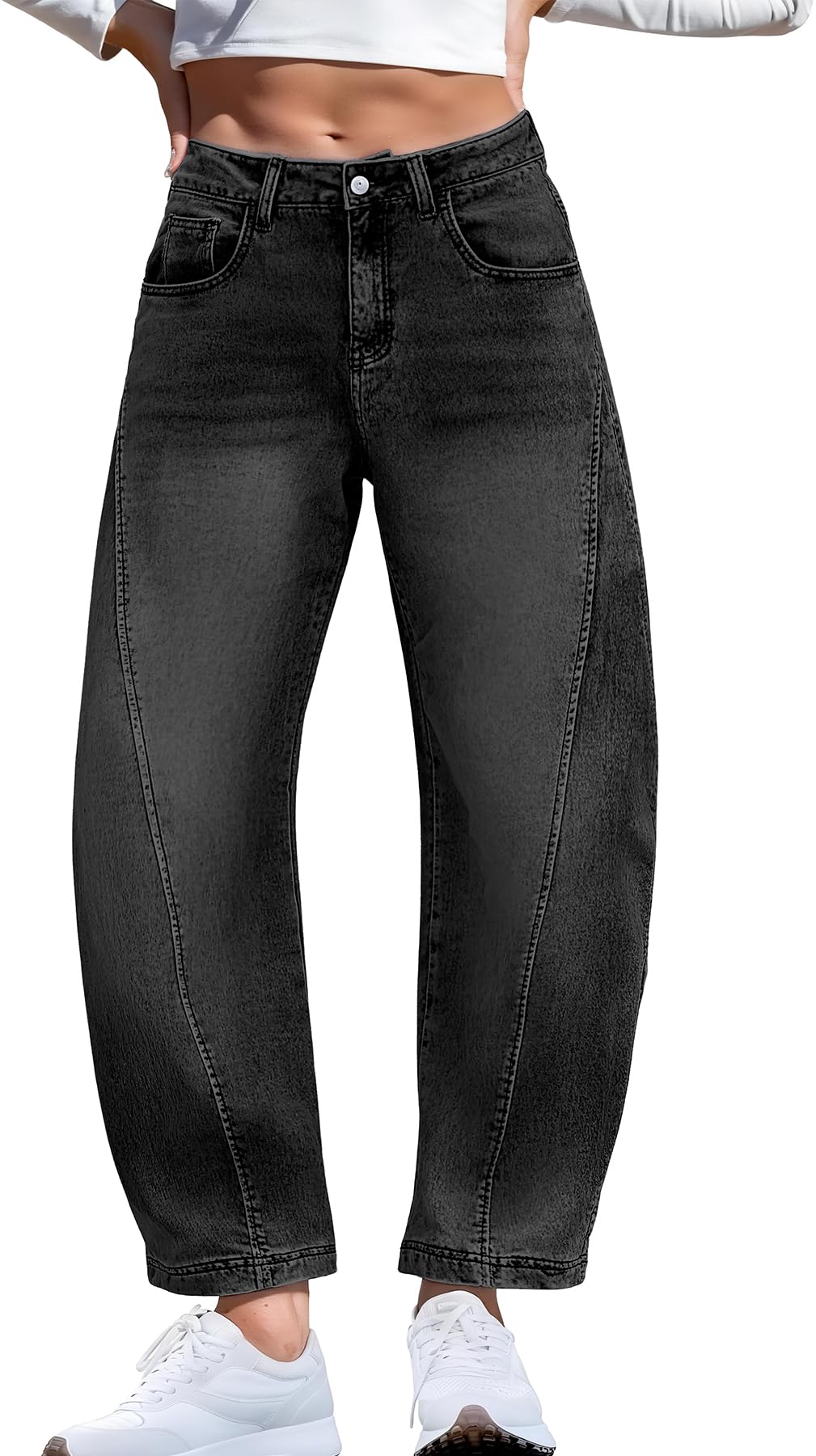 Barrel Jeans for Women Stretchy Denim Pants Boyfriend Baggy Mid Rise Sweatpant Jeans