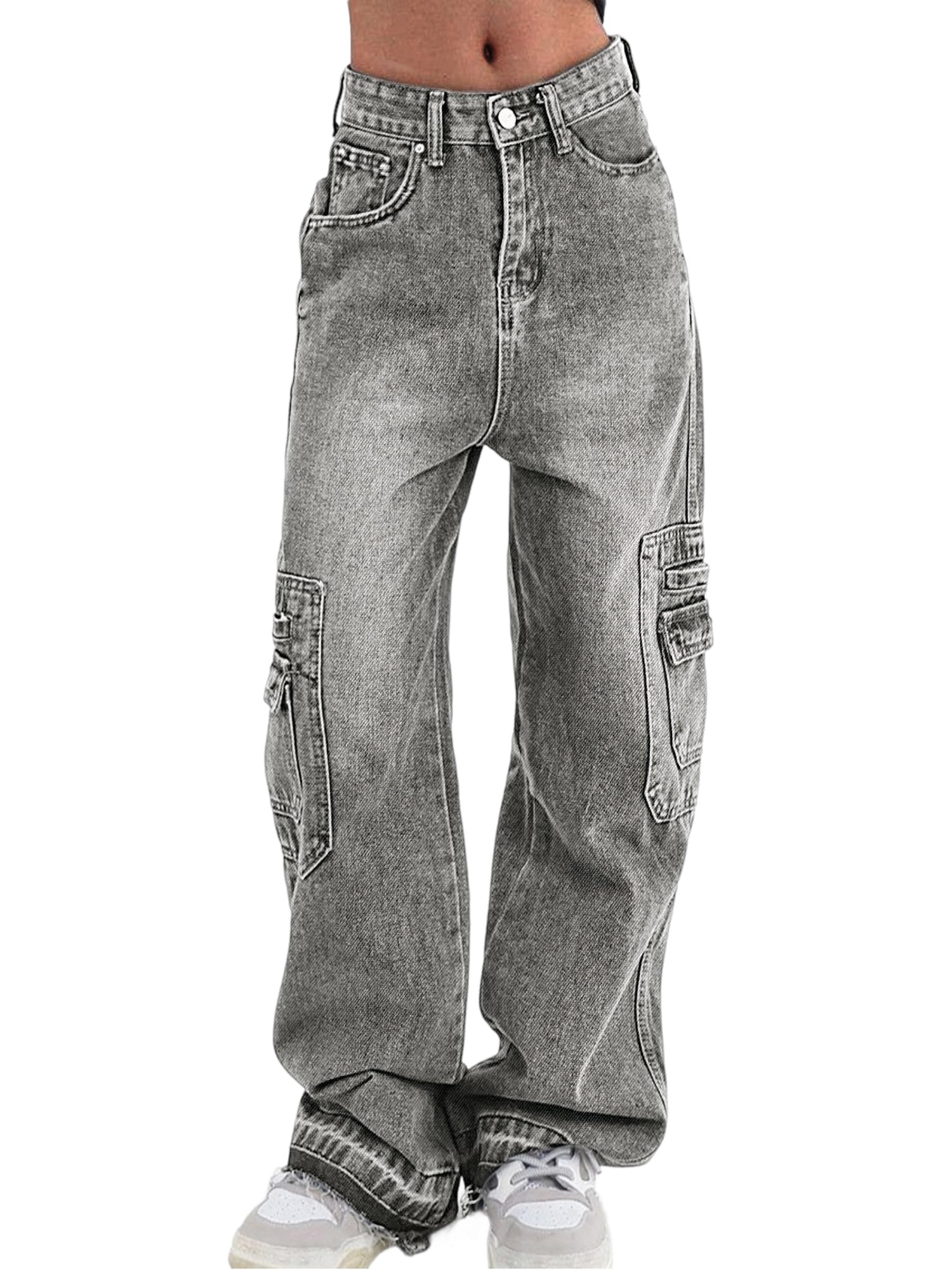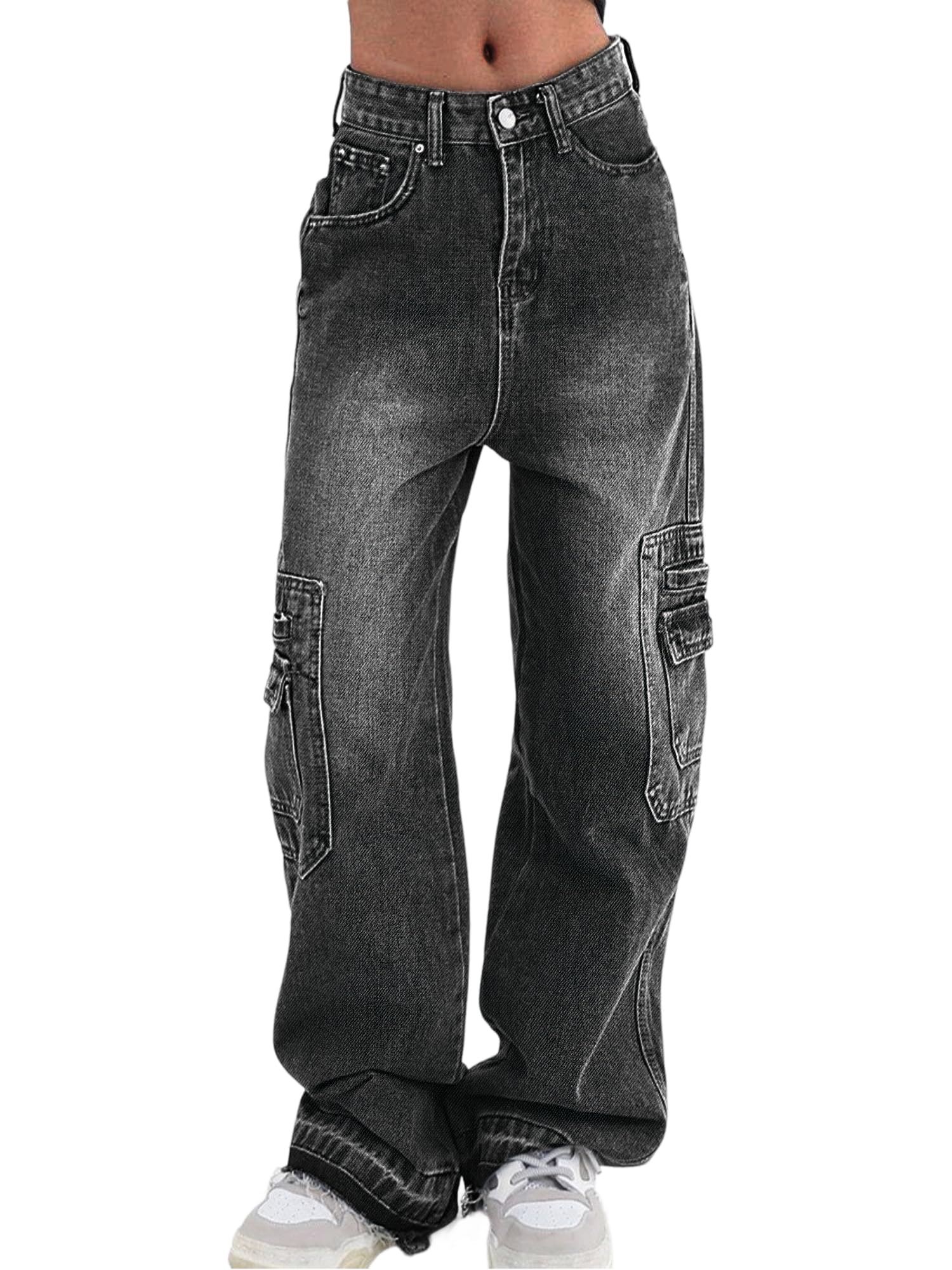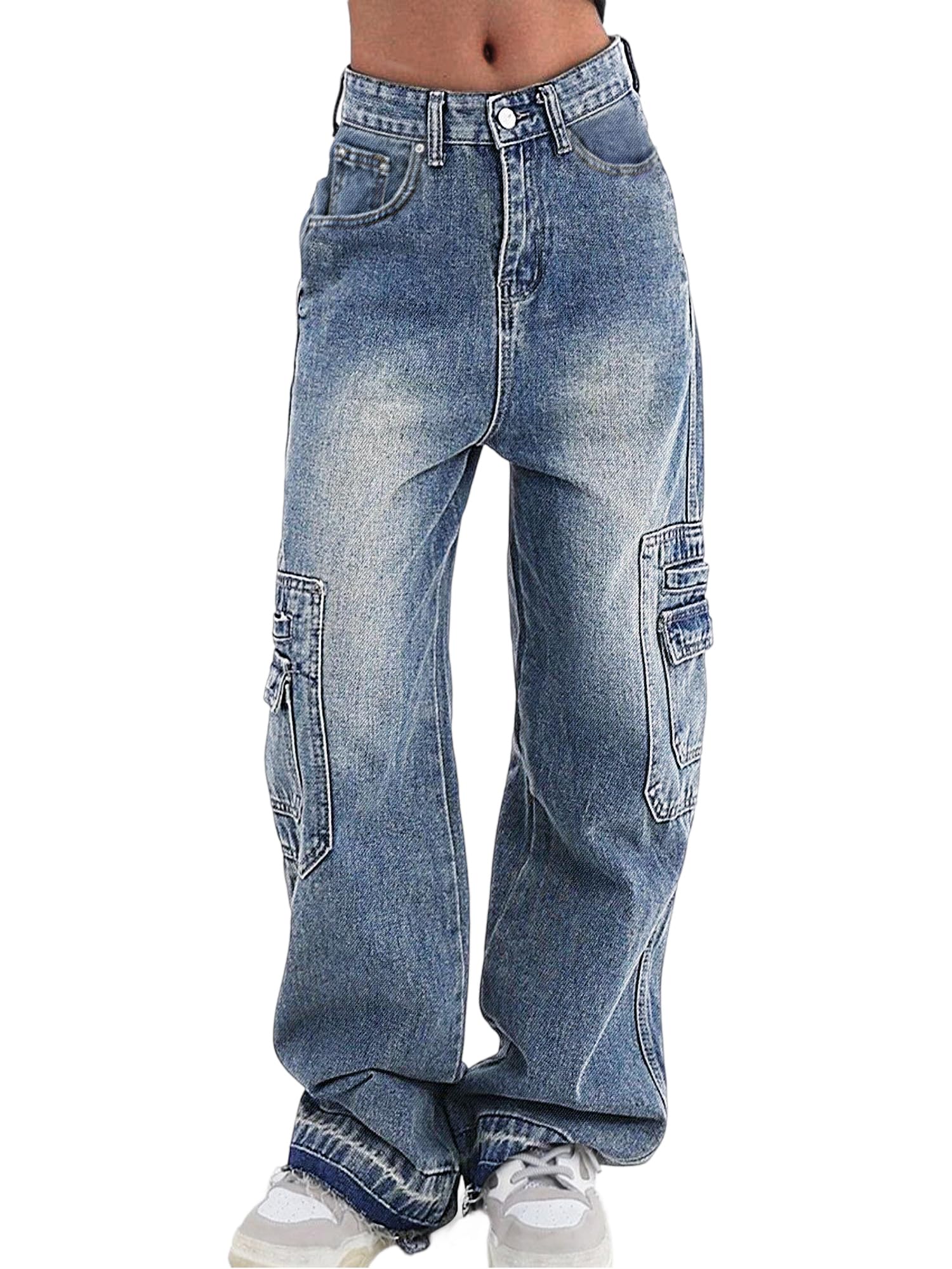 Cargo Pants Women Stretchy Wide Leg Baggy Jeans with Pockets Casual Trousers Y2K Vintage Streetwear Trendy
