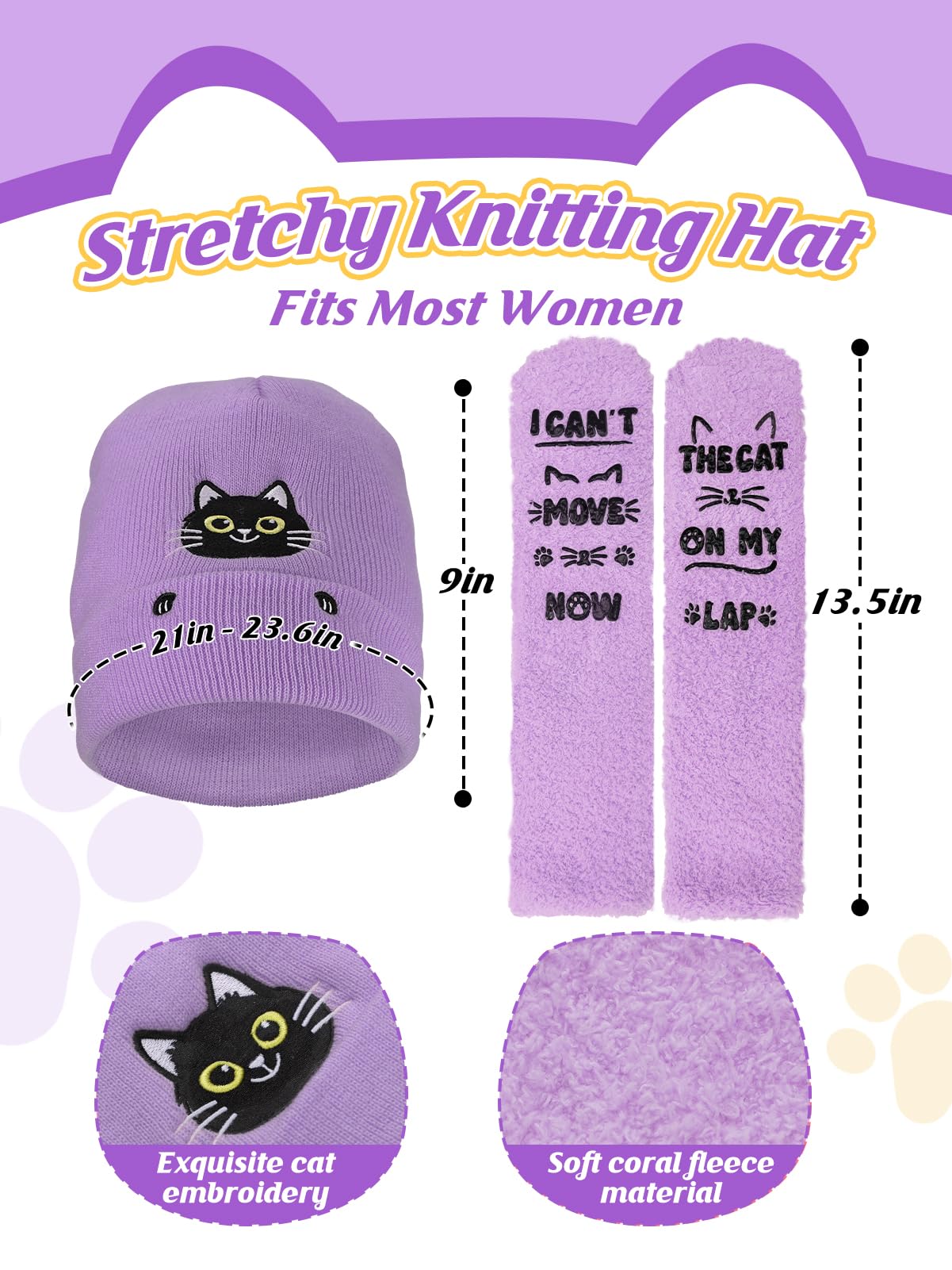 Cat Beanie Hat and Funny Socks for Women - Cute Warm Christmas Stocking Stuffers Gifts for Cat Lover