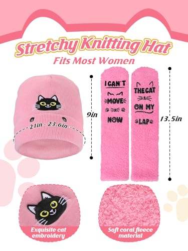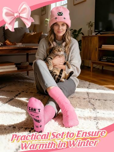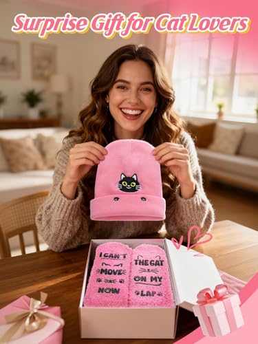 Cat Beanie Hat and Funny Socks for Women - Cute Warm Christmas Stocking Stuffers Gifts for Cat Lover