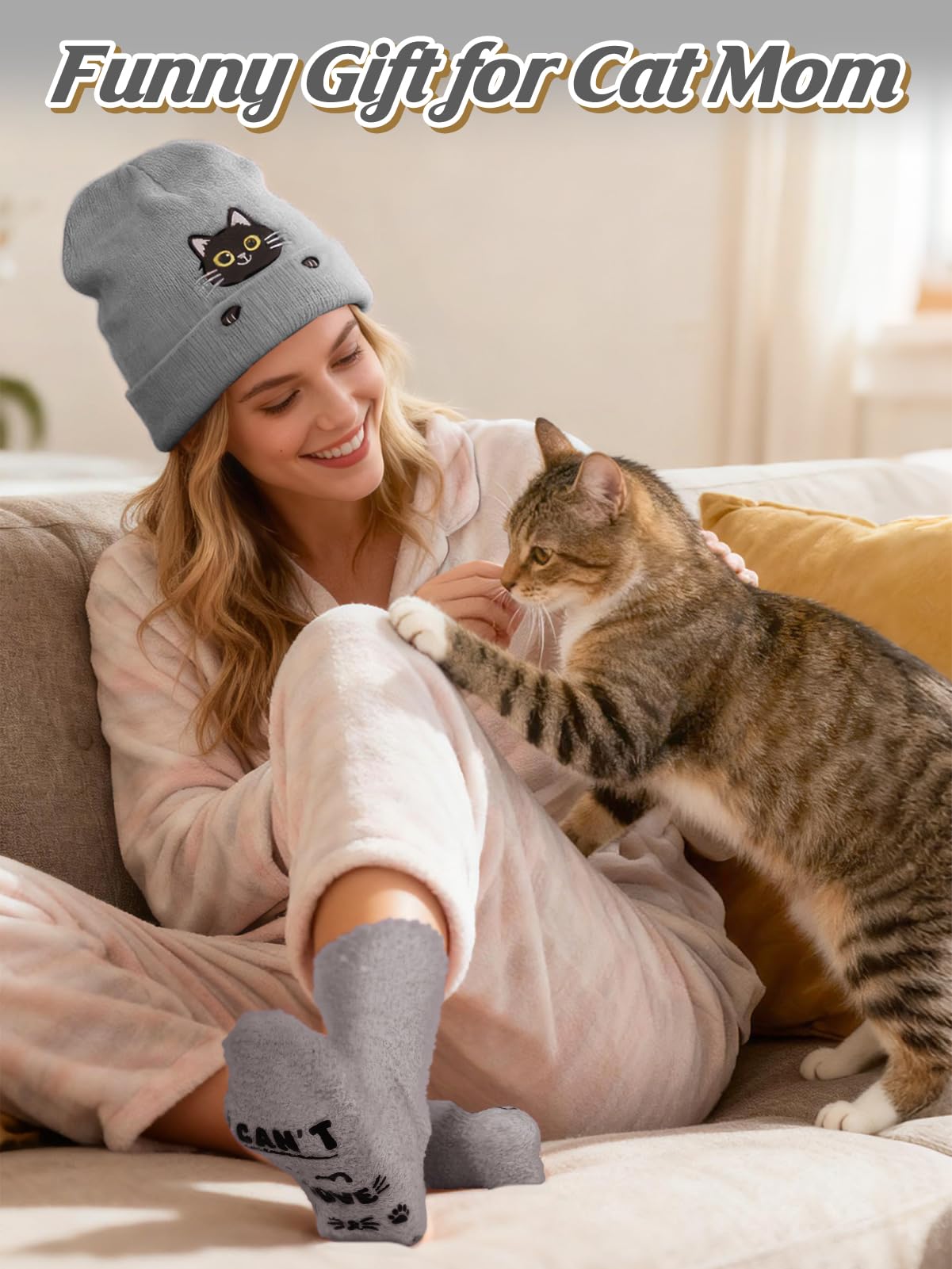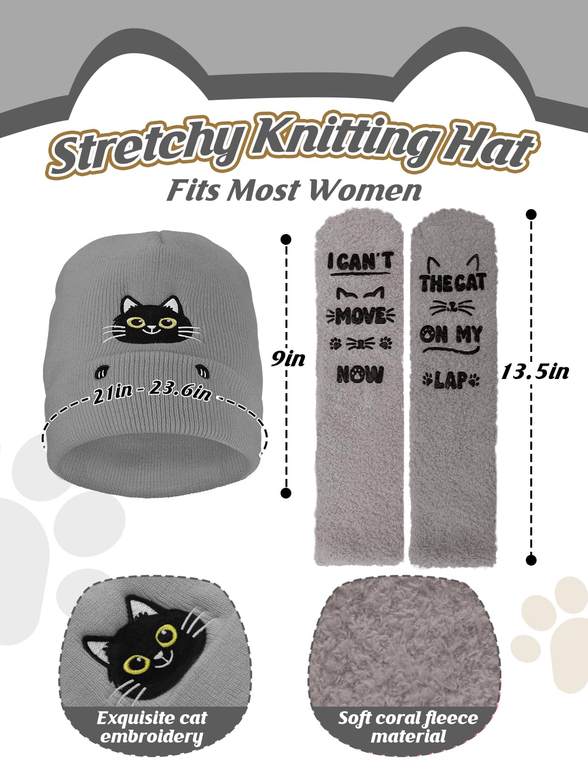 Cat Beanie Hat and Funny Socks for Women - Cute Warm Christmas Stocking Stuffers Gifts for Cat Lover
