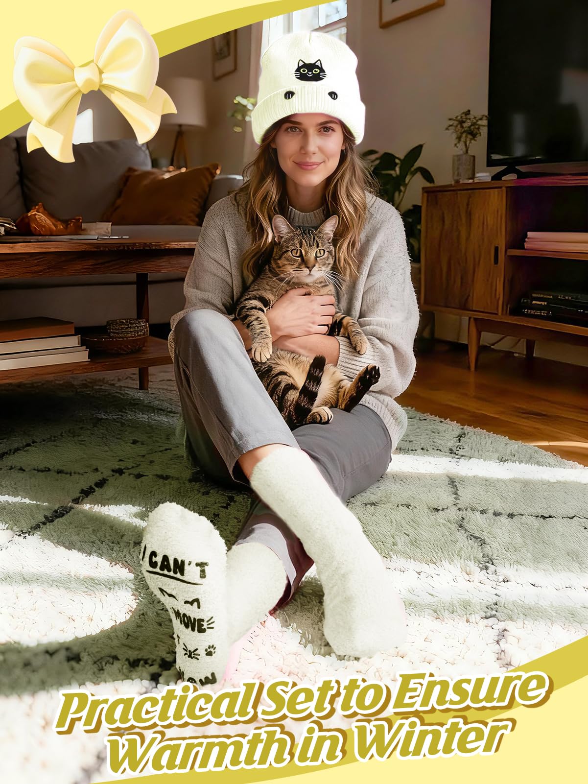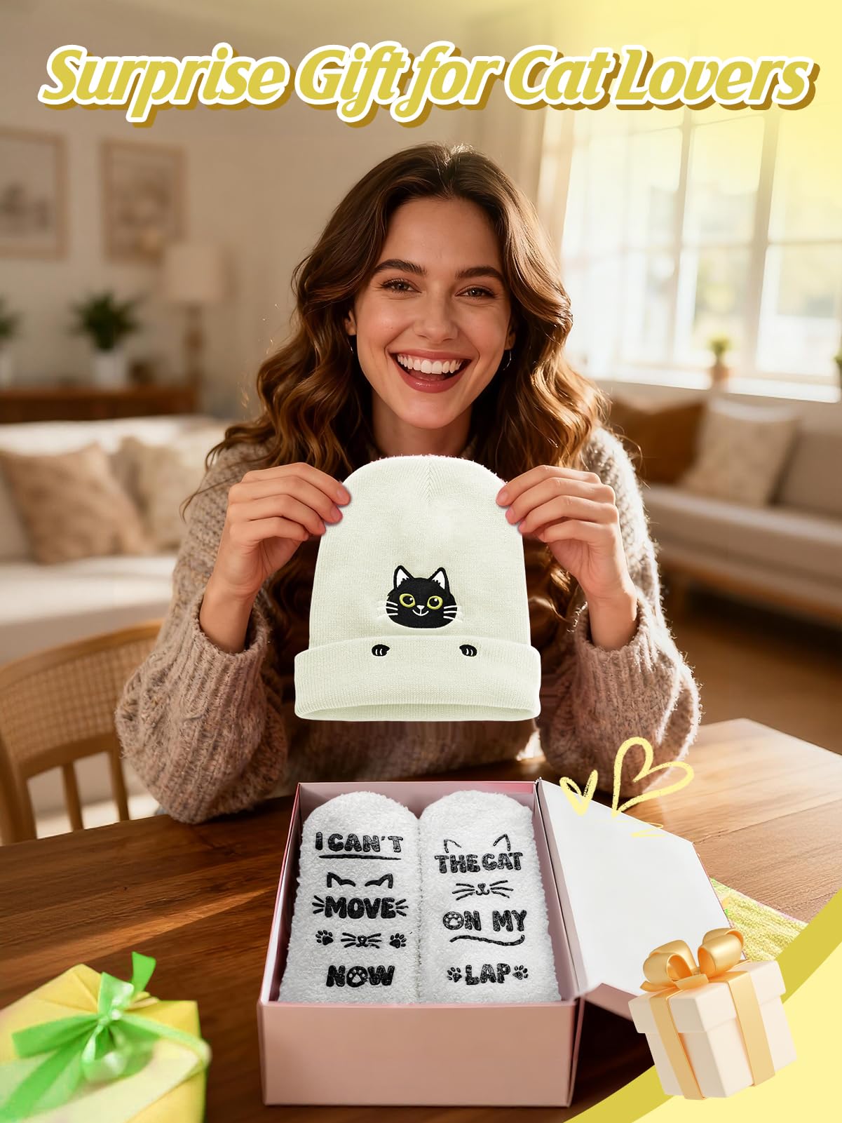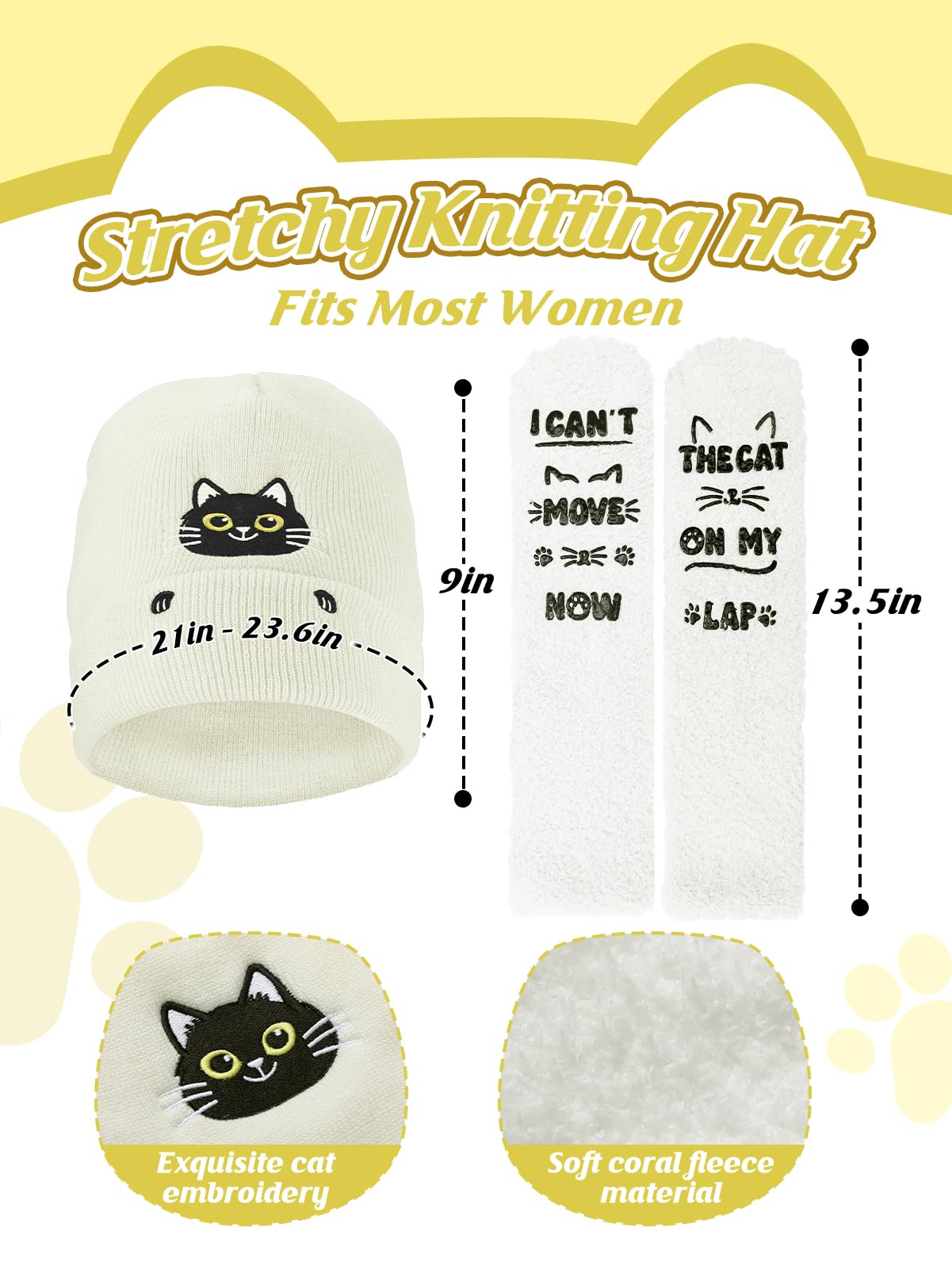 Cat Beanie Hat and Funny Socks for Women - Cute Warm Christmas Stocking Stuffers Gifts for Cat Lover