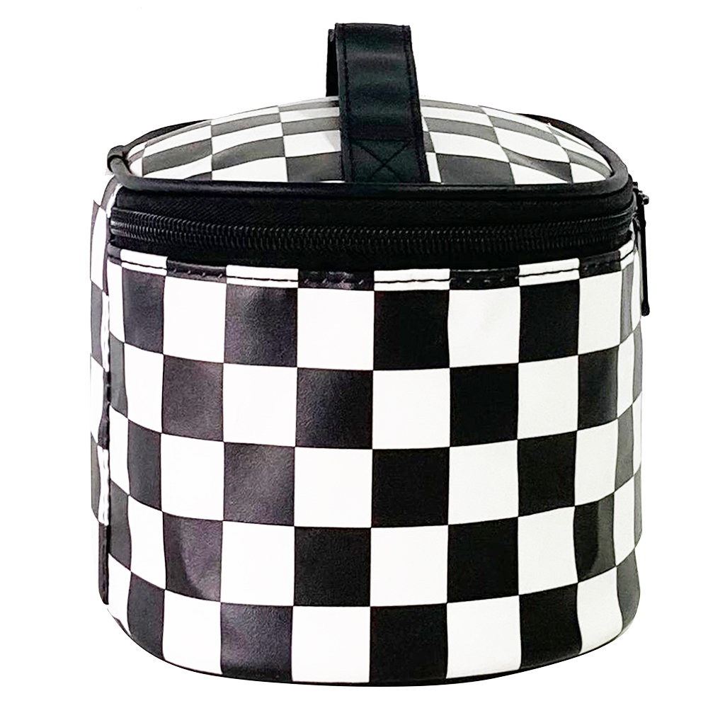 Checkered PU Makeup Travel Cosmetic Bag Organizer Toiletry Bag Make up Bags with Compartments for Women Girls