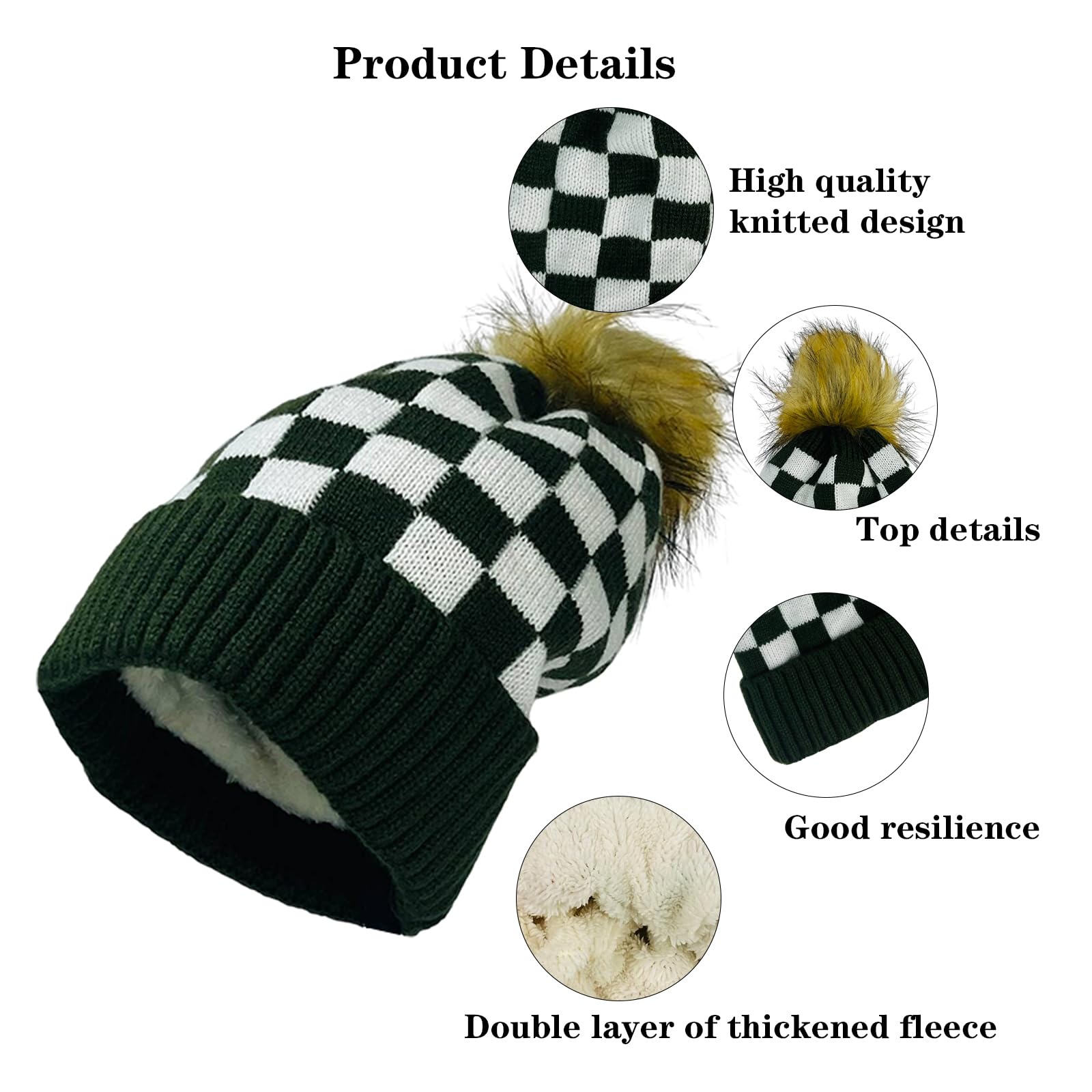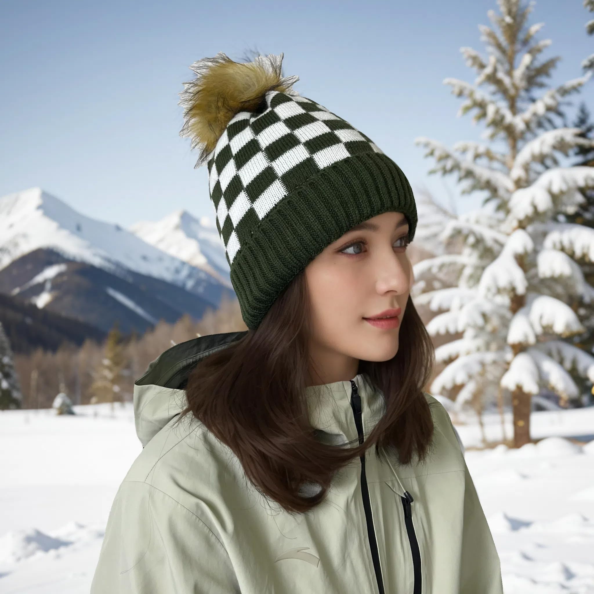 Colorful Checkered Knit Beanie for Men and Women, Wool Lined Beanie, Warm Winter Hat, Fashionable Knit Rolled Brim Hat