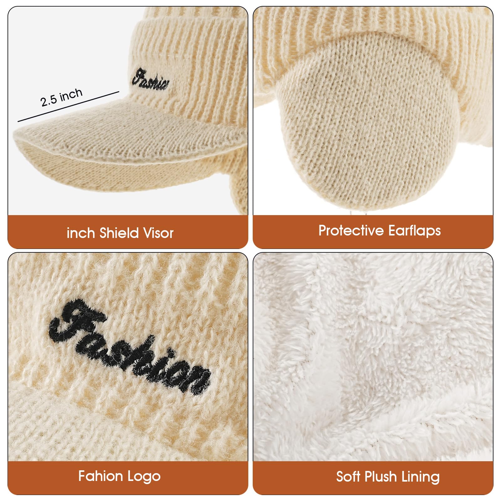 Winter beanie with earmuffs, hat with brim and scarf set, warm wool-lined skullcap neck warmer