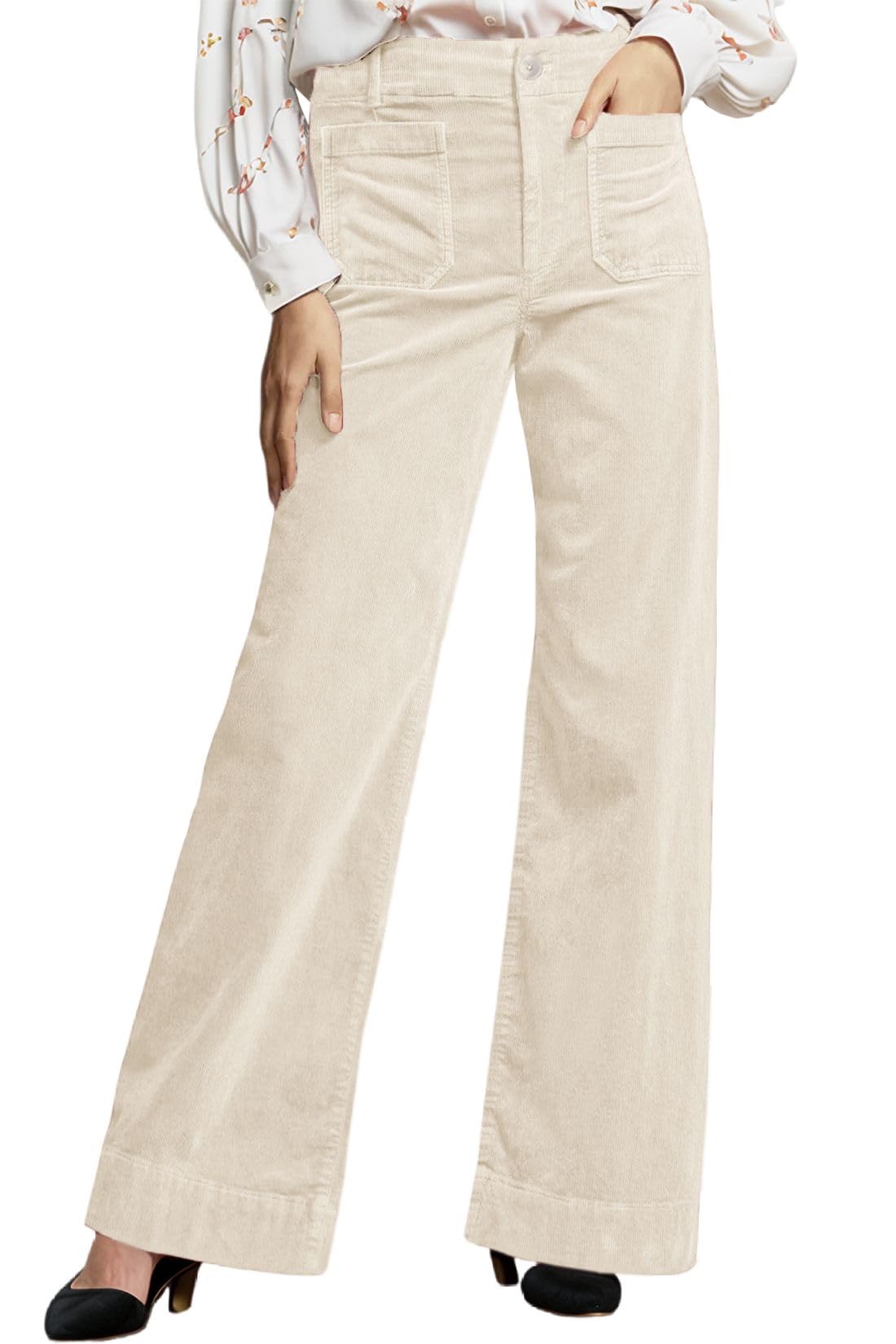 Corduroy Pants Women Elastic Waist Flare Pants Bell Bottom Business Casual Trousers Pants for Women