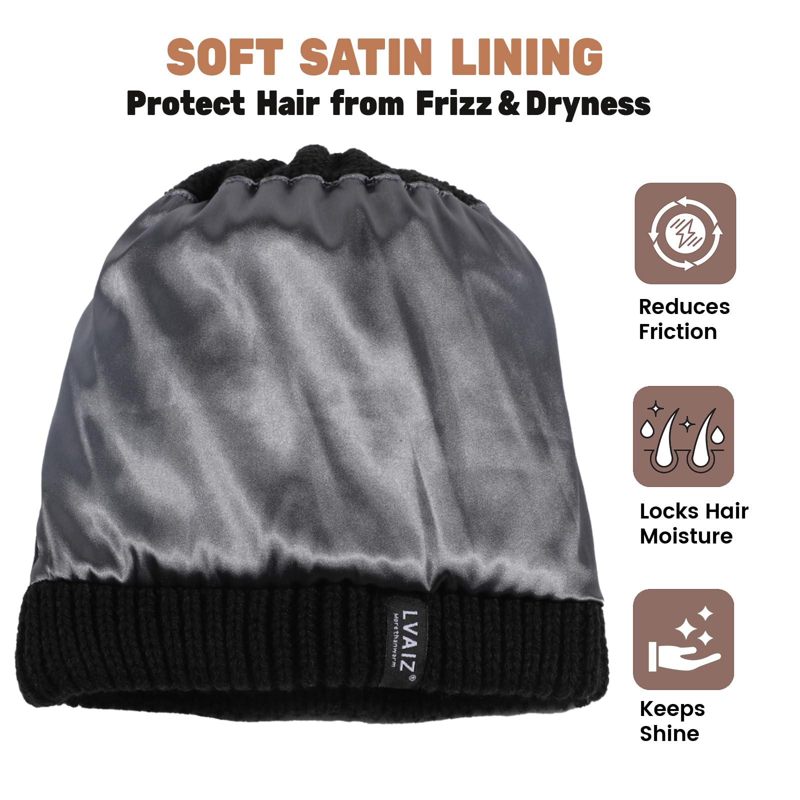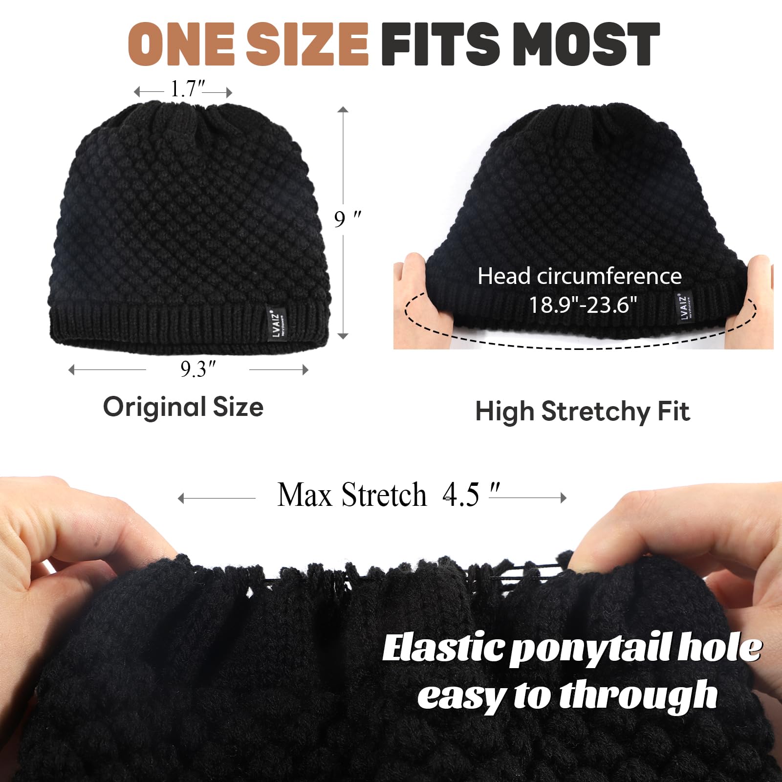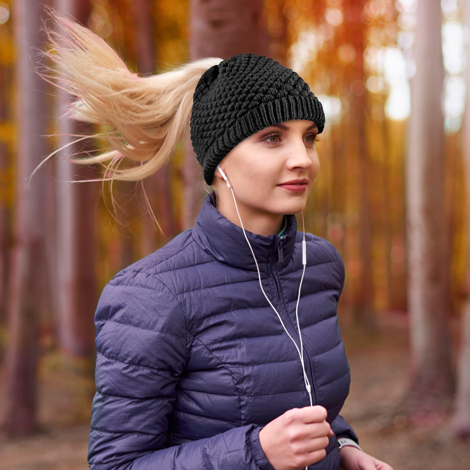 Mütze mit Satinfutter, Pferdeschwanz, Mütze ohne Krempe, gestrickte Wintermütze, Damen-Mütze mit hohem, unordentlichem, rundem Dutt mit Pferdeschwanzloch, warme Schädeldecke