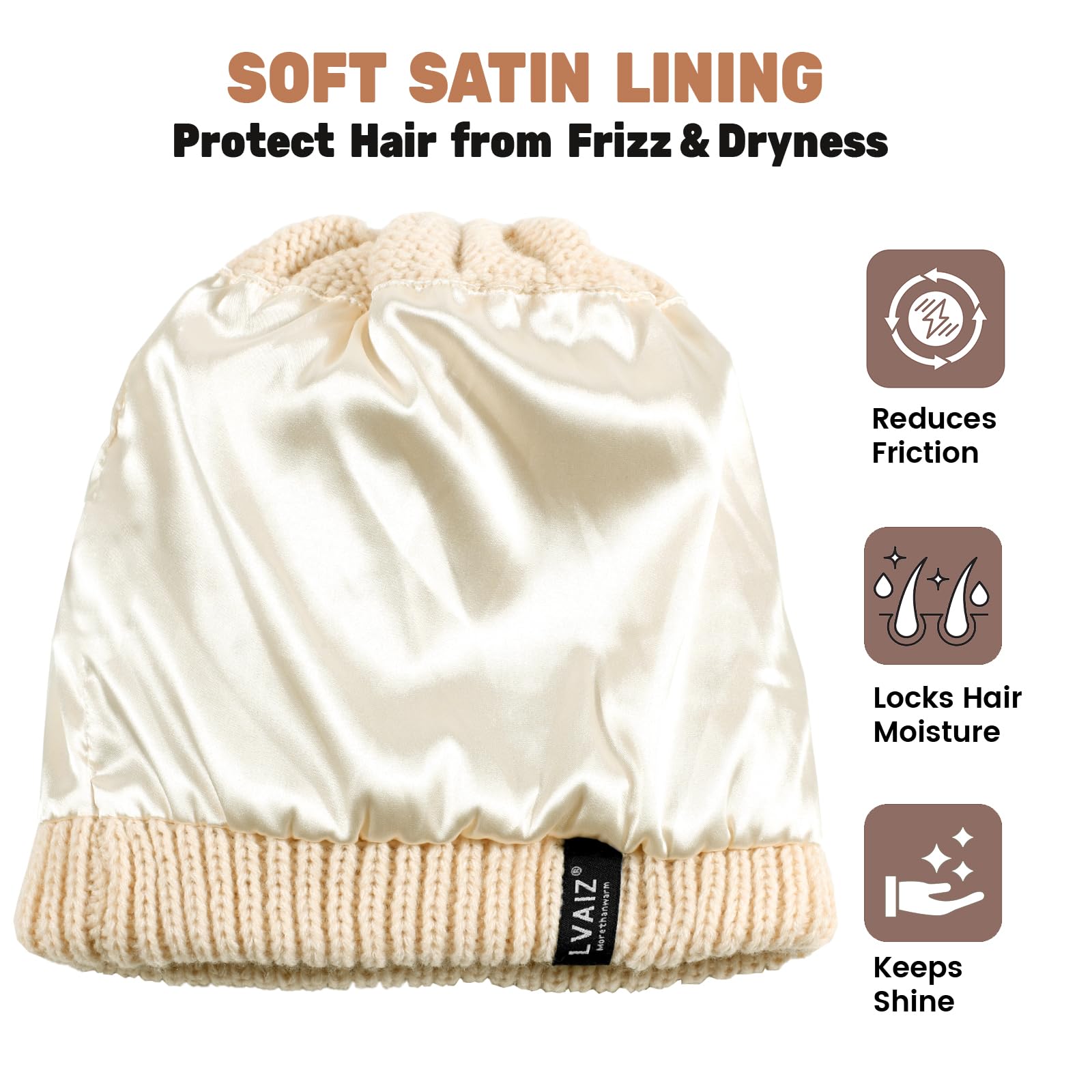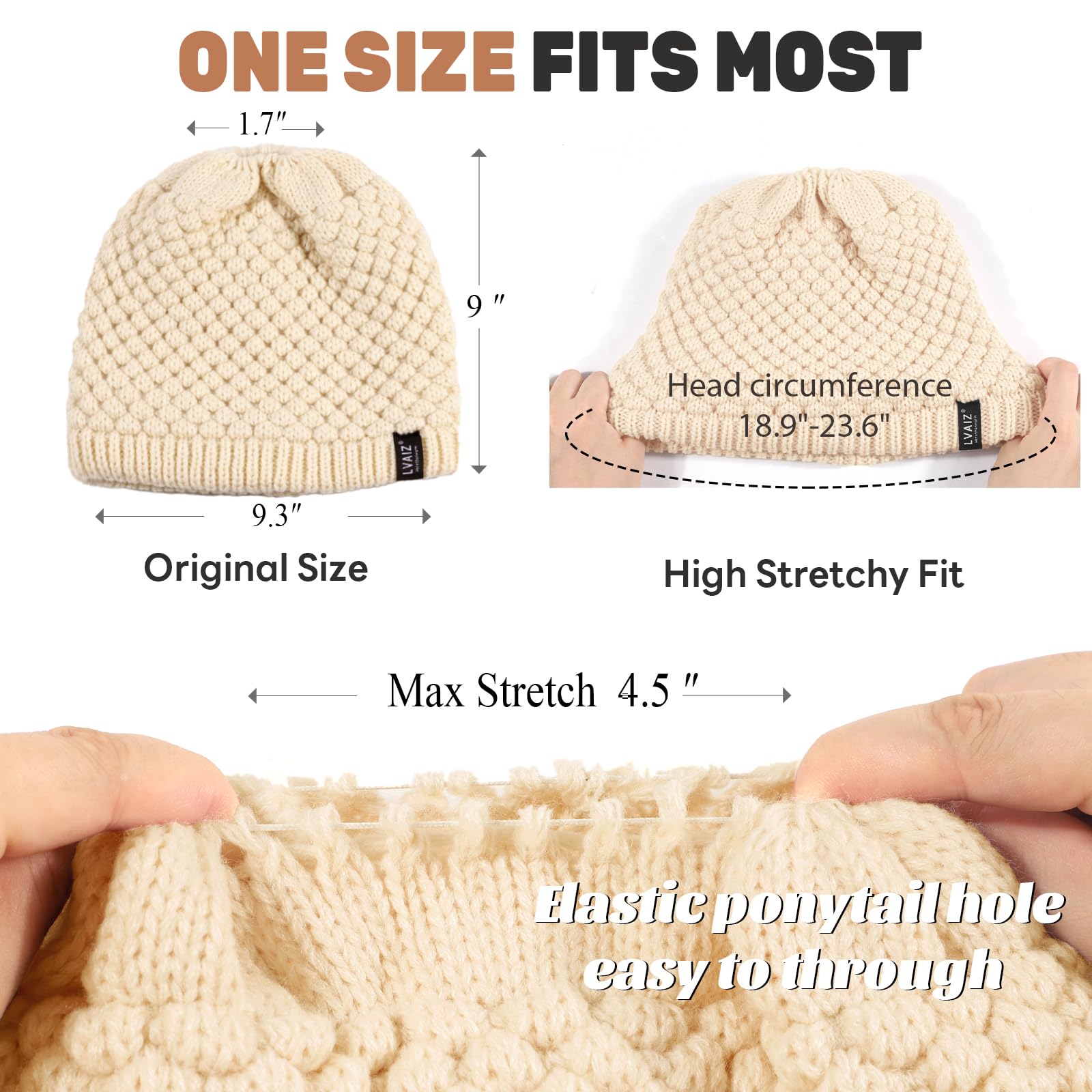 Mütze mit Satinfutter, Pferdeschwanz, Mütze ohne Krempe, gestrickte Wintermütze, Damen-Mütze mit hohem, unordentlichem, rundem Dutt mit Pferdeschwanzloch, warme Schädeldecke