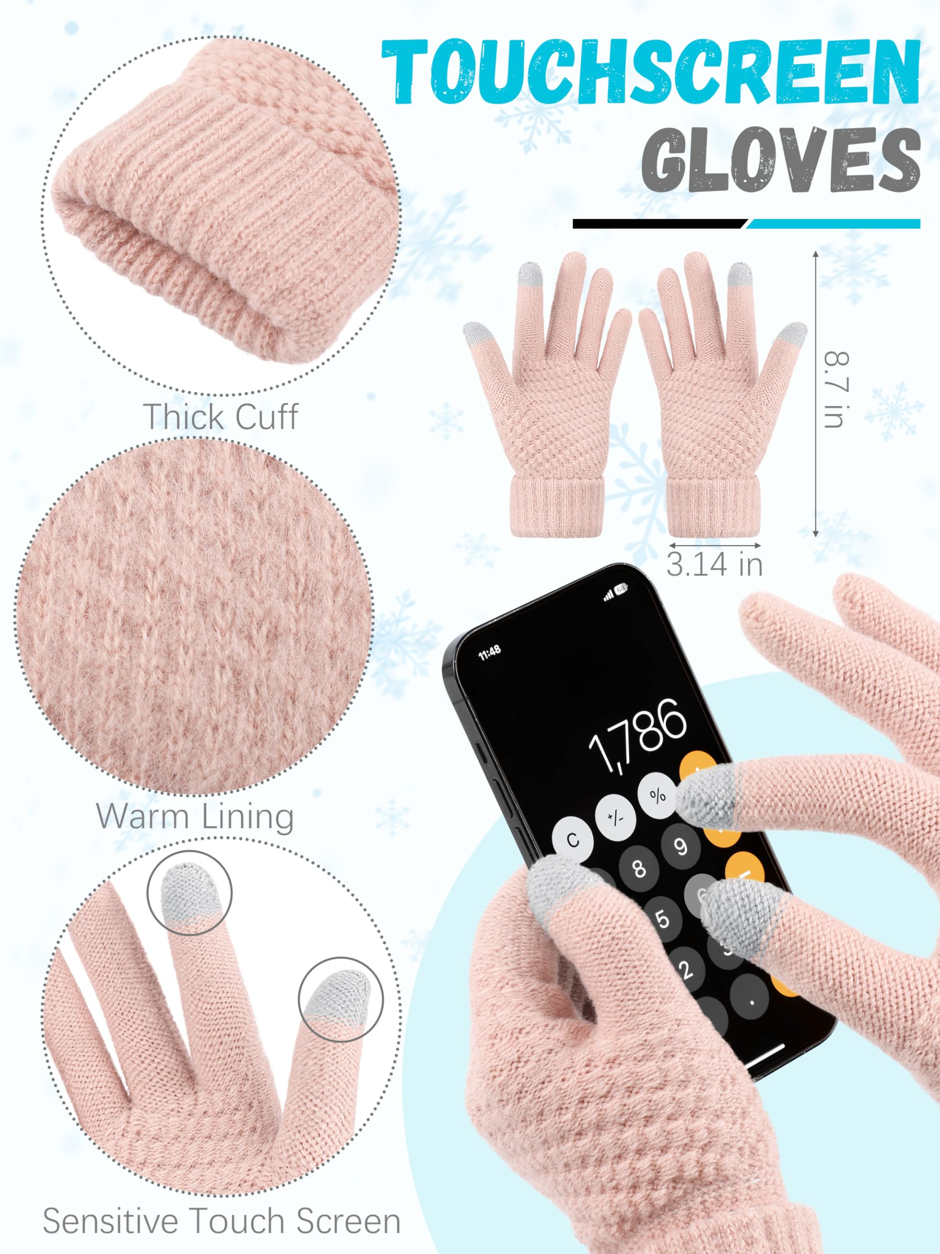 Set aus gestrickter Wintermütze, Schal und Touchscreen-Handschuhen aus Thermowolle - neutrales Wintergeschenk für Erwachsene