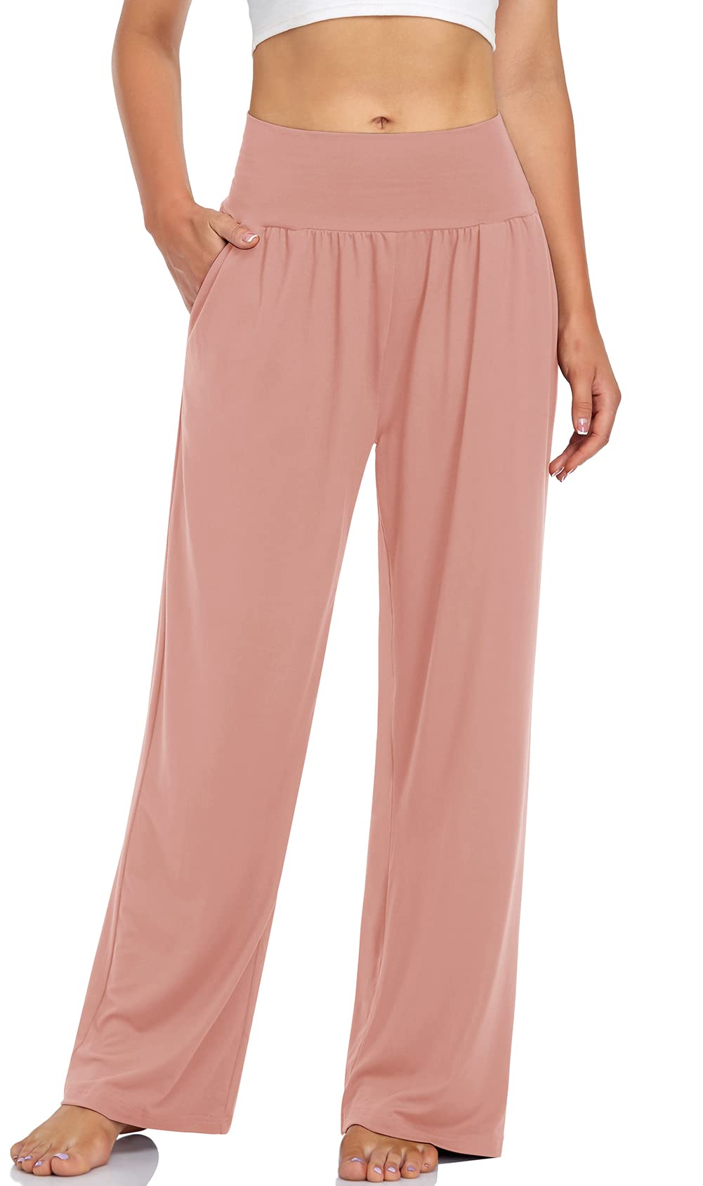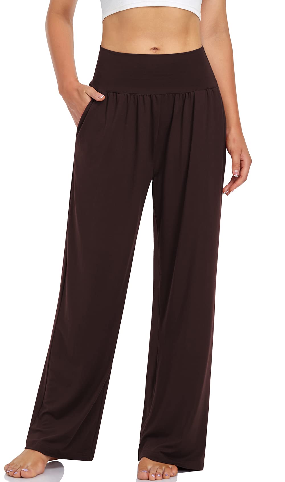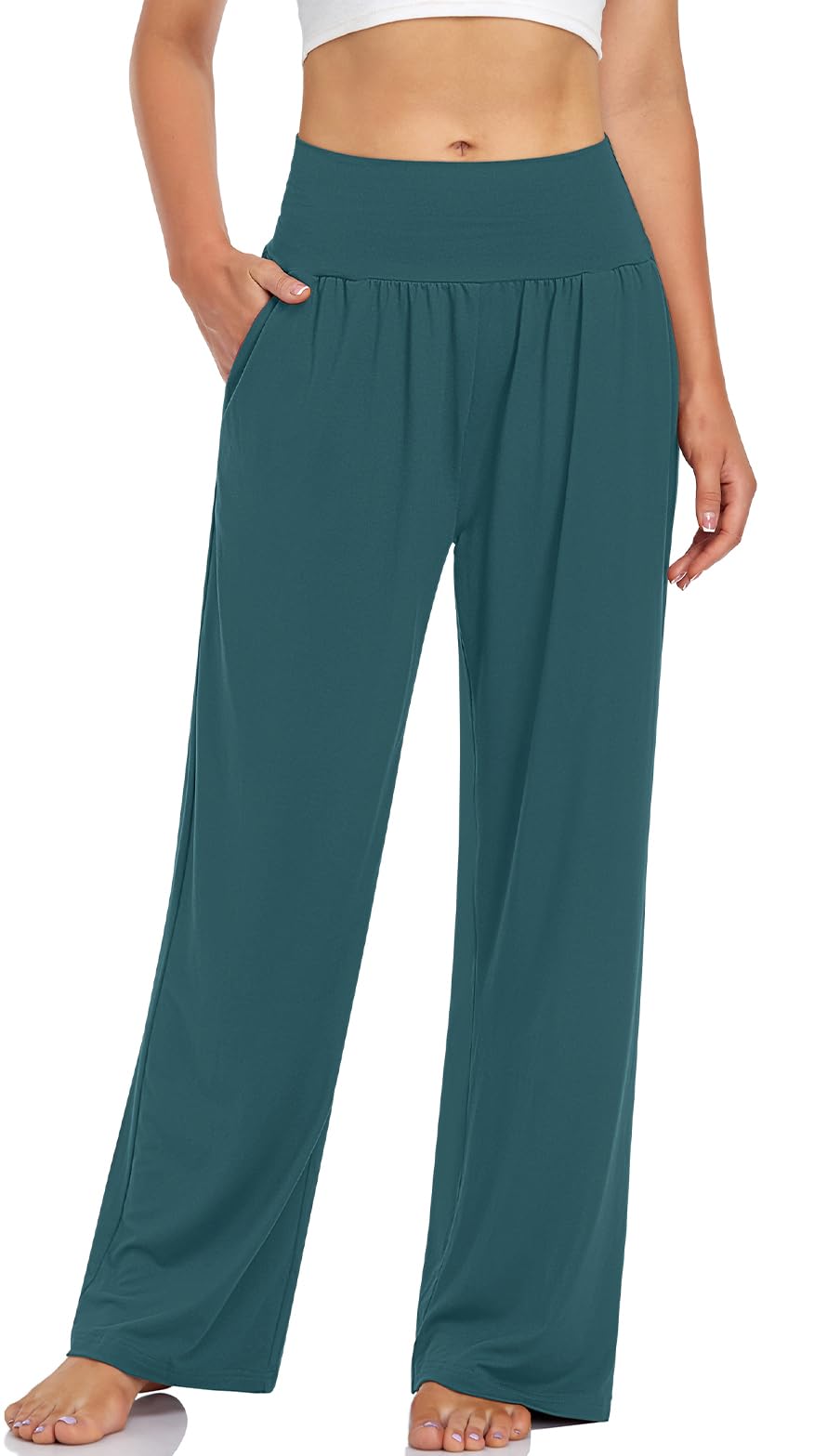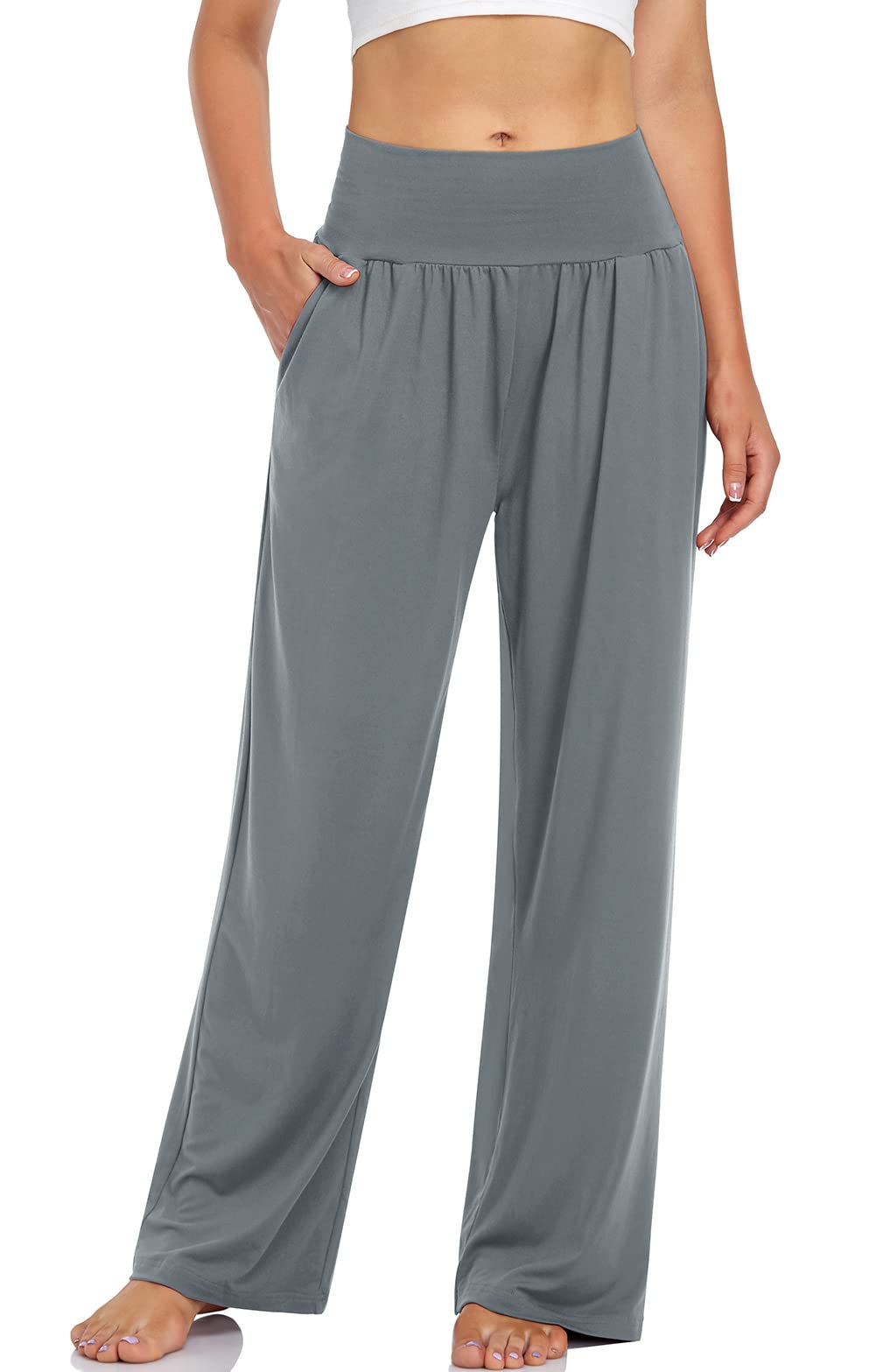Damen-Lässige, lockere, kuschelige Hose mit weitem Bein, Yoga-Jogginghose, bequeme Sport-Lounge-Hose mit hoher Taille und Taschen