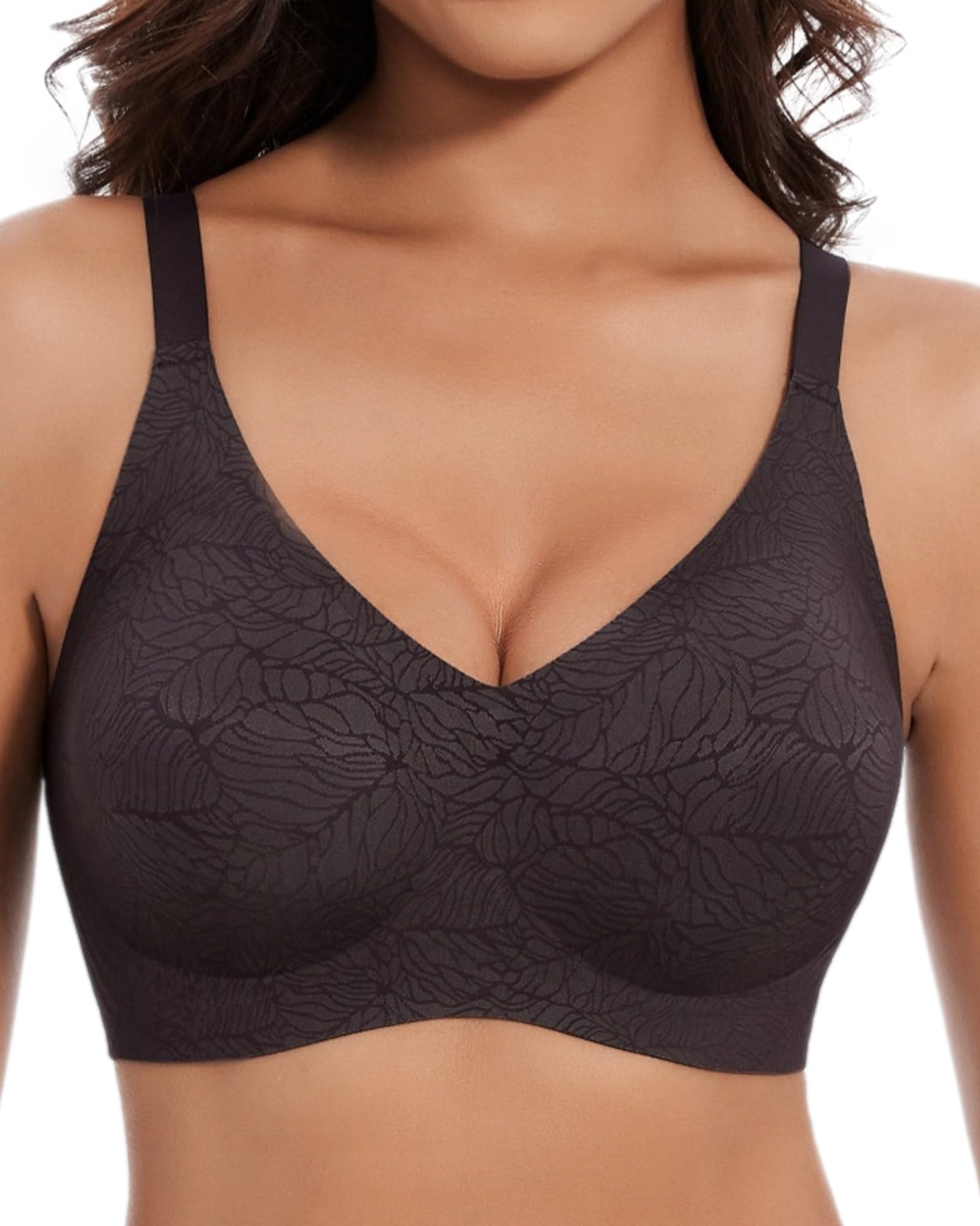 Nahtlose Damen-BHs ohne Bügel, Push-Up-BH mit V-Ausschnitt, kabellose Bralettes mit weichem Halt und vollständiger Abdeckung, Blumen-BH