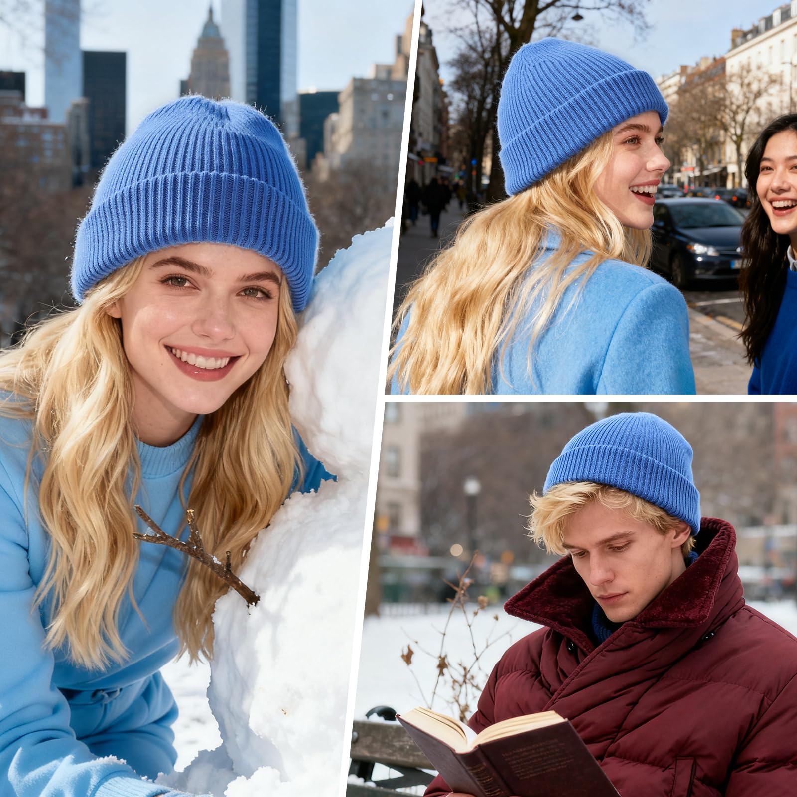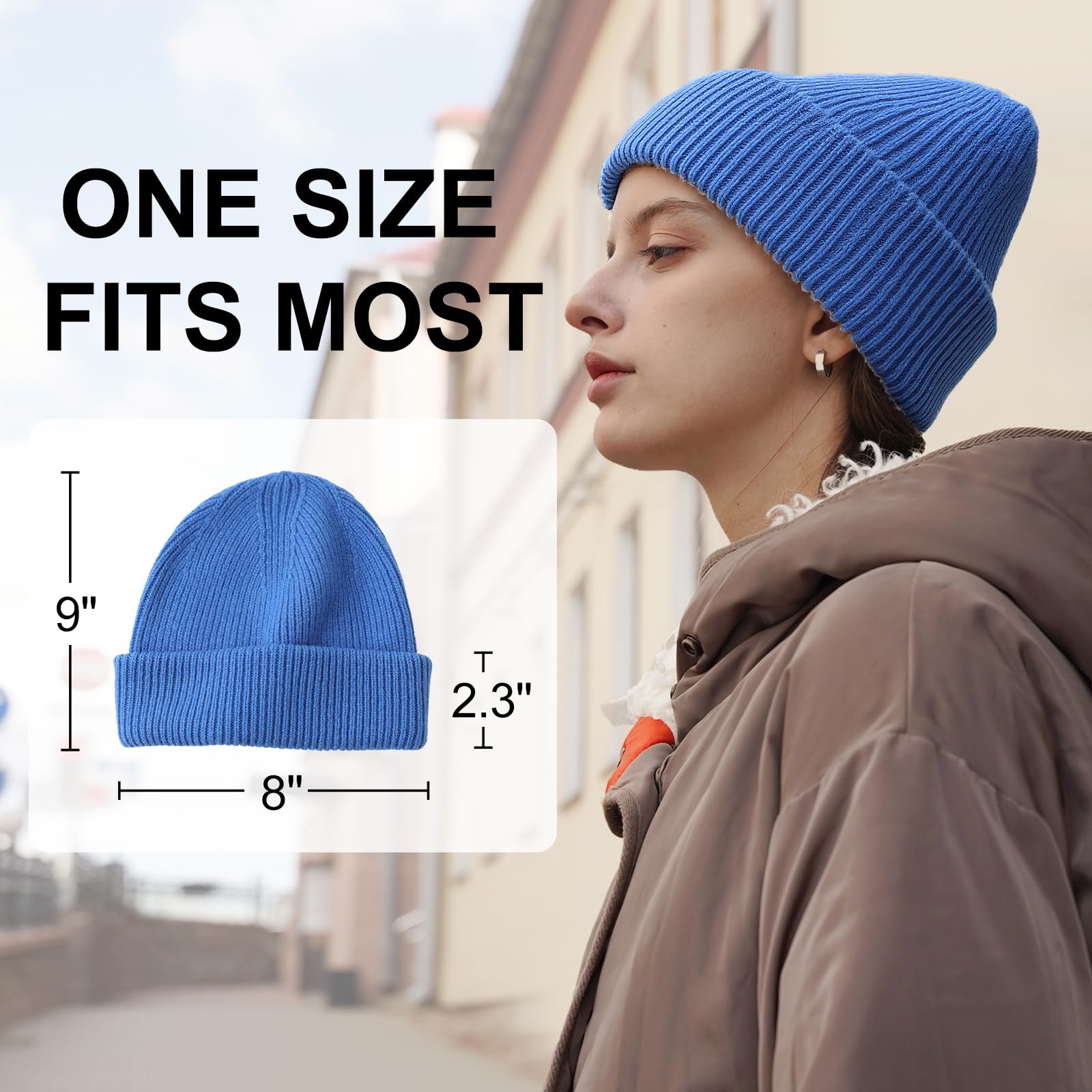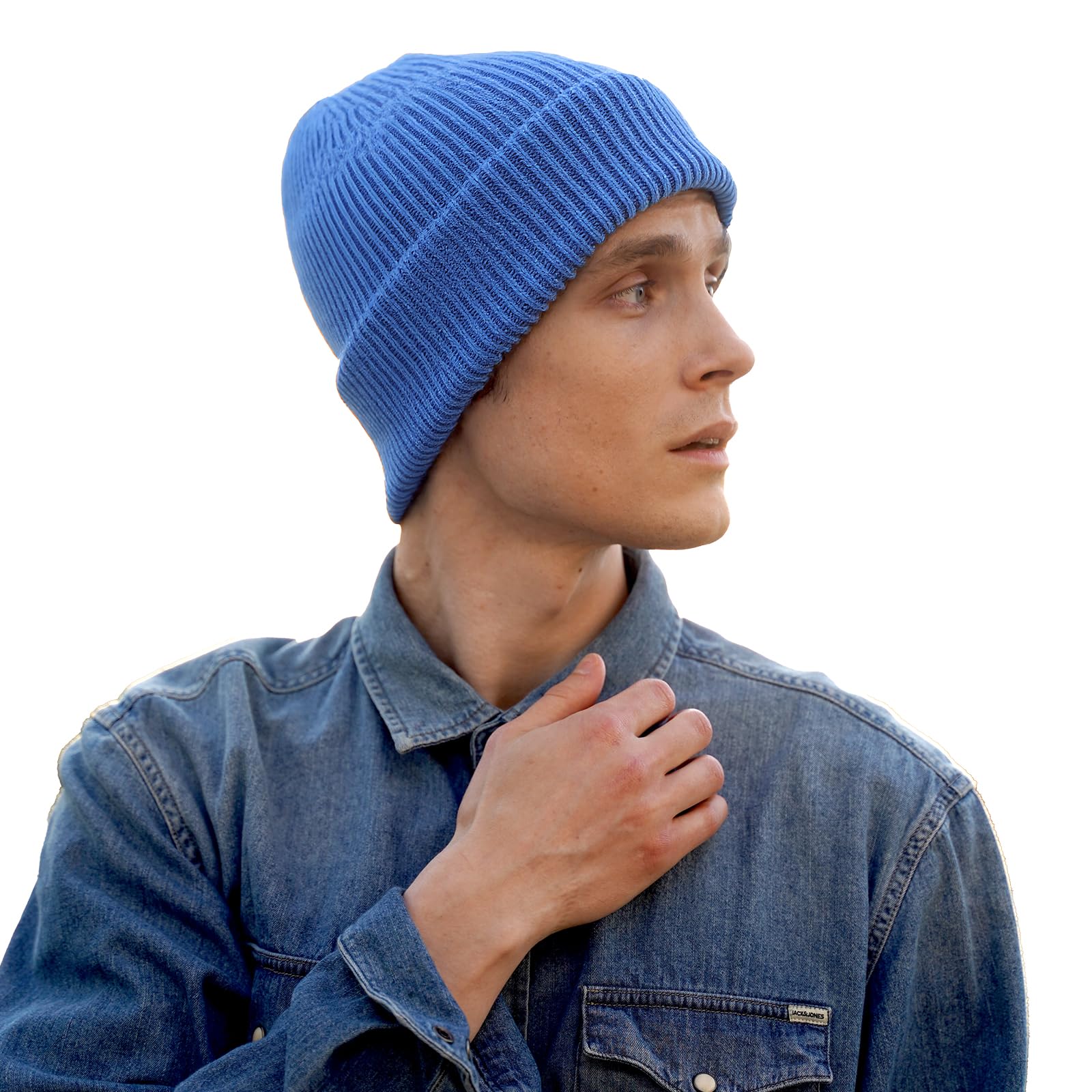 Wollmütze, warme Unisex-Wintermütze, Einheitsgröße mit gerollter Krempe und Rippstrick