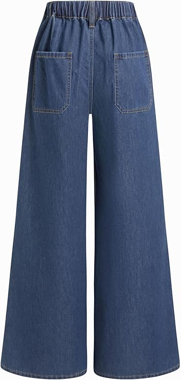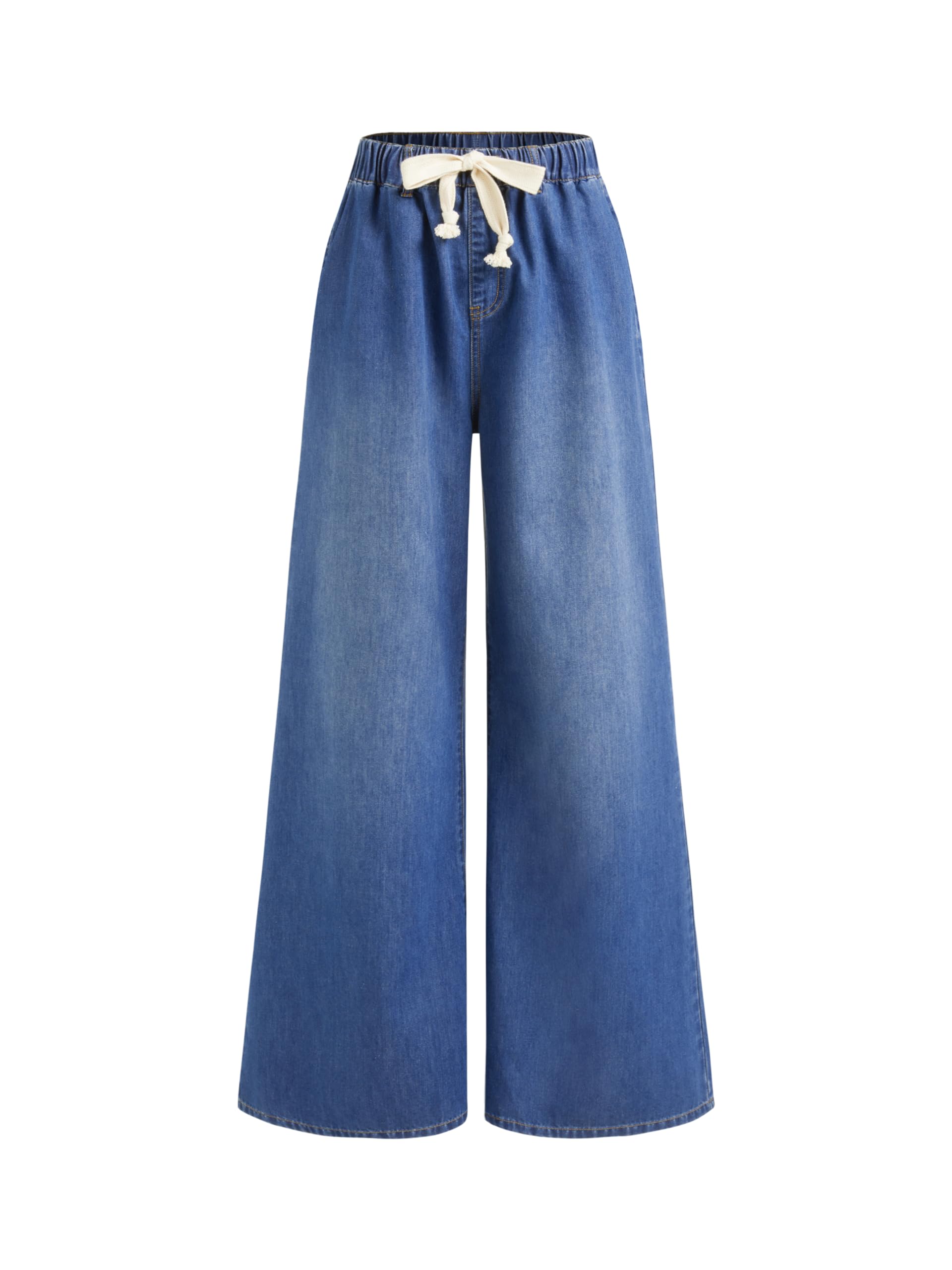 Drawstring Wide Leg Jeans for Women High Waisted Baggy Jeans Denim Pants with Pockets