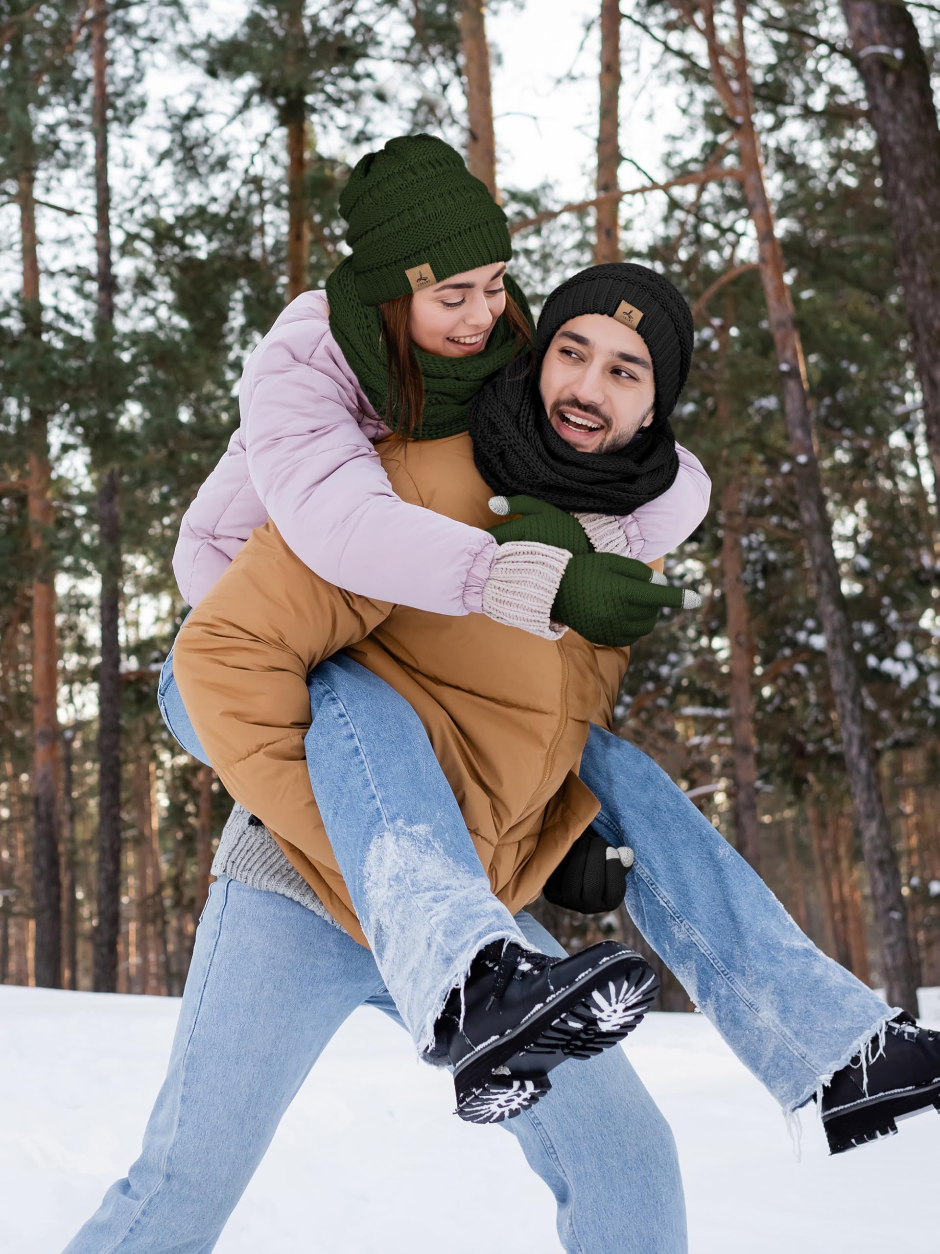 Conjunto de gorro de invierno de punto de lana térmica, bufanda y guantes para pantalla táctil - regalo de invierno neutral para adultos