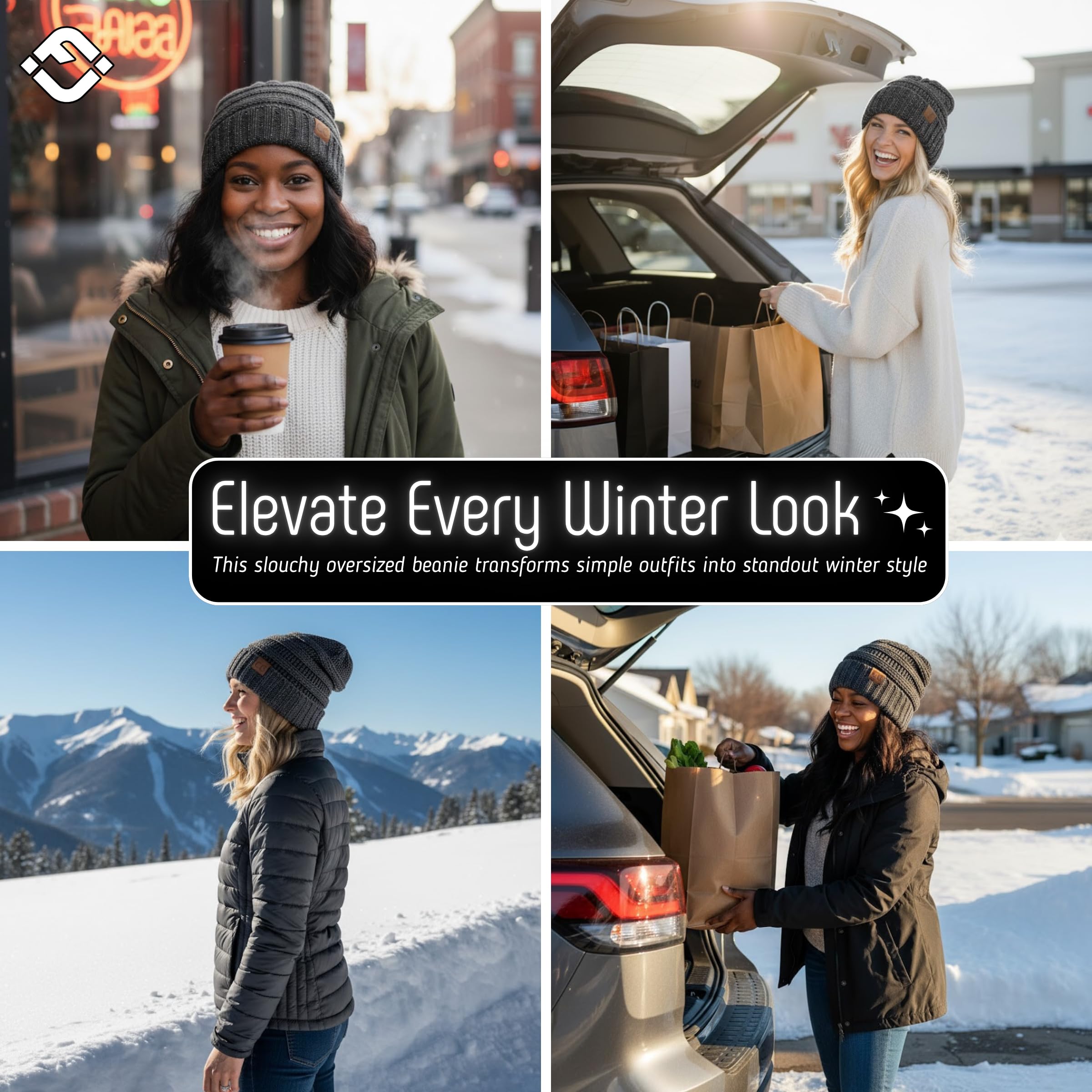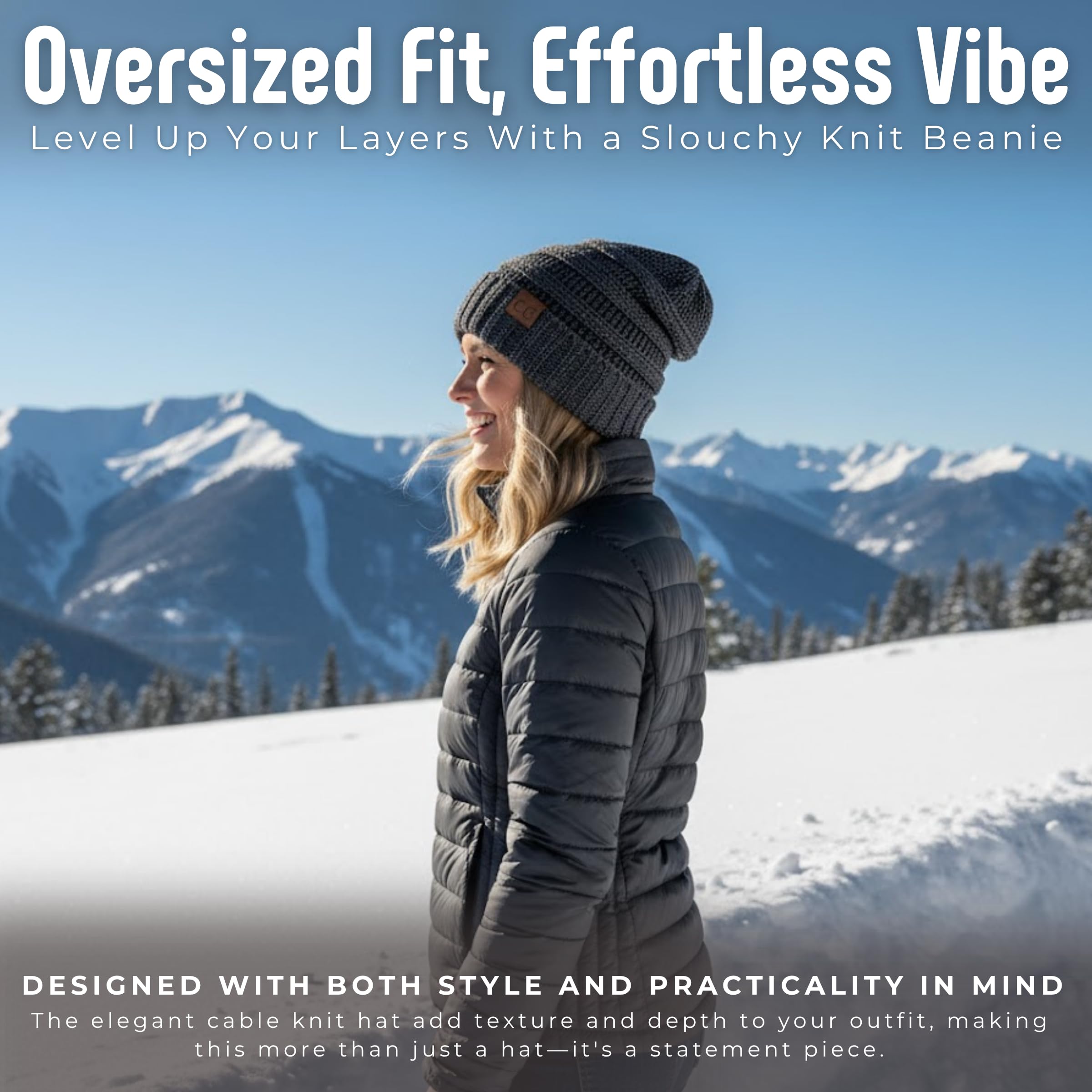 Fashionable, warm, extra-large, thick, soft, extra-large cable-knit casual brimless hat
