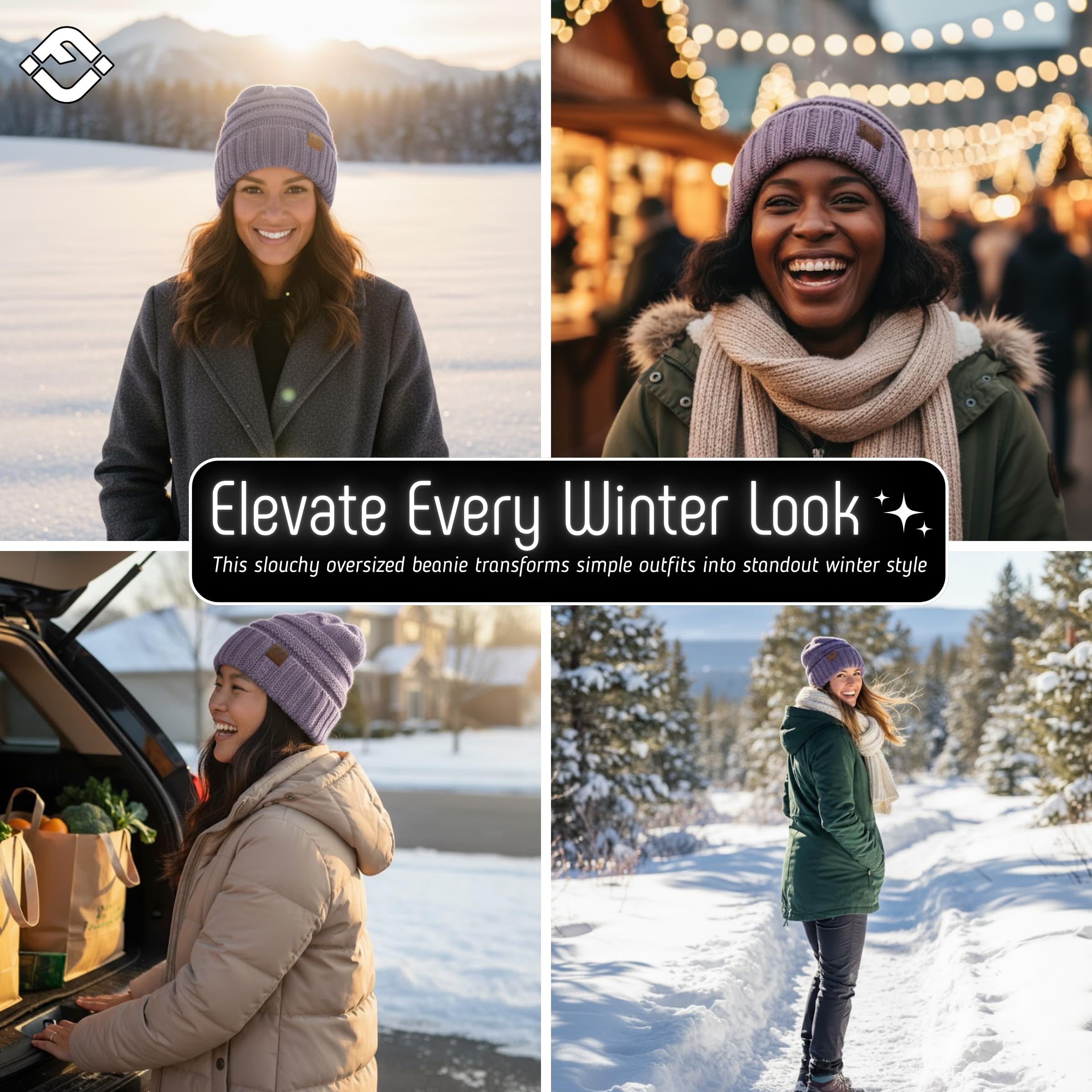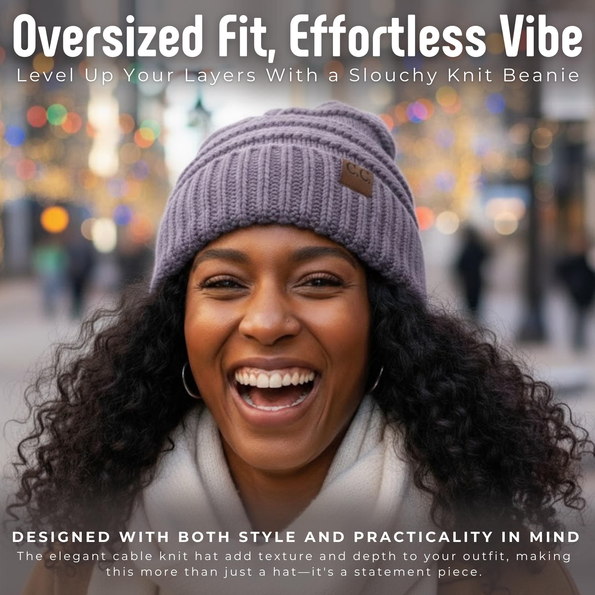Fashionable, warm, extra-large, thick, soft, extra-large cable-knit casual brimless hat