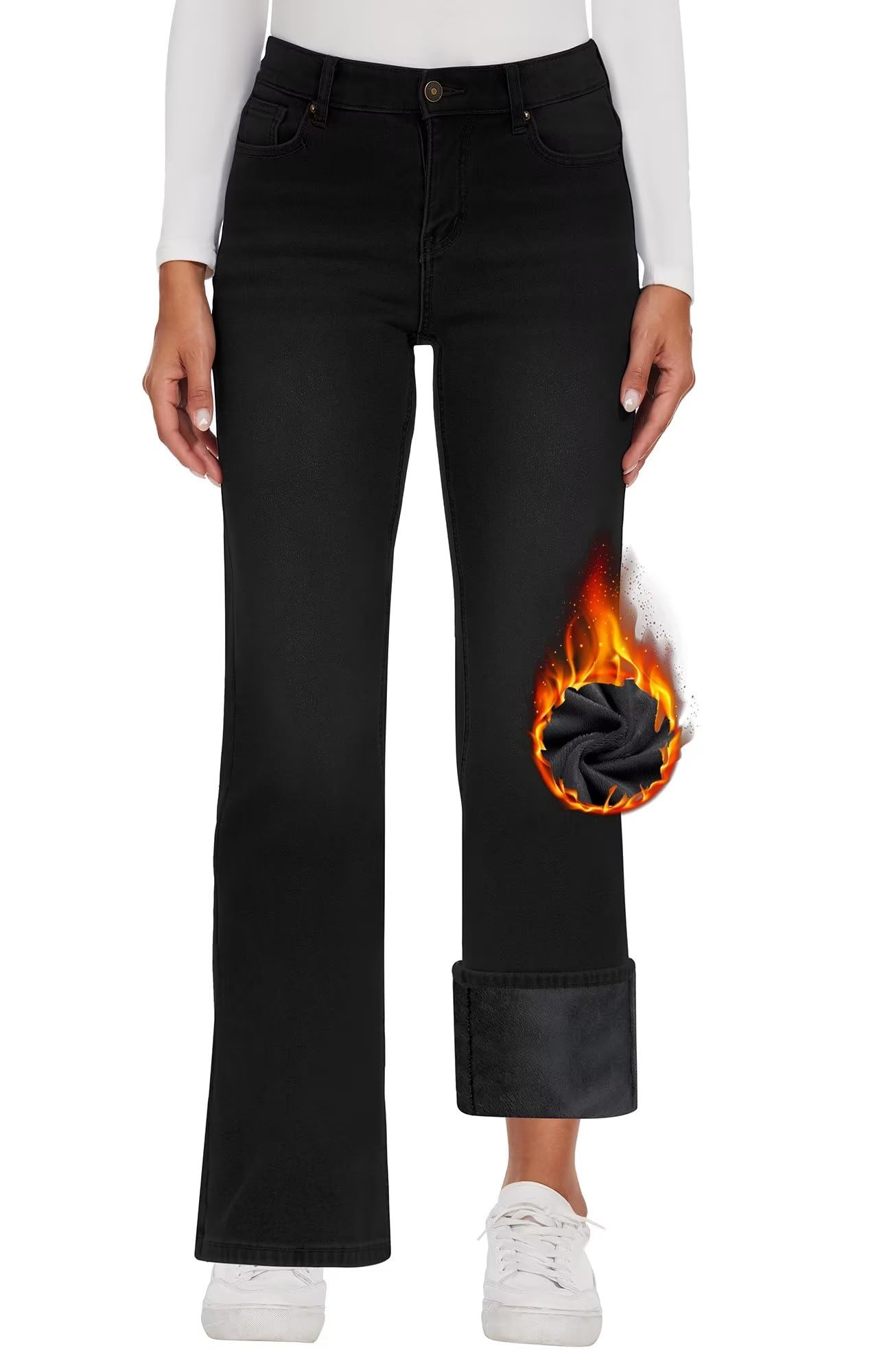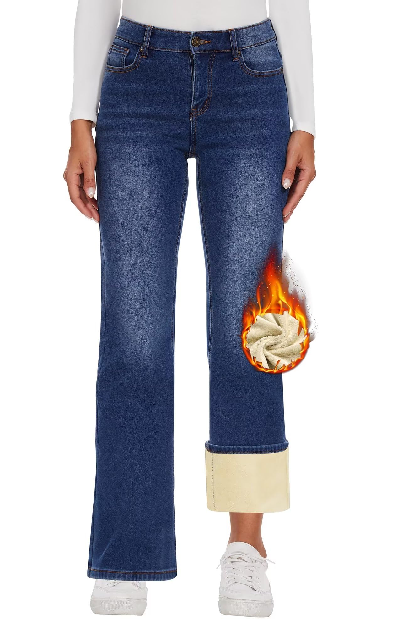 Fleece Lined Jeans Women High Waisted Wide Leg Baggy Jeans for Women Winter Lined Jean Pants