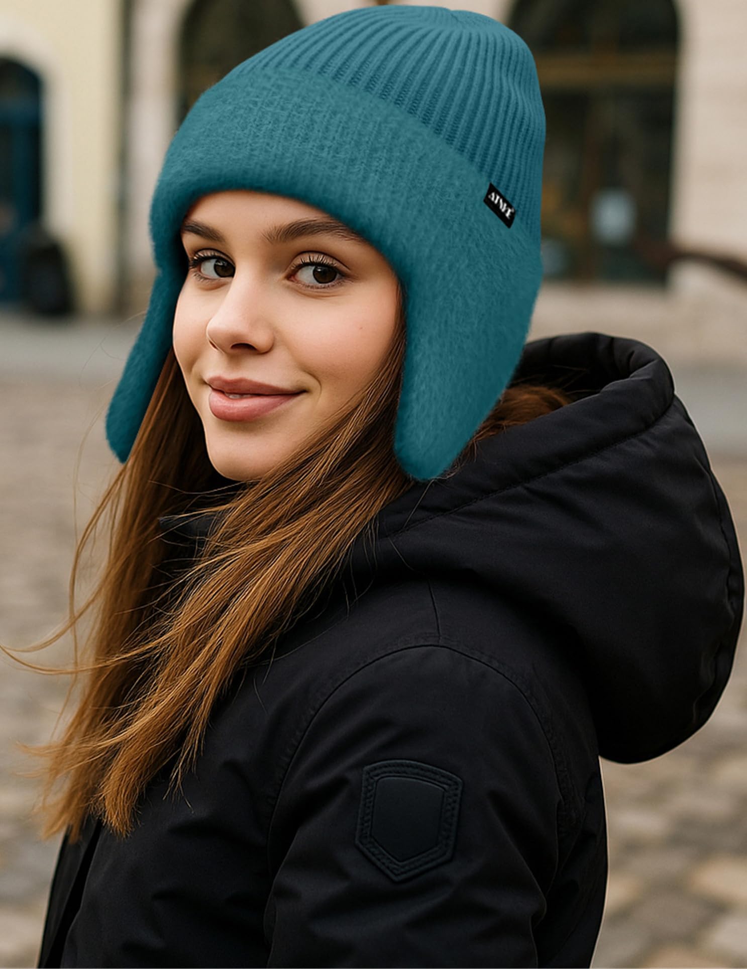Bonnet d'hiver avec oreillettes, casquette de ski unisexe douce et chaude doublée de laine avec chaussettes épaisses, casquette tricotée à bord roulé