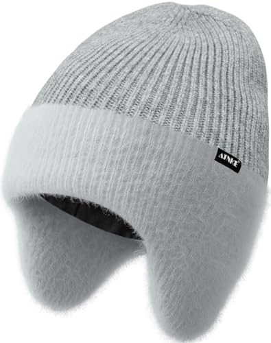 Bonnet d'hiver avec oreillettes, casquette de ski unisexe douce et chaude doublée de laine avec chaussettes épaisses, casquette tricotée à bord roulé