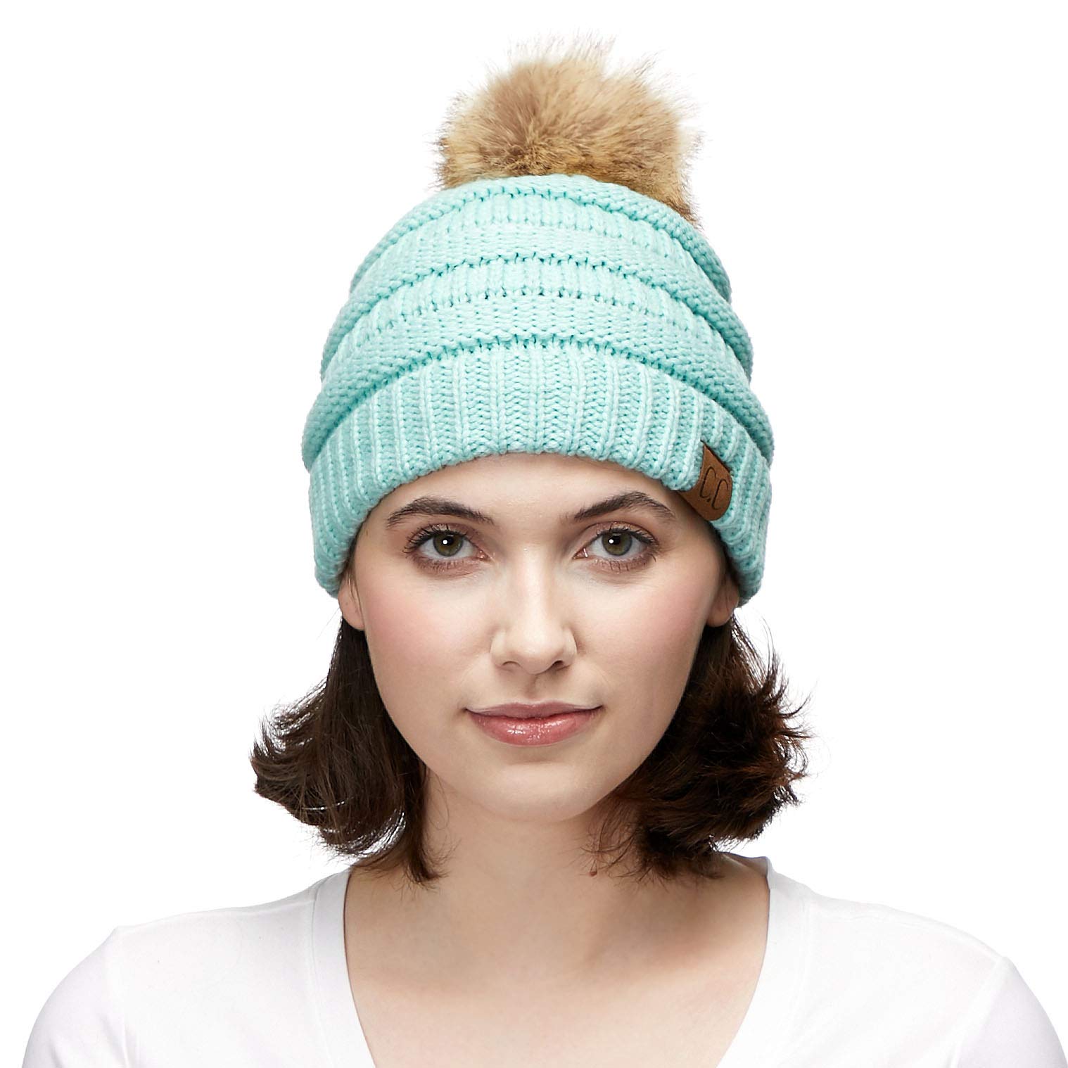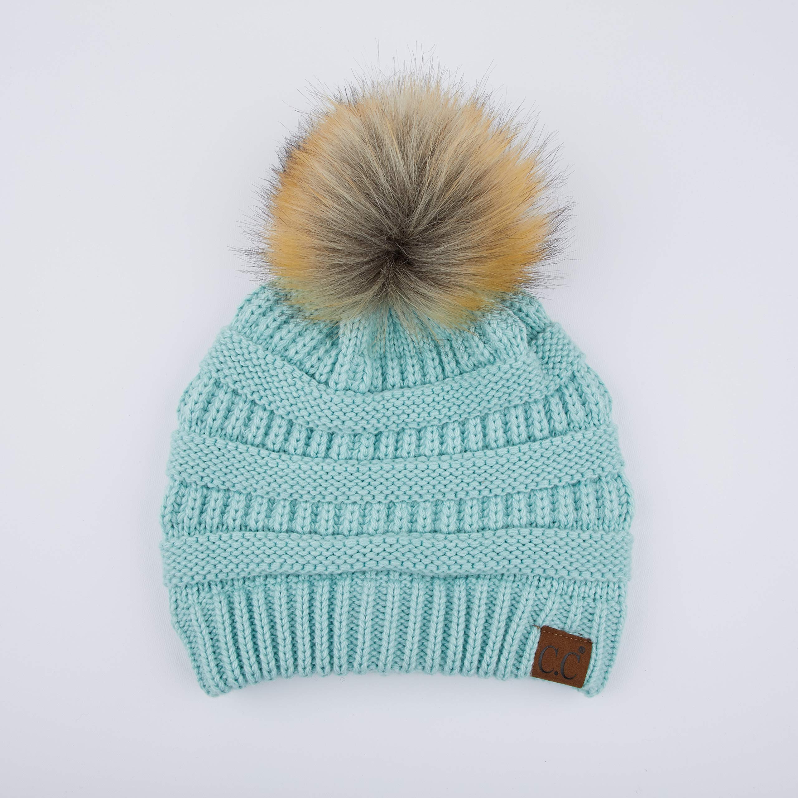 Fur pom-pom winter and autumn fashion thick elastic knitted beanie cap