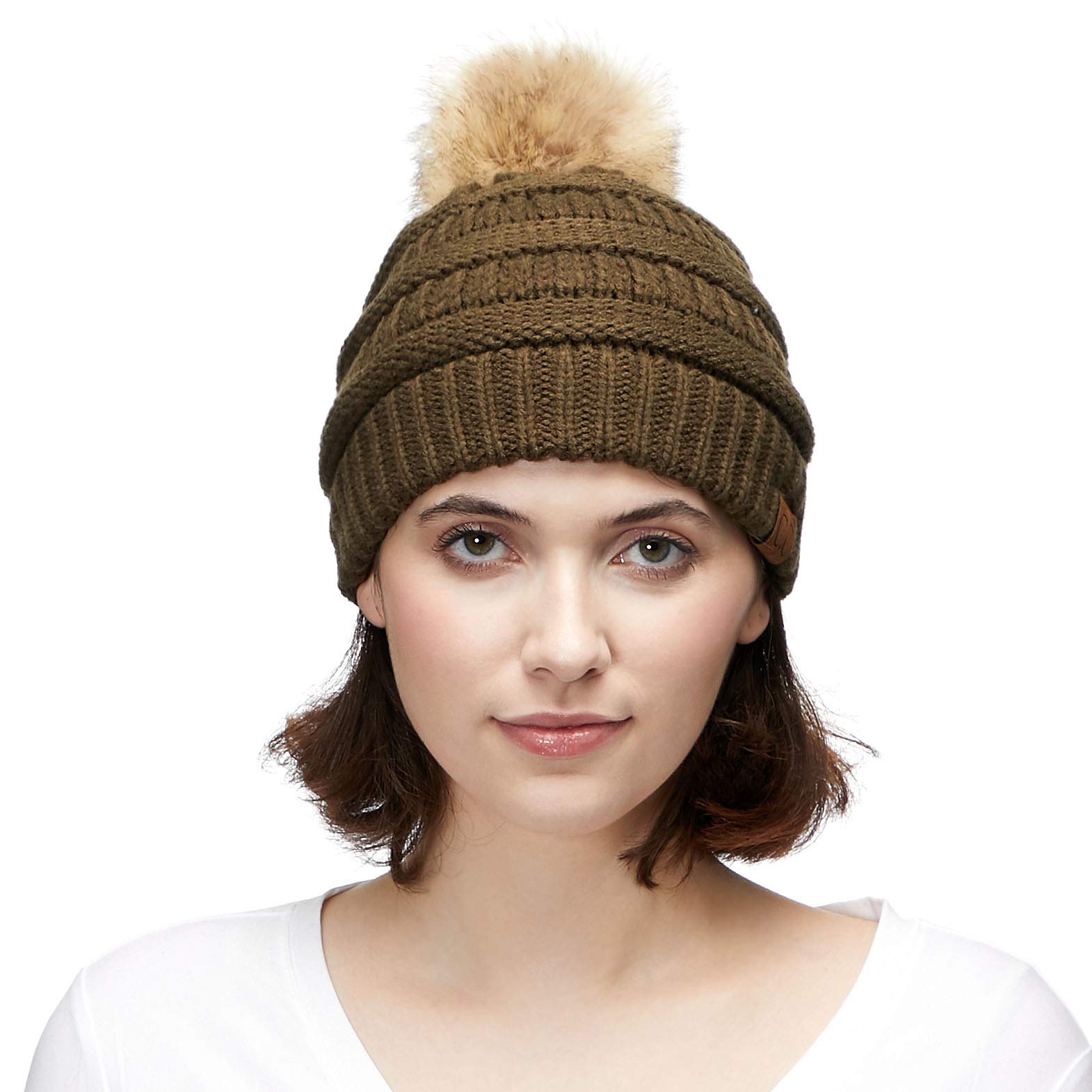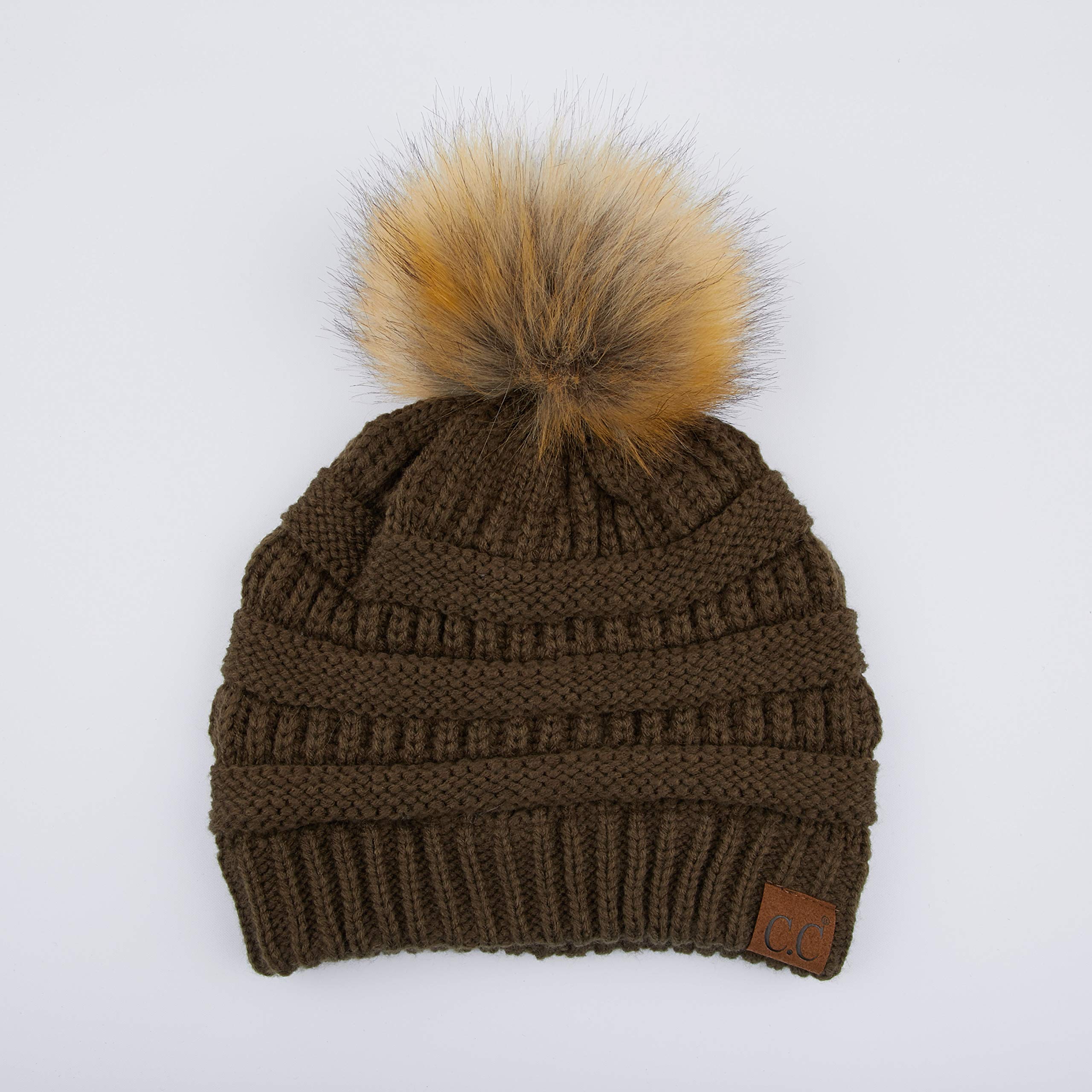 Fur pom-pom winter and autumn fashion thick elastic knitted beanie cap