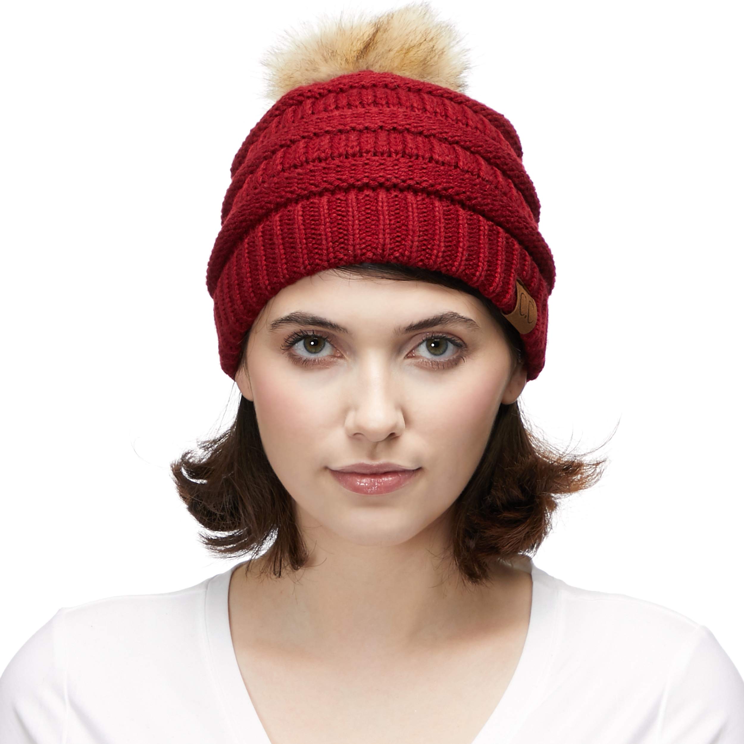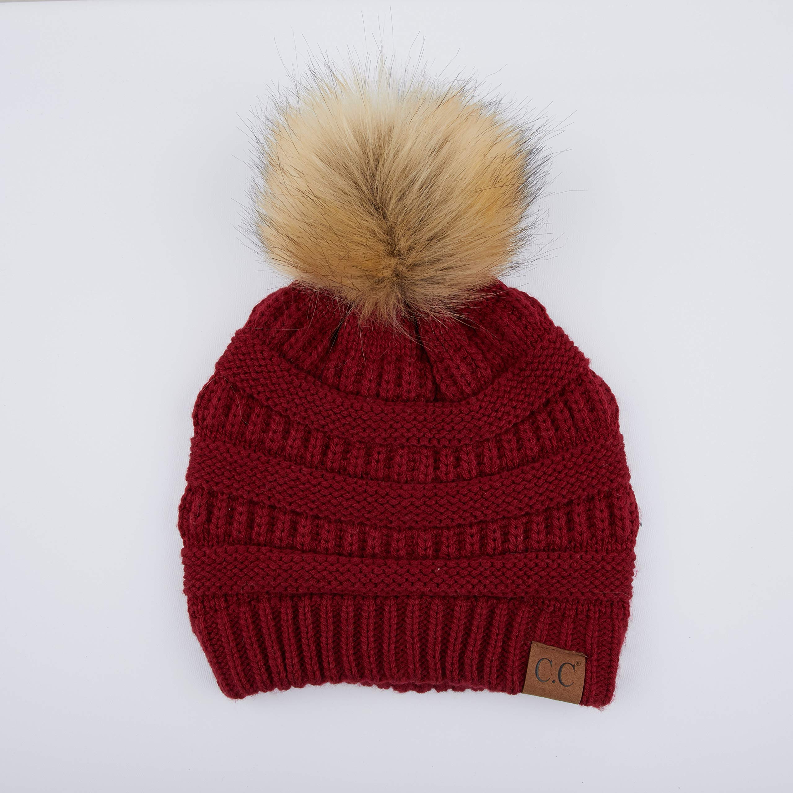 Fur pom-pom winter and autumn fashion thick elastic knitted beanie cap