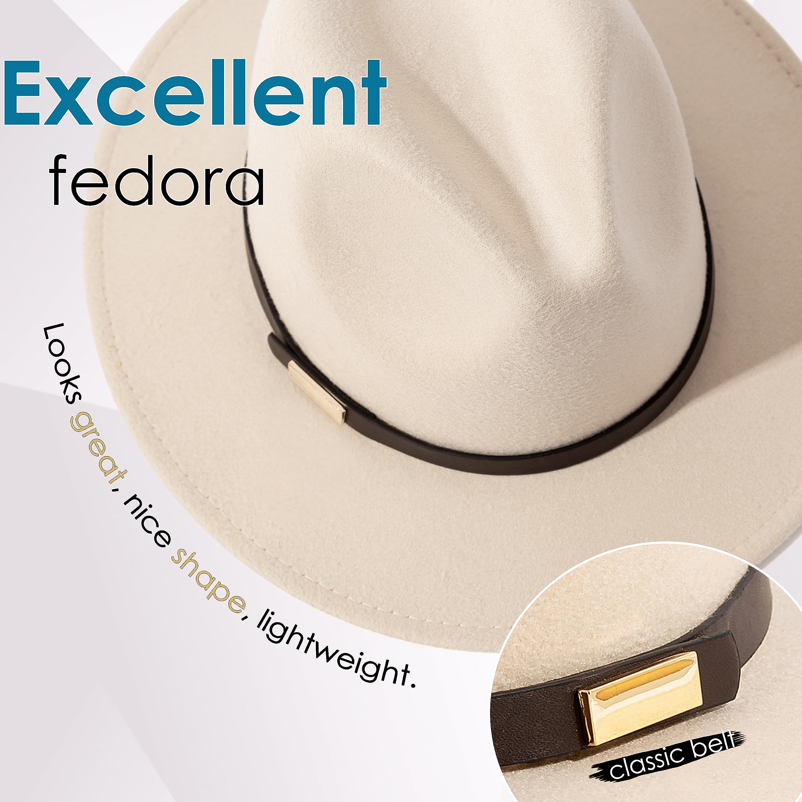 Gossifan Fedora Hats for Men Wide Brim Panama Hat with Classic Belt
