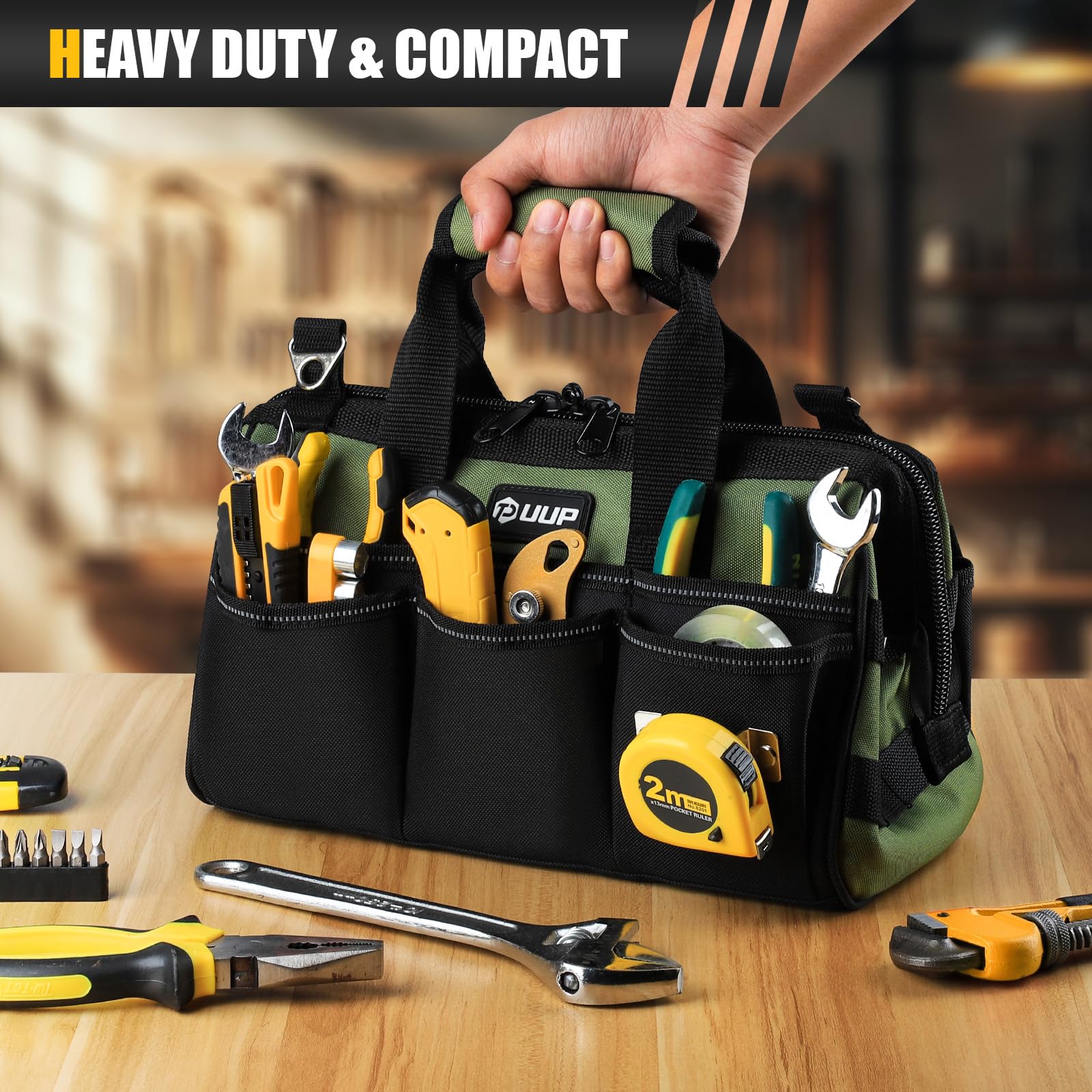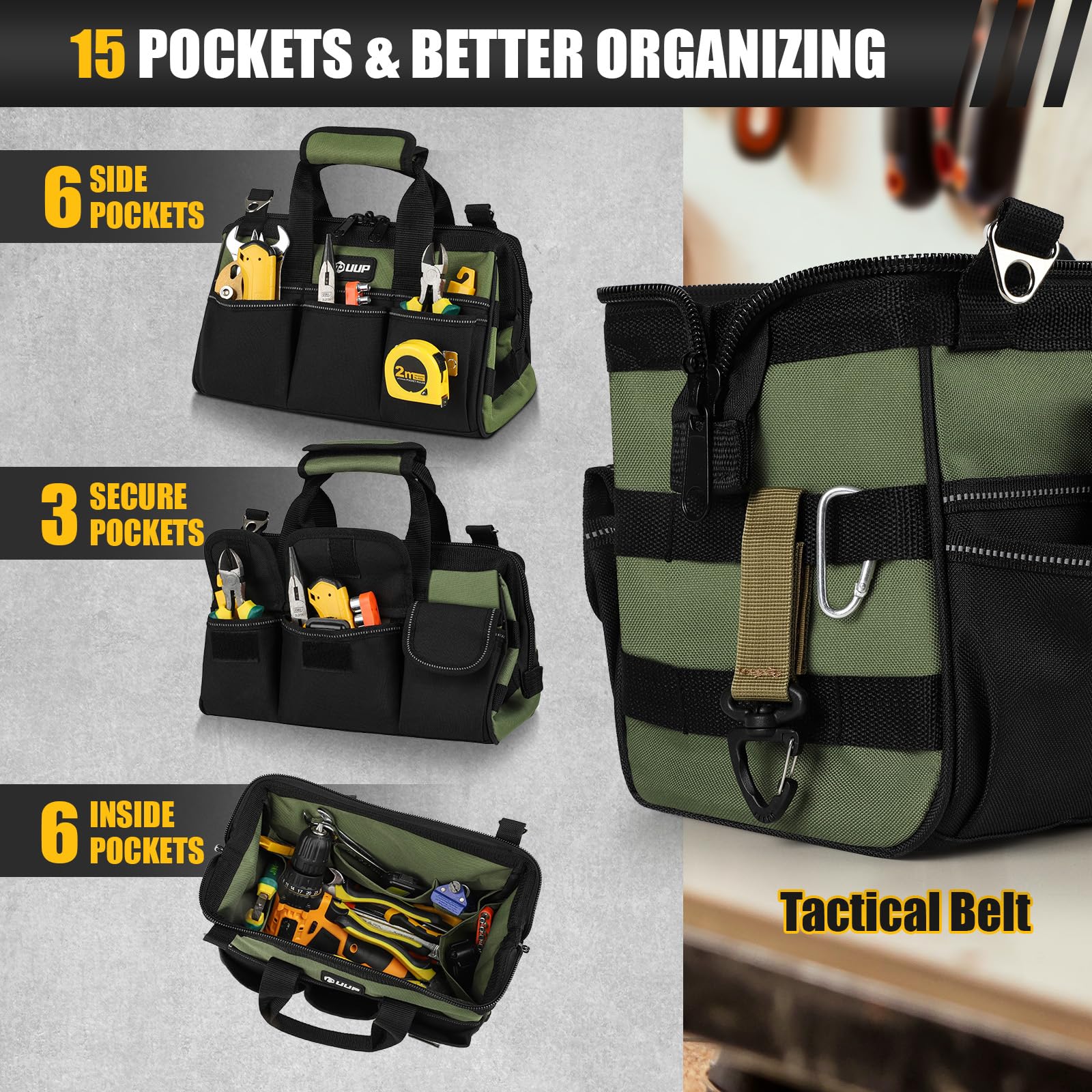 Heavy Duty Tool Bag 15-Inch, 16-Pocket Portable Empty Tool Box Organizer Storage, Toolbox Organization, Soft Handle Large Zipper Carrying Toolbag, Father Day Dad Men Mechanic Welding Birthday Gift