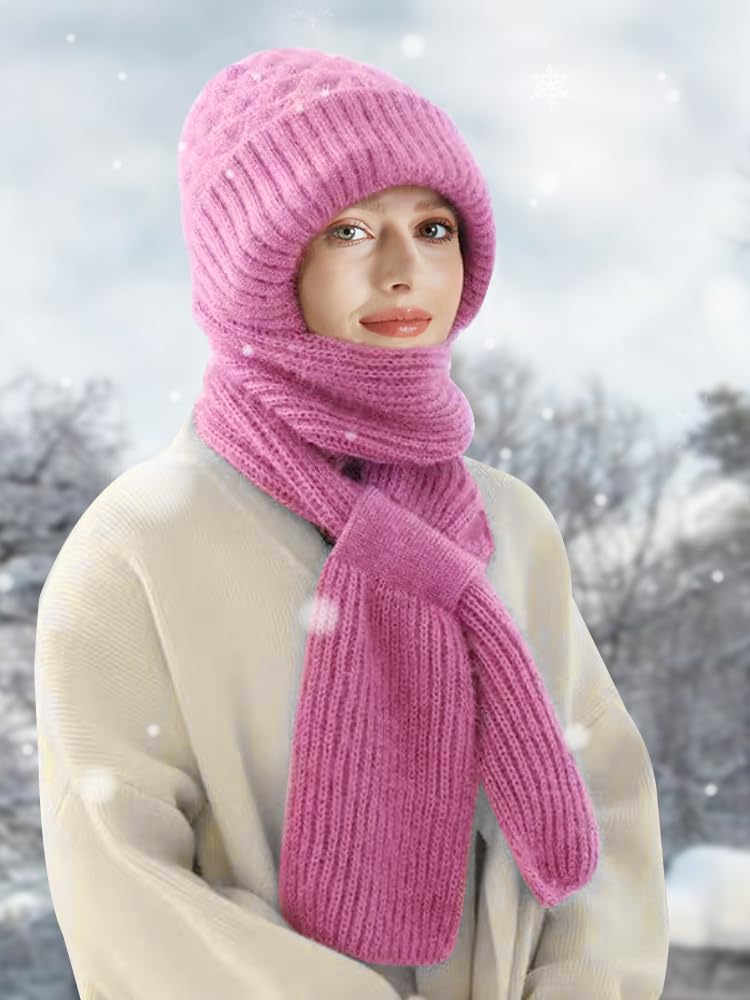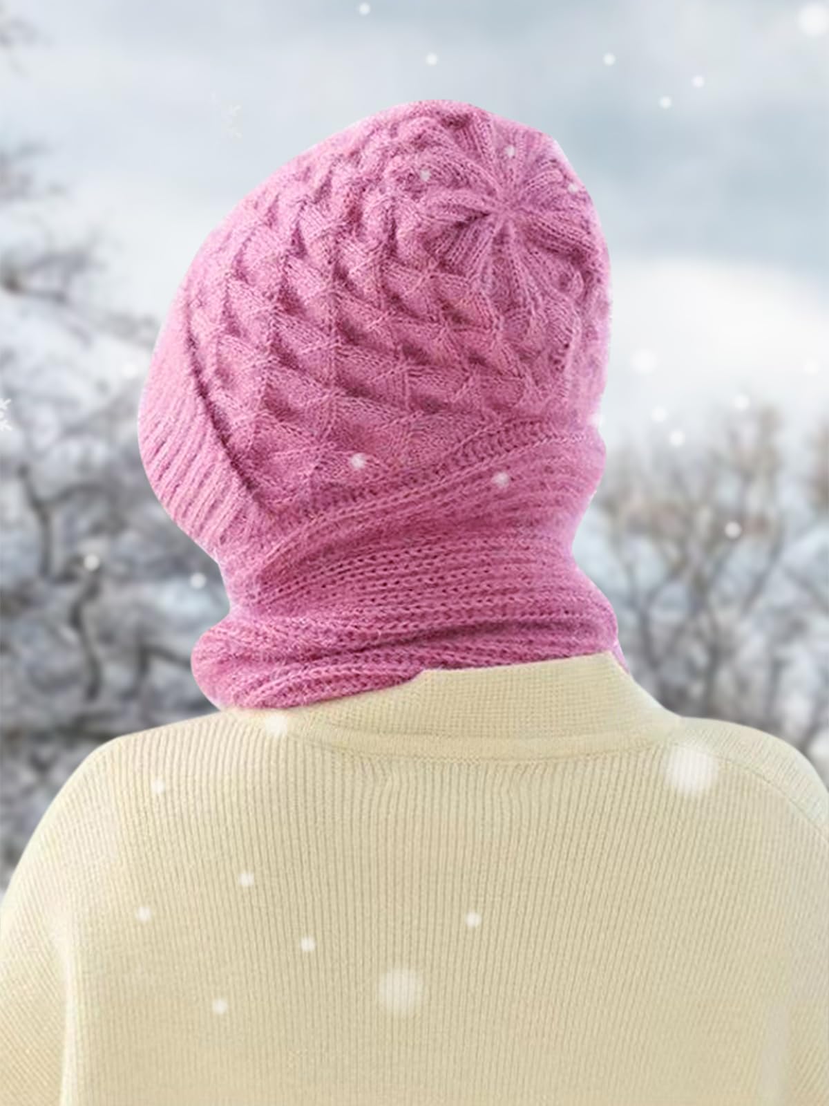 Integrated ear protection and windproof hood scarf with elastic knitted fabric and thick texture