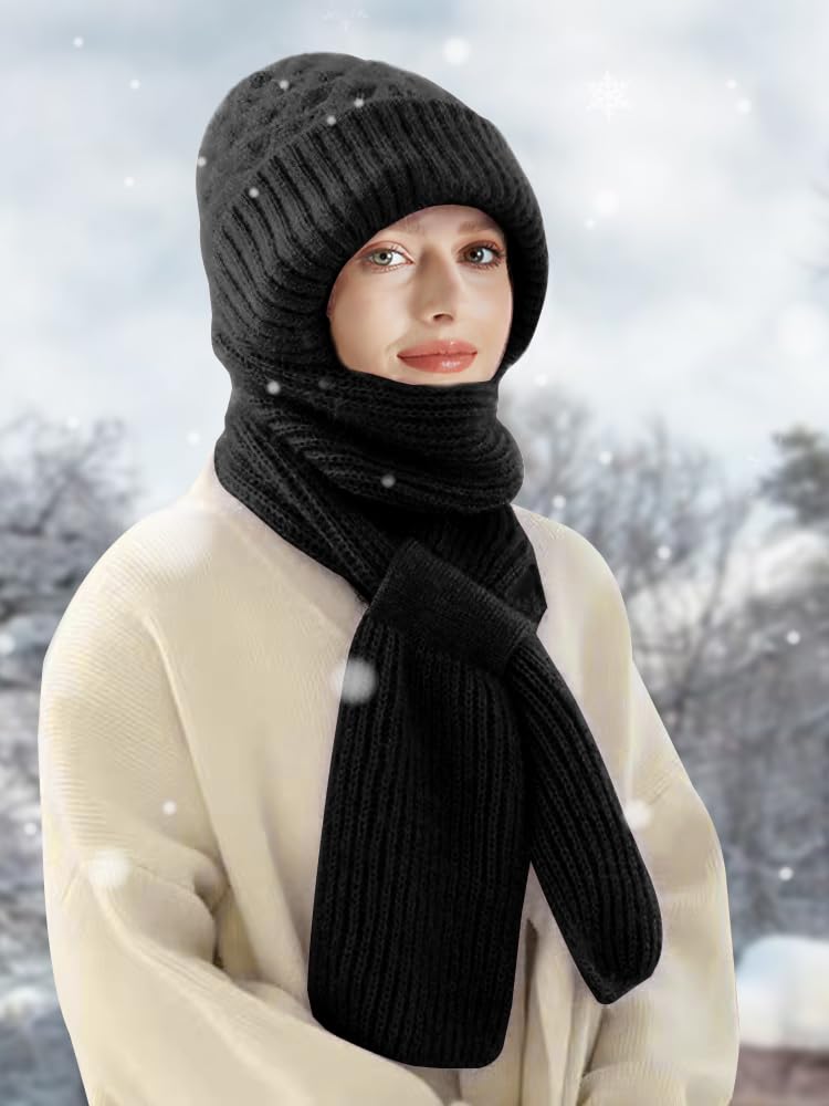 Integrated ear protection and windproof hood scarf with elastic knitted fabric and thick texture