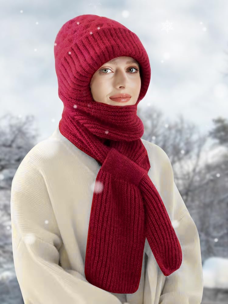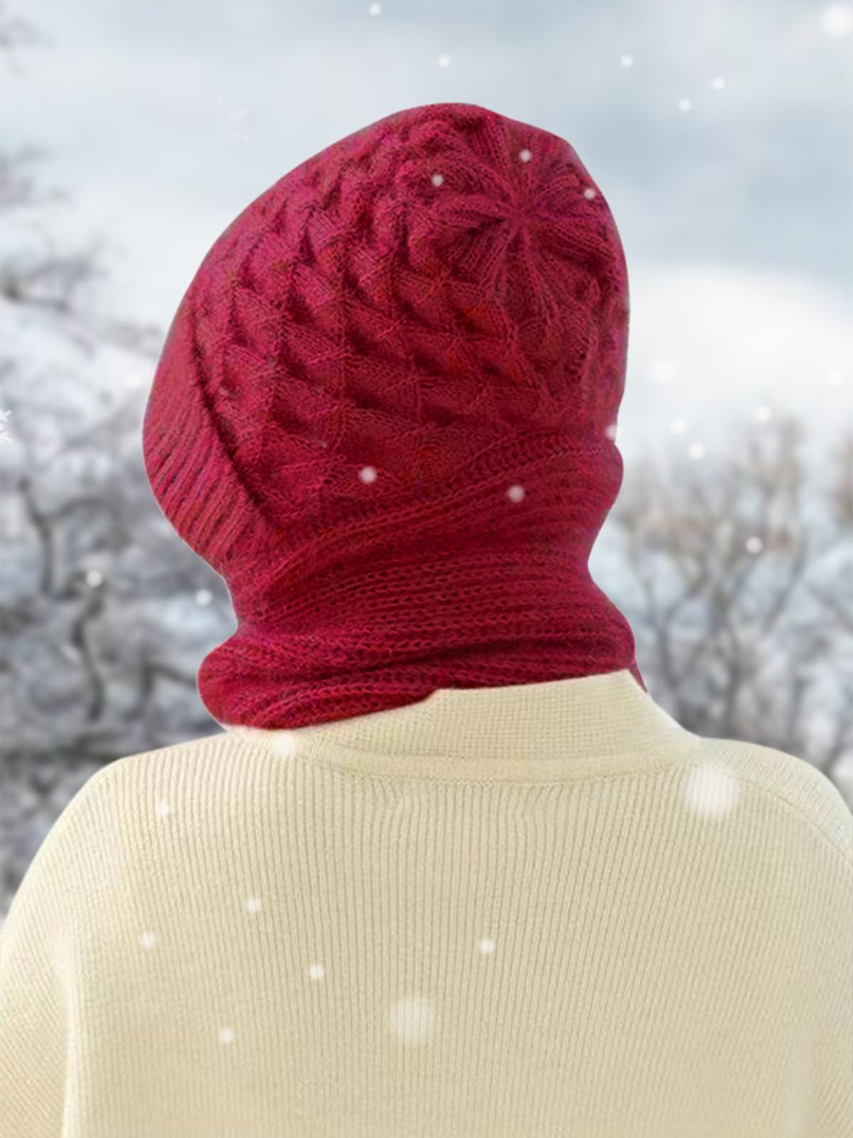 Integrated ear protection and windproof hood scarf with elastic knitted fabric and thick texture