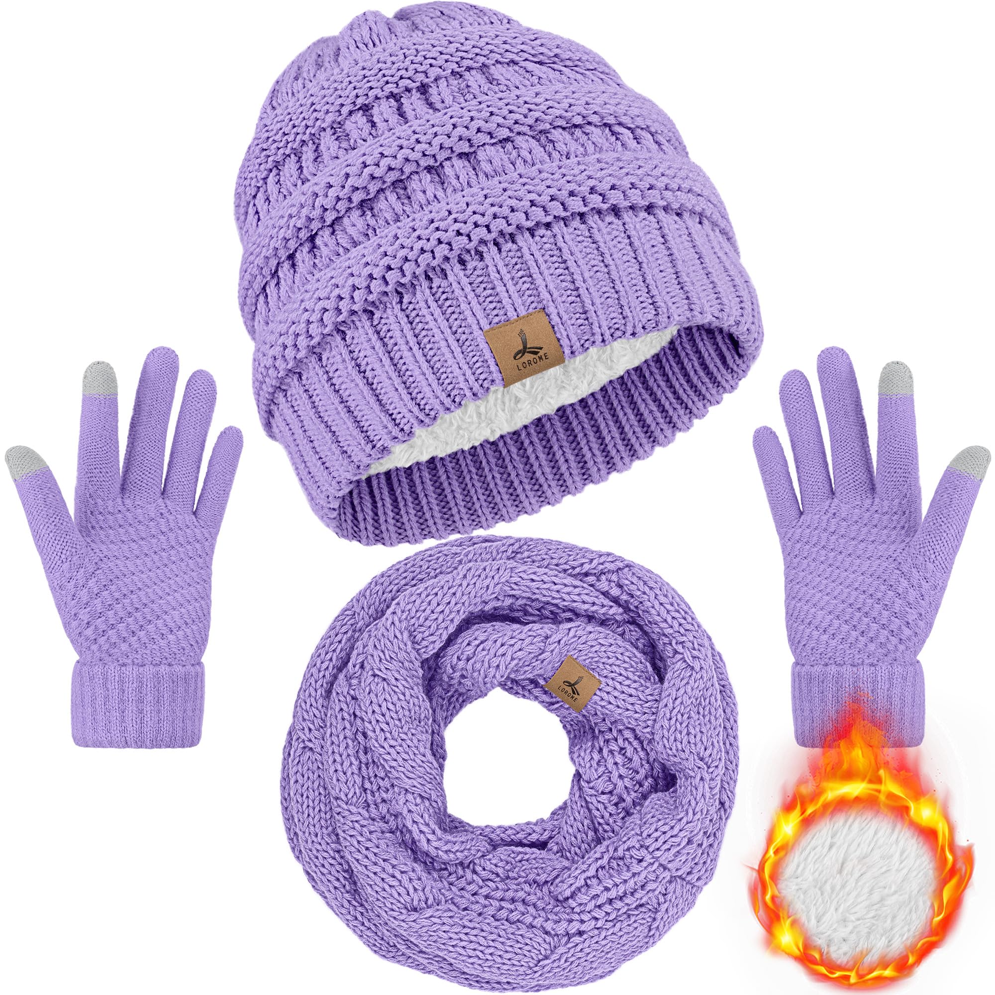 Set cappello invernale, sciarpa e guanti touchscreen in maglia di lana termica - regalo invernale neutro per adulti
