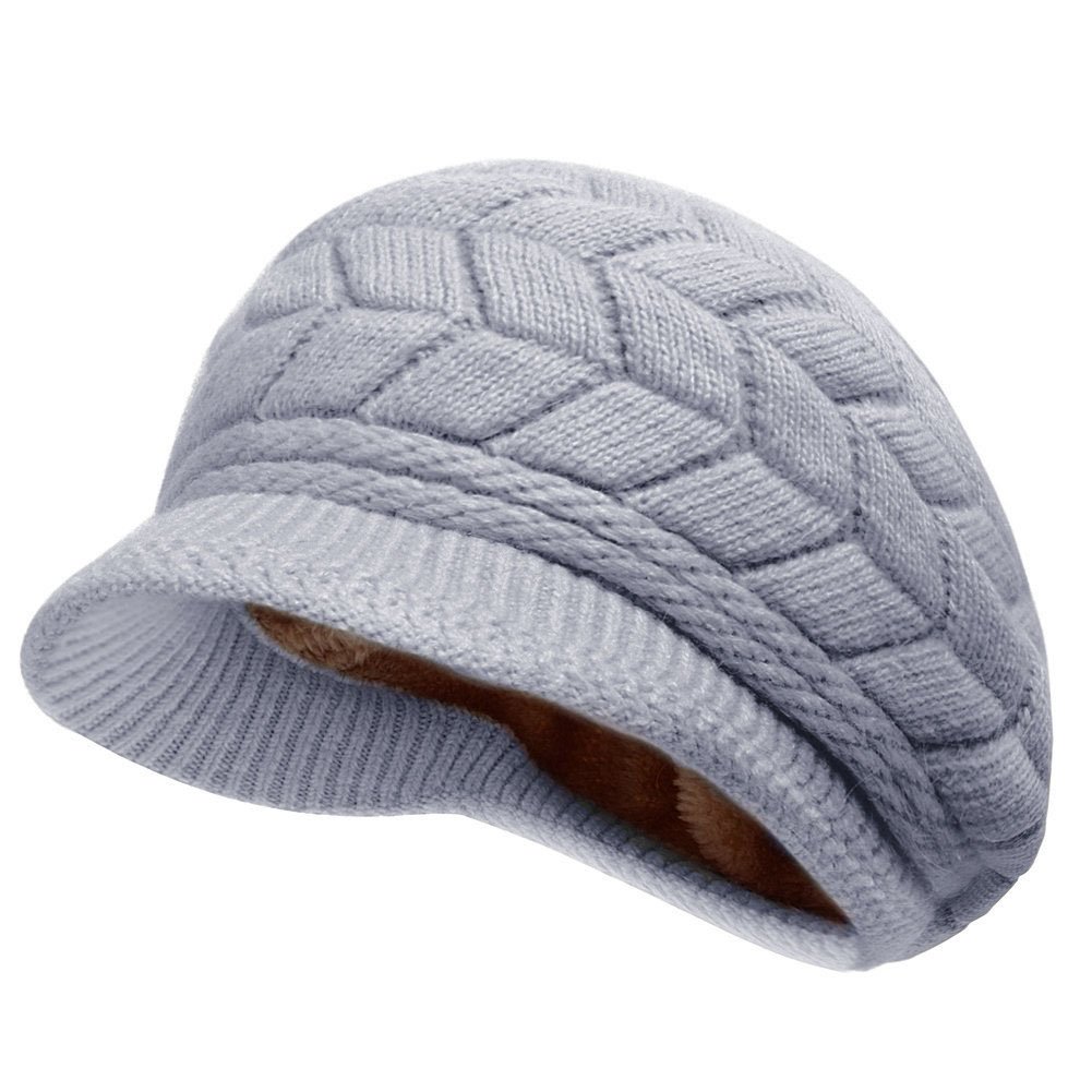 Berretto da sci invernale da donna in calda lana lavorata a maglia con visiera parasole