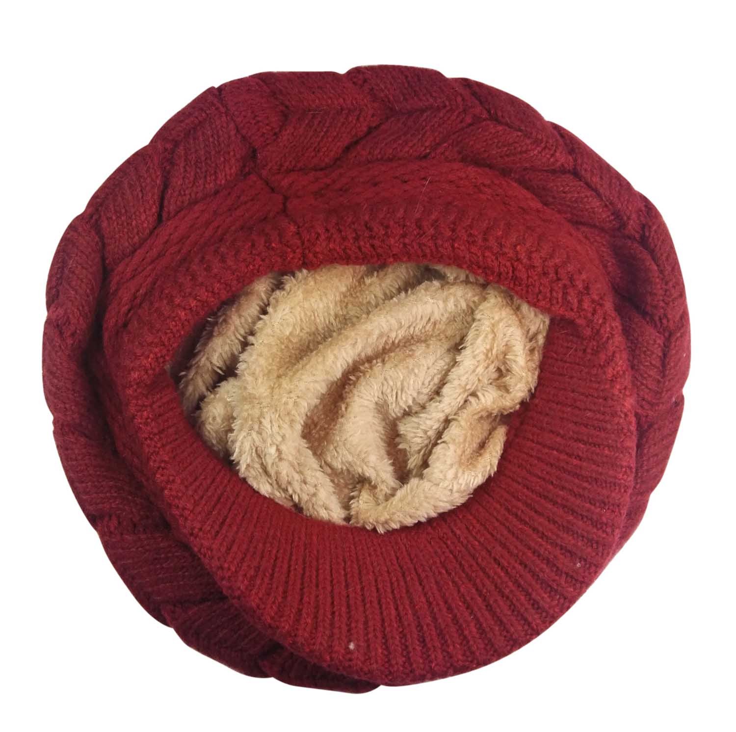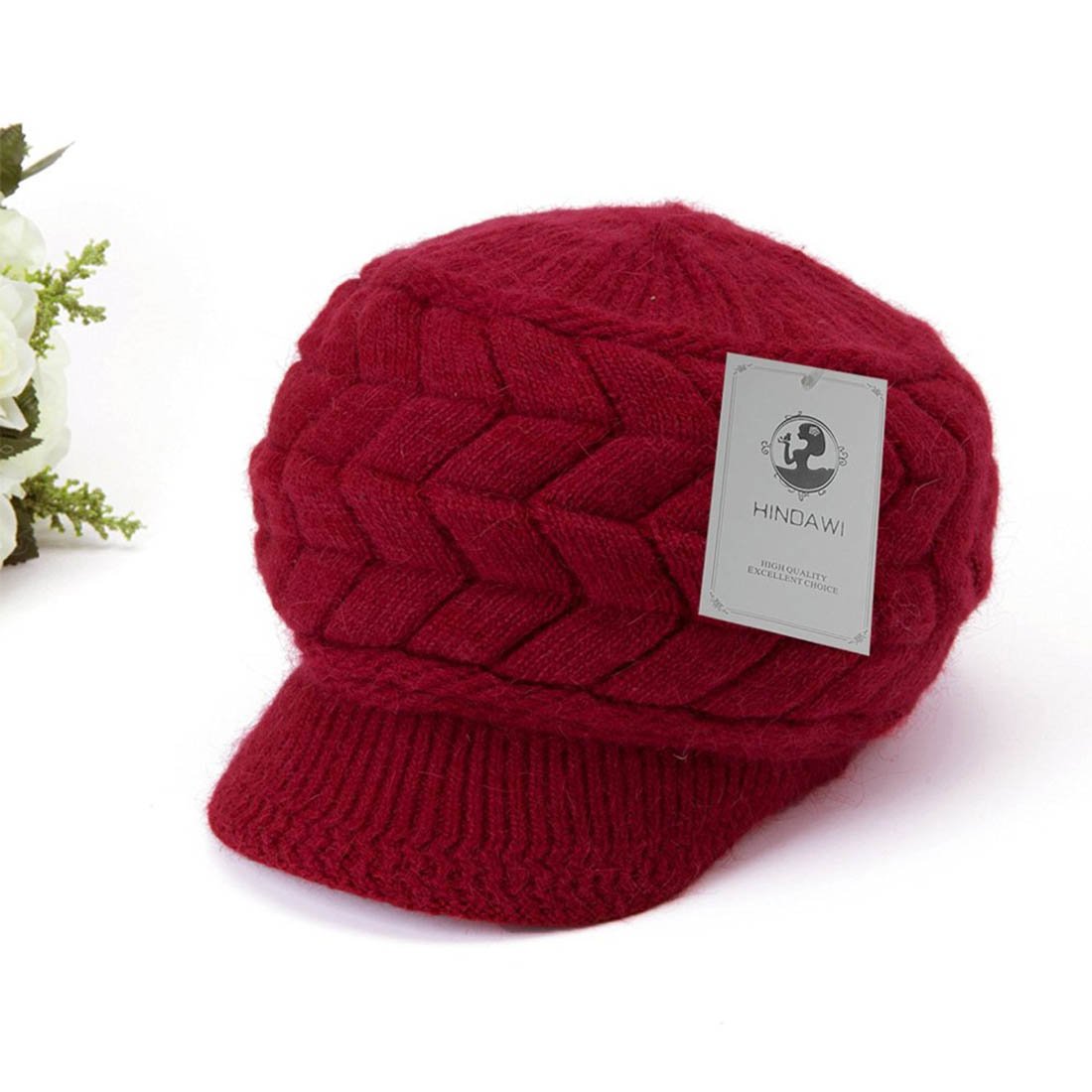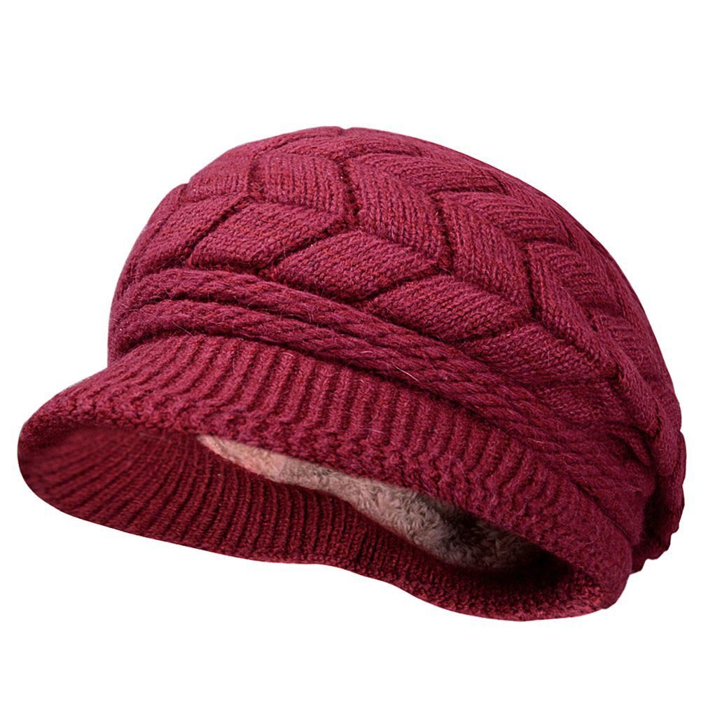 Berretto da sci invernale da donna in calda lana lavorata a maglia con visiera parasole