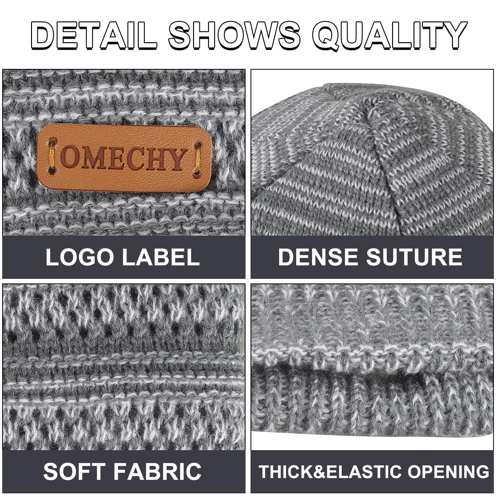 -厚くて暖かい、ふわふわ、裏地付きニット冬用キャップ、男女兼用、カジュアル、厚手で伸縮性のある無地の袖口スレッドキャップ