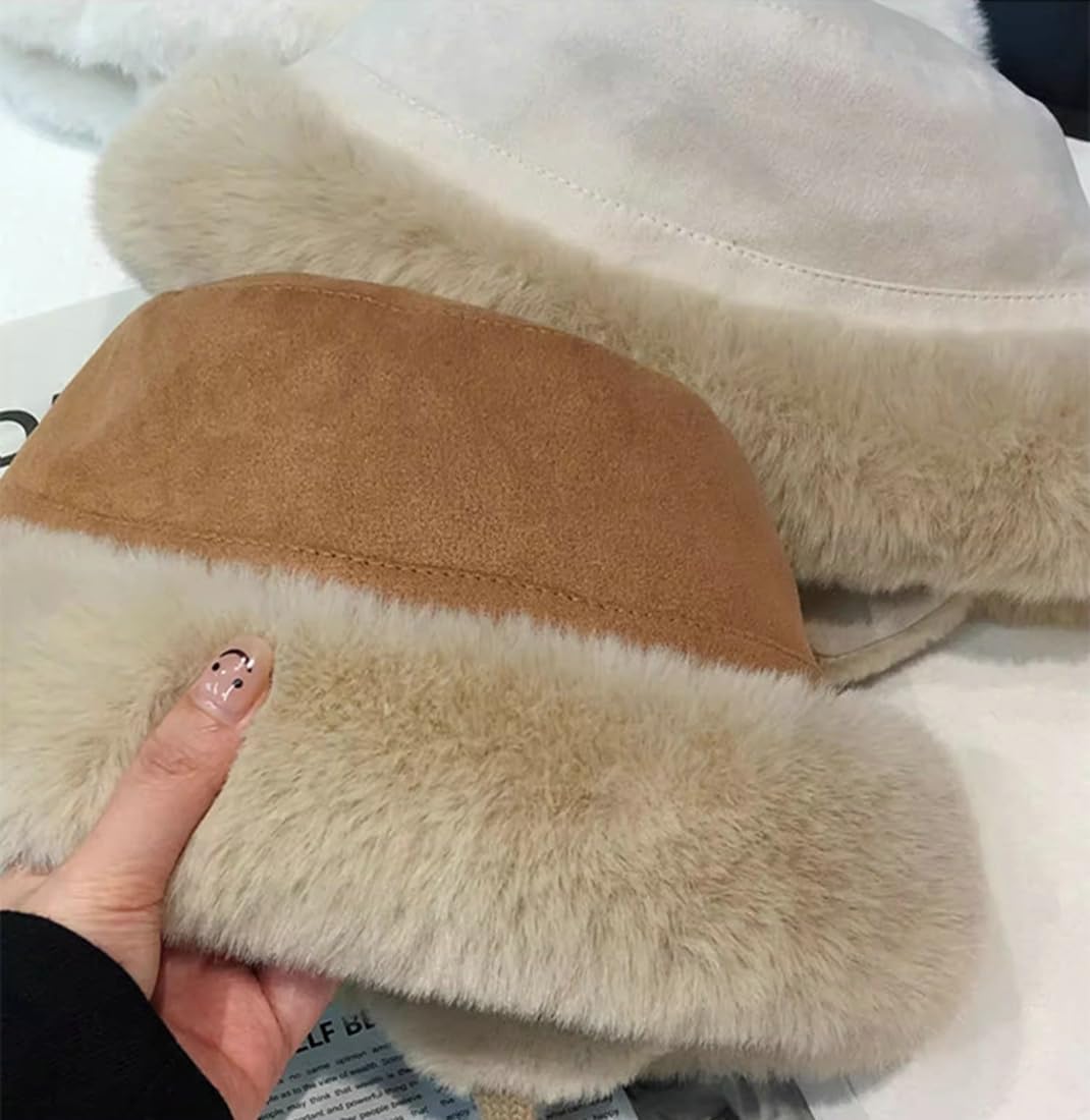 紳士淑女向けのイヤーフラップ付き冬用スエードカンカン帽、つばのない豪華なフェイクファーカンカン帽、飛行士スタイルのラウンドキャップ