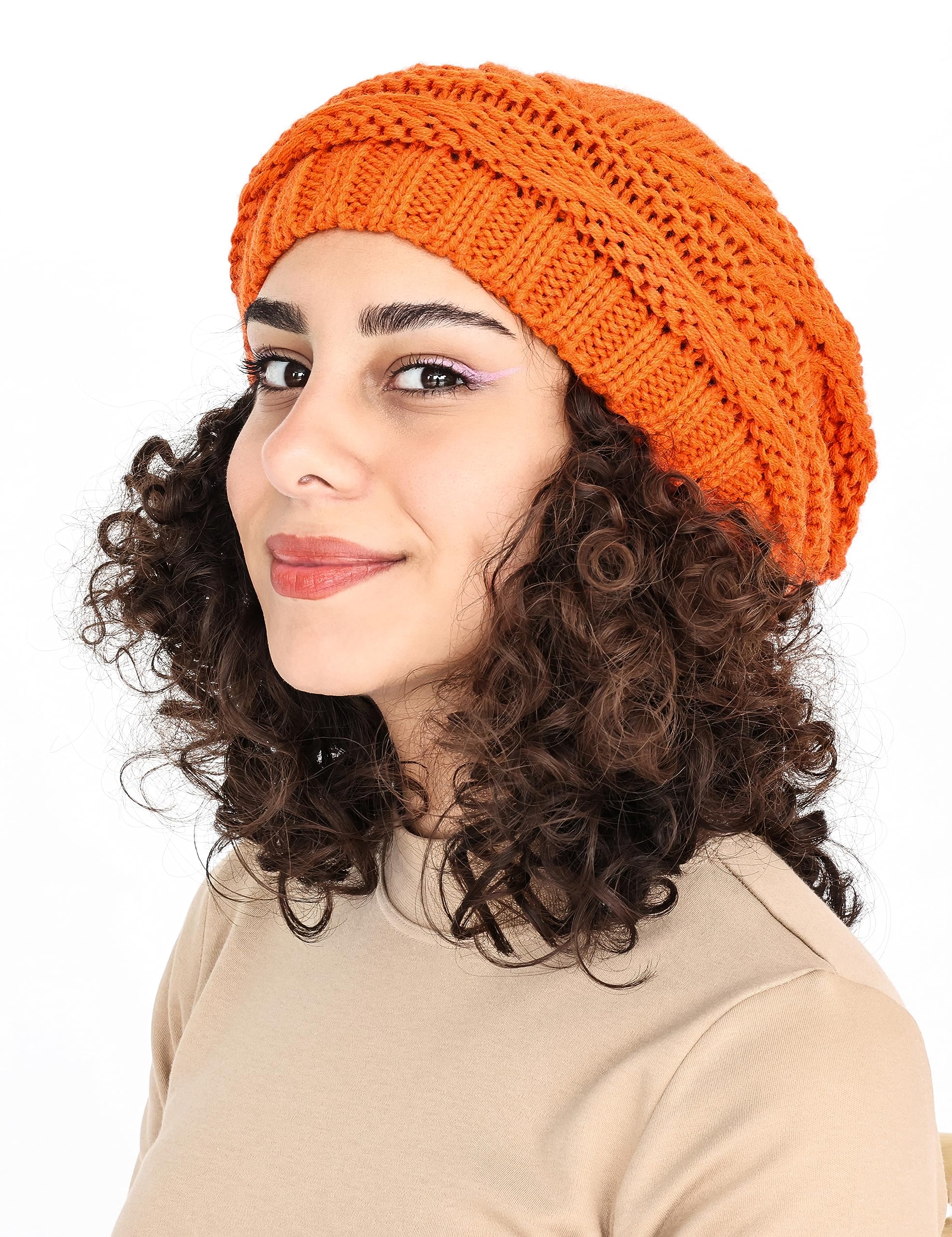 Knitted loose oversized soft and warm winter brimless hat for women. Comfortable, lightweight and versatile