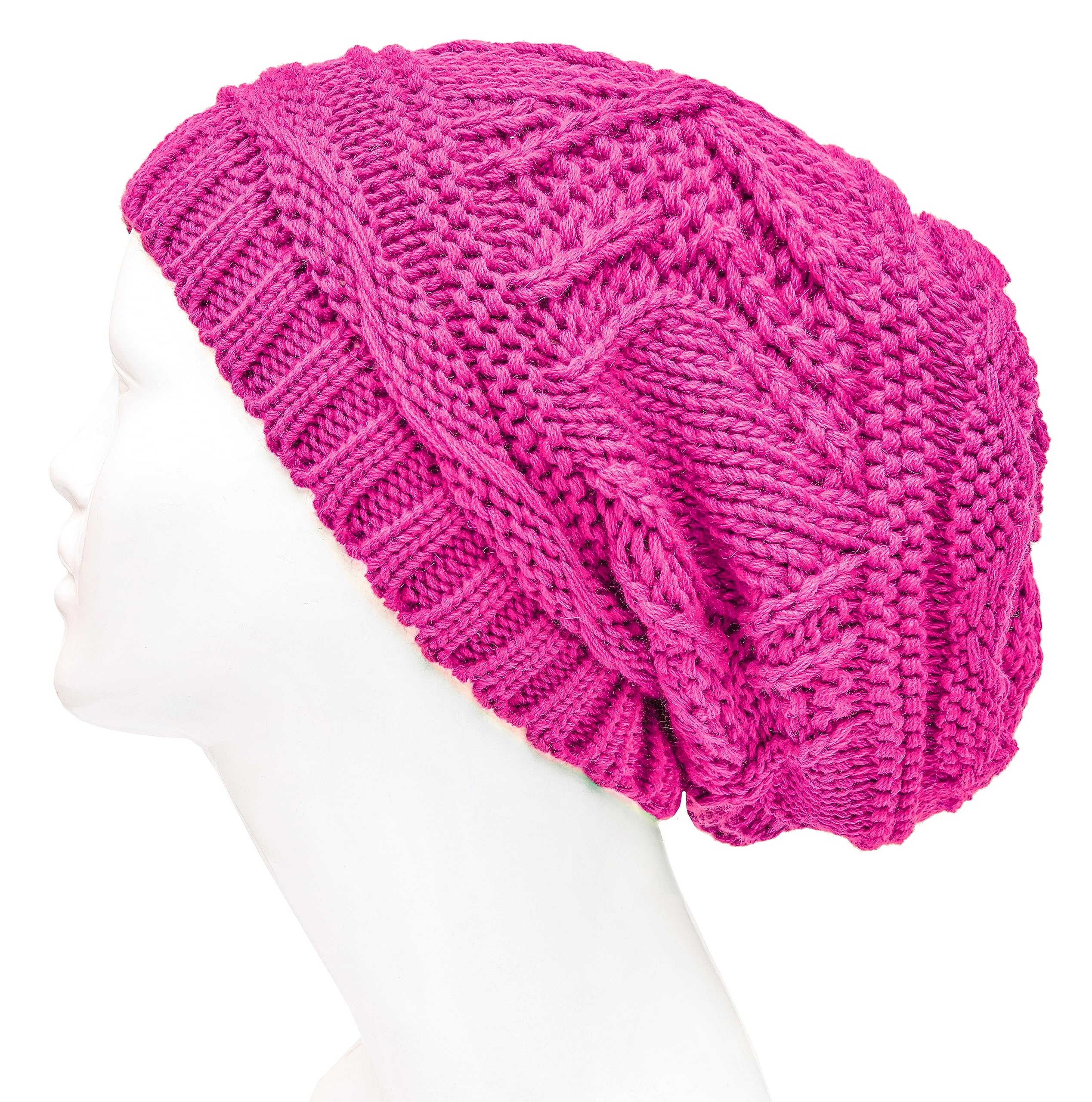 Knitted loose oversized soft and warm winter brimless hat for women. Comfortable, lightweight and versatile