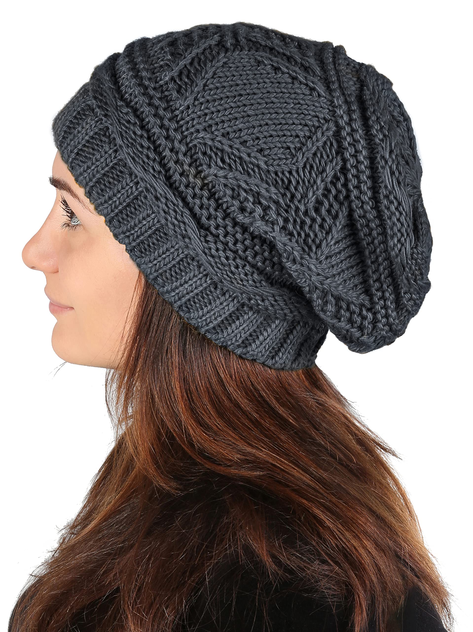 Knitted loose oversized soft and warm winter brimless hat for women. Comfortable, lightweight and versatile
