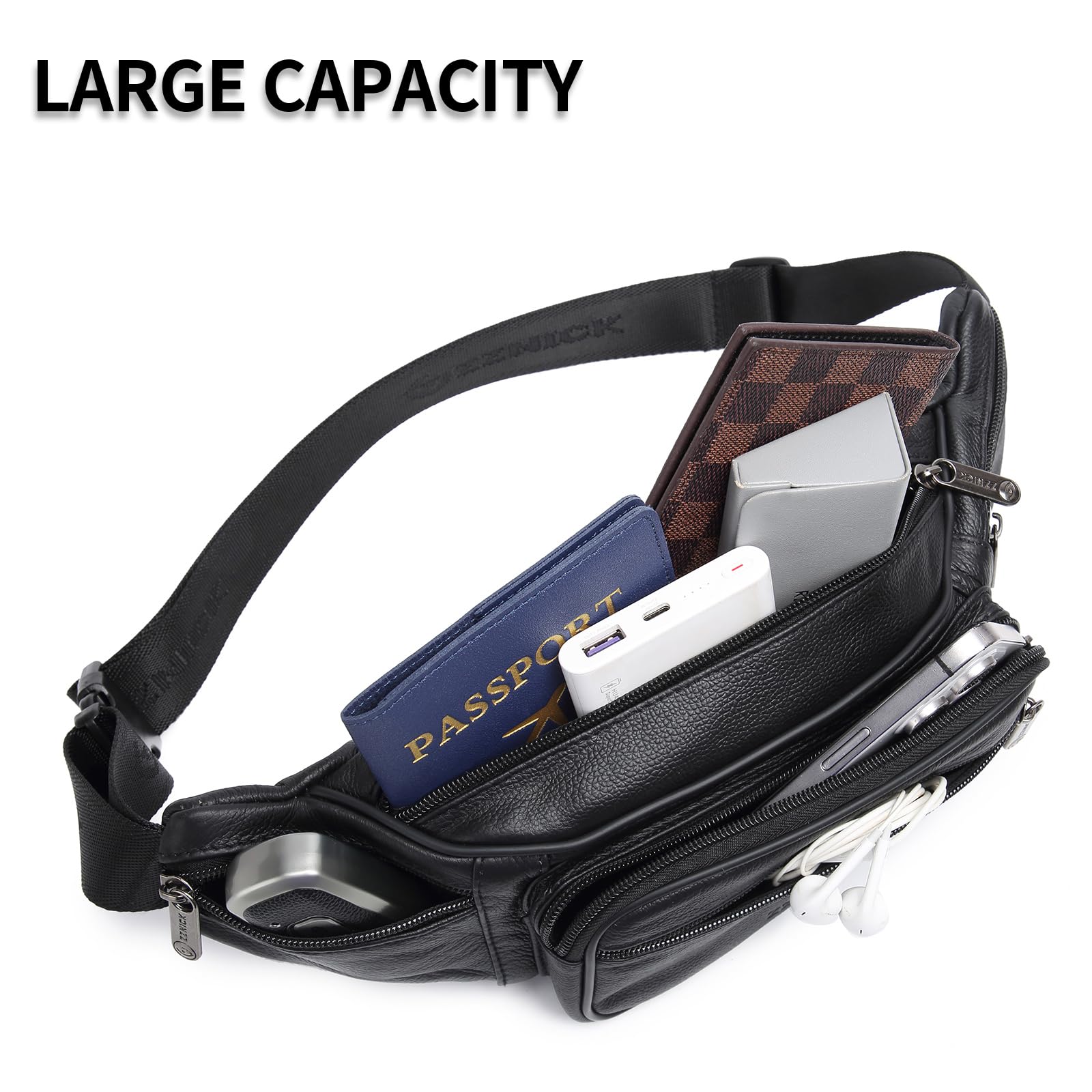 Leather Fanny Pack/Waist Bag/Organizer with Adjustable Belt, Multiple Pockets For Women