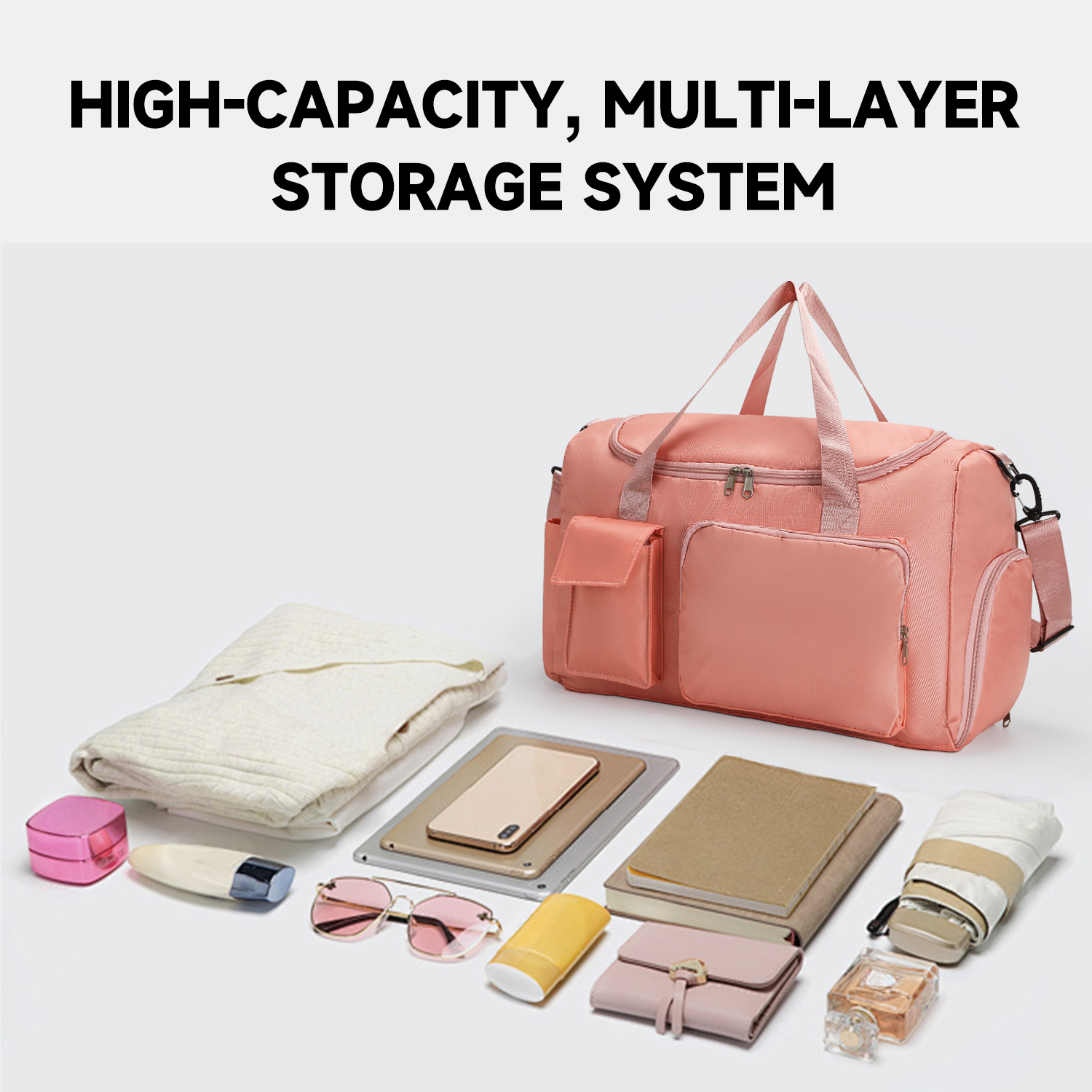 Light Blue Duffel Bag with Front Storage Pocket and Adjustable Shoulder Strap for Business Travel Work Commute and Daily Use